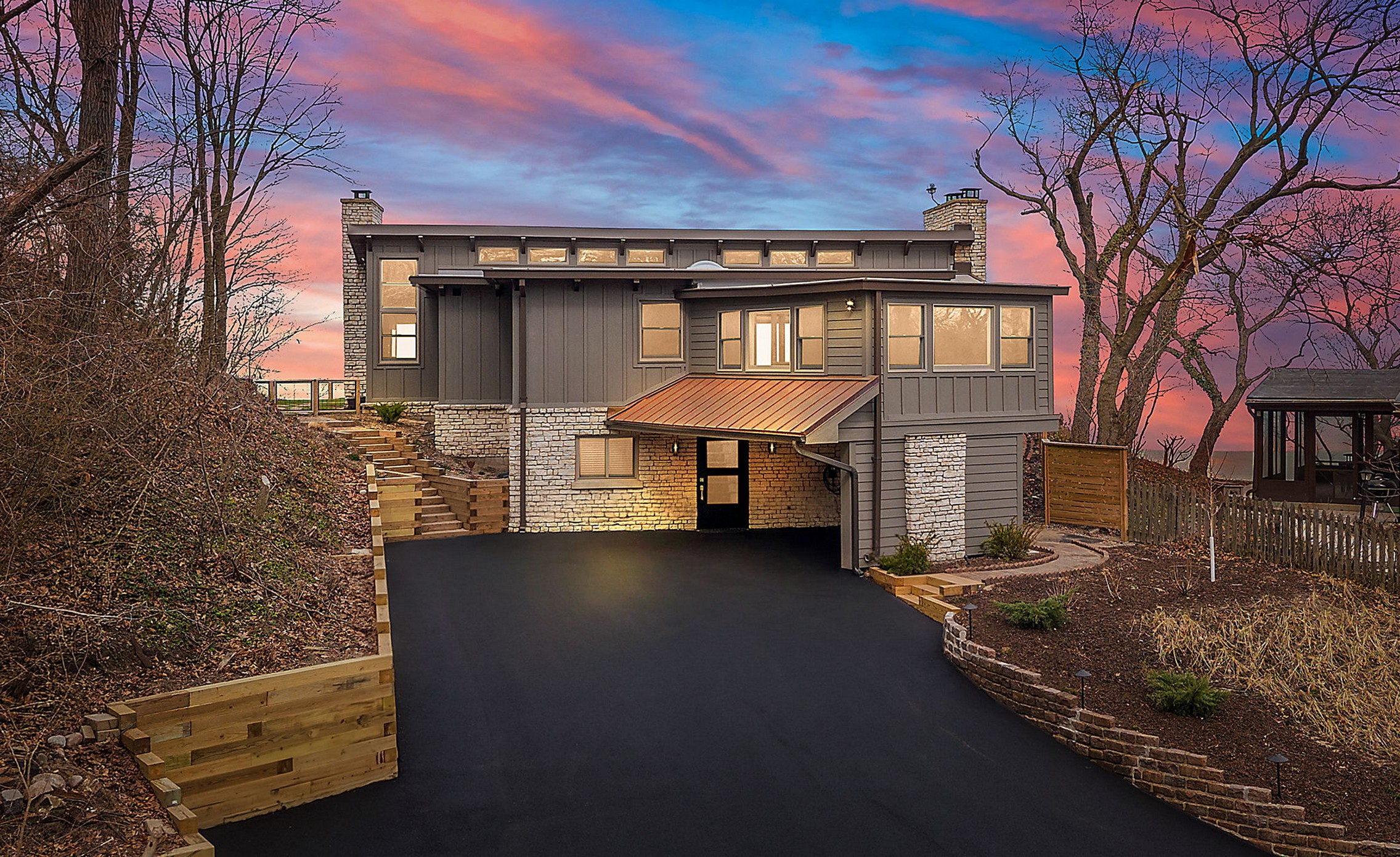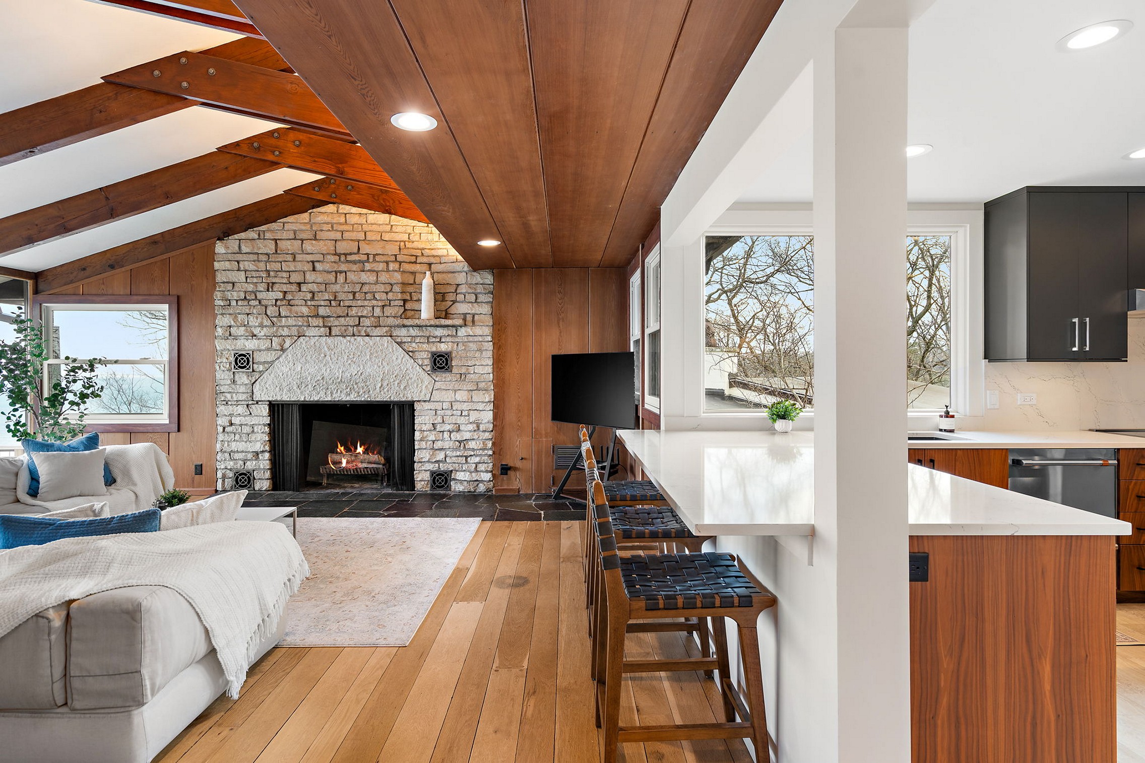 Nestled atop a wooded dune in the intimate community of Dune Acres, just one hour from downtown Chicago, 44 Circle Drive presents a rare opportunity to own a fully reimagined piece of Lake Michigan's most coveted shoreline. Built in 1946 and thoughtfully transformed by its current owners, this iconic hillside ranch has been meticulously updated while preserving its original character. Arrive to a freshly landscaped exterior where new custom fencing and a stone patio create generous outdoor living space, perfectly positioned to capture sweeping lake views. Step inside and Lake Michigan immediately takes center stage. The living room offers unobstructed water views through new Andersen windows, framed by refinished redwood walls, exposed beams, vaulted ceilings, and a dramatic stone fireplace. The primary bedroom and library carry those same captivating views, making even the quietest moments feel connected to the shoreline. The fully remodeled kitchen flows naturally from the living space and features Sub-Zero and Fulgor Milano appliances along with a granite composite sink, equally suited for a quiet morning coffee or a full weekend of entertaining. Three bedrooms, a dedicated office, two updated baths, and a renovated sunroom complete a warm, finished interior, all set within the privacy of the dune and the surrounding natural landscape. Access the beach via private stairs, or the recently installed community beach stairs just steps away. This is lake life at its finest.