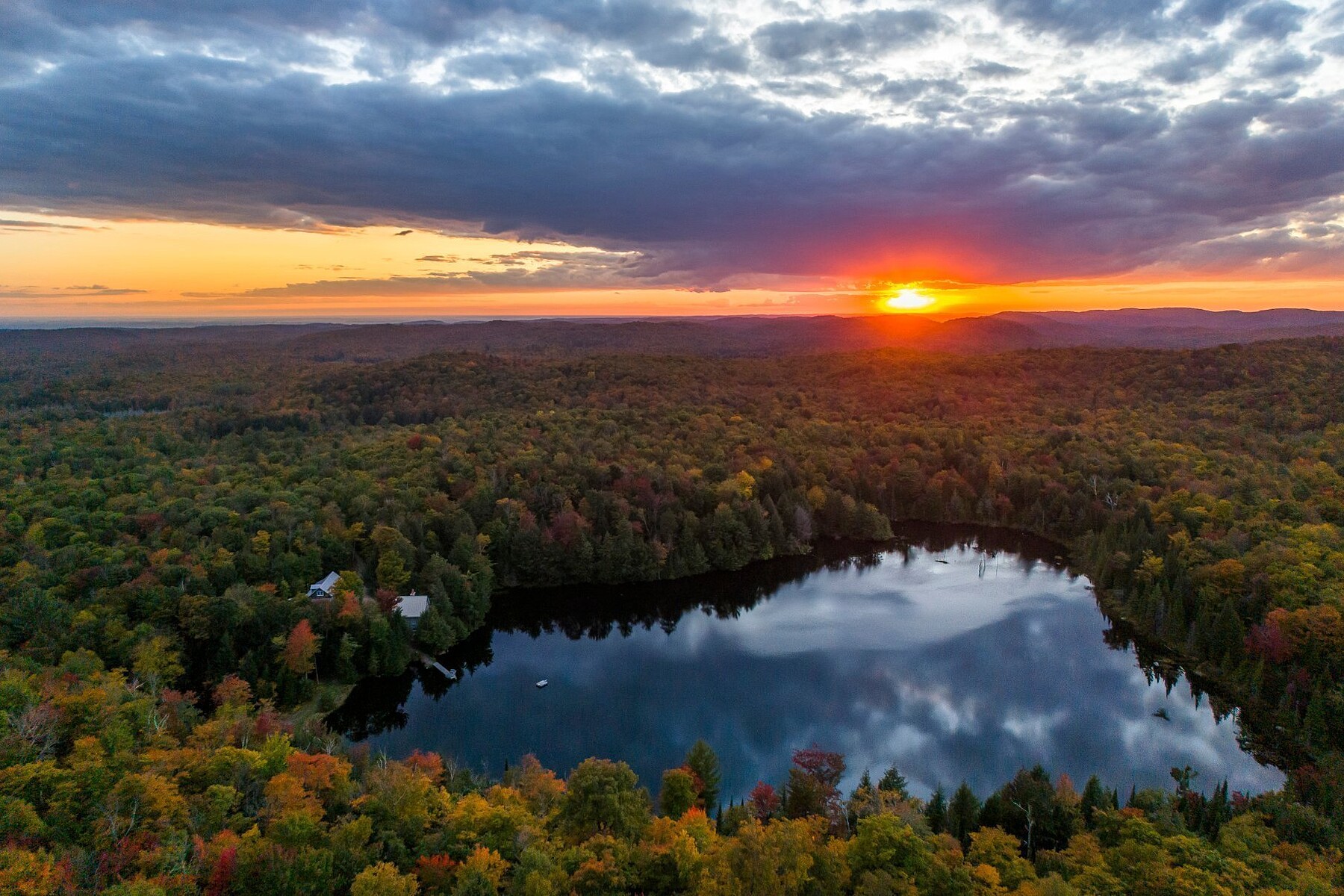 PRIVATE LAKE. Tanglewood -- an exceptional 6,000,000 sq. ft. estate in the heart of the Laurentians. A 30-foot-deep, 9.5 acres private lake, fed by a natural spring, ideal for swimming and fishing. Over 4.5 km of hiking and mountain biking trails, abundant wildlife -- a true paradise for nature lovers. Charming 30' x 26' home with 2 bedrooms, central fireplace, and high-quality materials. Impressive 49' x 28' barn-garage with heated workshop. Complete energy self-sufficiency -- propane, solar, diesel. Accessible from Montreal, Ottawa, and Mont-Tremblant. A rare property. An incomparable lifestyle.