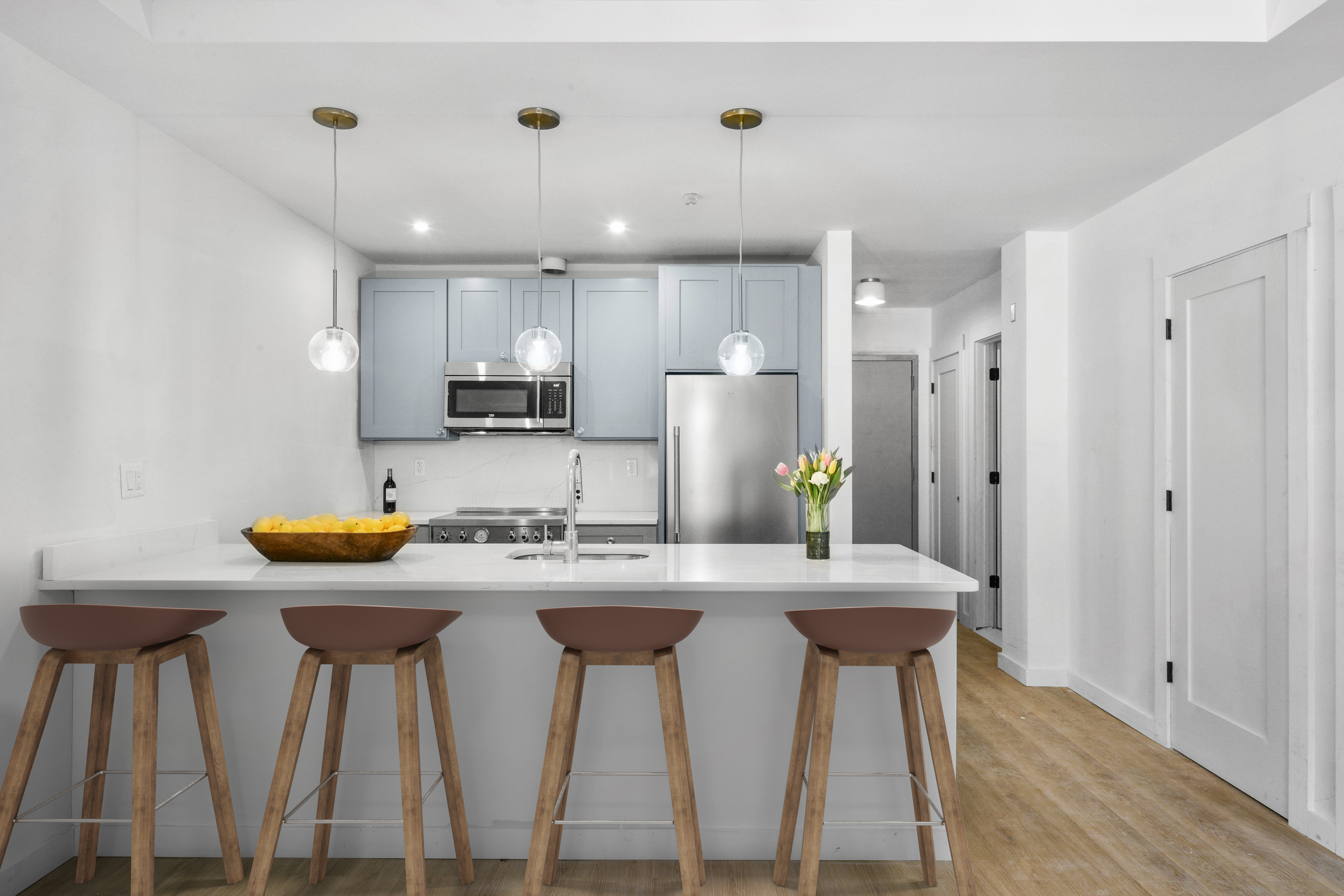 This corner end unit 3e is the only one with an entry hall and gets fantastic natural sun light and features a large living + dining room, a generous sized bath with a step in shower, and a bright and spacious bedroom, in unit full size washer dryer, high ceilings, large closets, and an entry hall. 139 on Fifth is Pelham's newest luxury apartment building in the heart of downtown. Just two blocks from the train station and steps to all shops, restaurants, and salons, you can move into this sunny 813 sf unit immediately. Enjoy open-plan living with 8' ceilings which is perfect for today's lifestyle. The huge living room windows let the sunshine in and the kitchen layout is is popular with everyone. This amenity-rich building offers an elevator, a gym, a pet spa, security, and a package room. There is also a resident lounge and a rooftop deck to enjoy the sunsets. Rent is $3,825 a month and pets are welcome $75/mo. Private assigned parking spot immediately behind the building $185/mo. Work easily at home with Verizon which is already prewired. Move in this weekend!