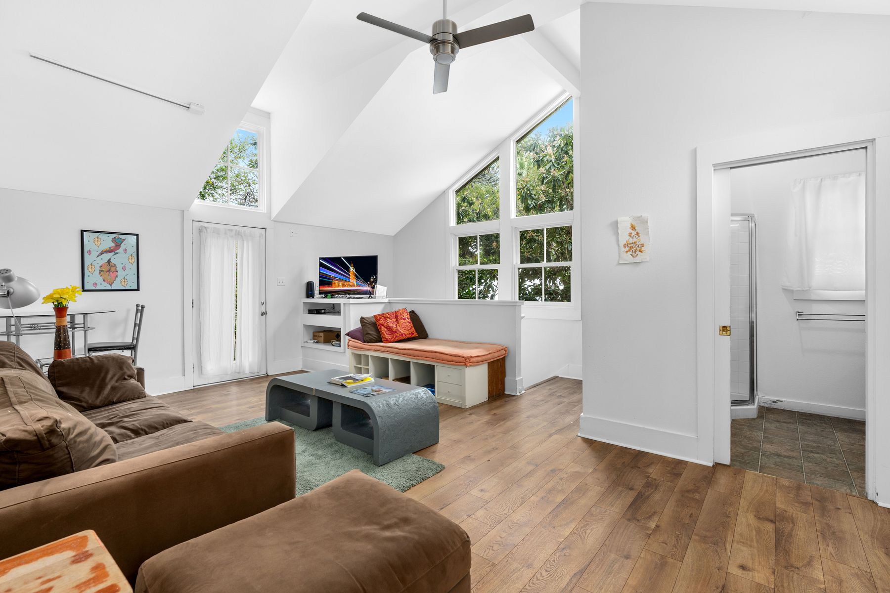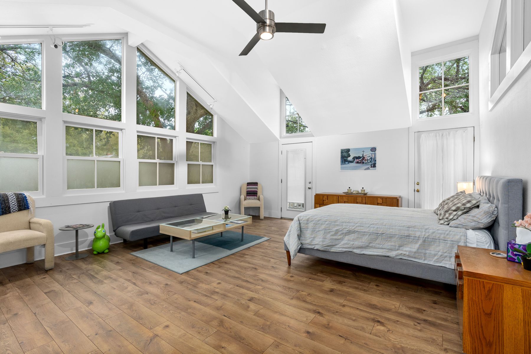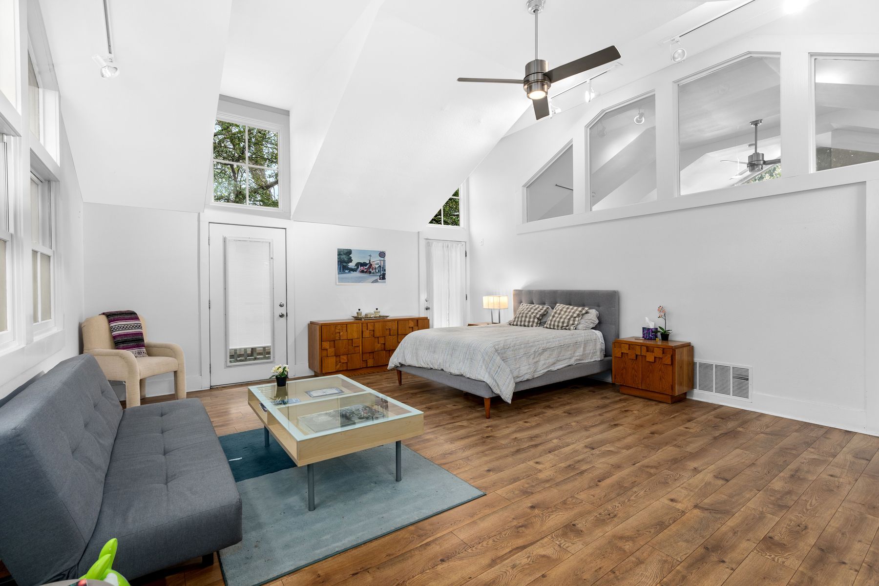Fully furnished light-filled carriage house in the heart of King William! This unit has expansive windows and vaulted ceilings that create a remarkable space. Upstairs you will find a massive primary suite as well as a living room. Downstairs is a full kitchen, dining area and secondary bedroom that could also make a perfect office. King William is the most sought-after community in downtown San Antonio and one of the only truly walkable neighborhoods, with some of the city's best dining and entertainment steps away.