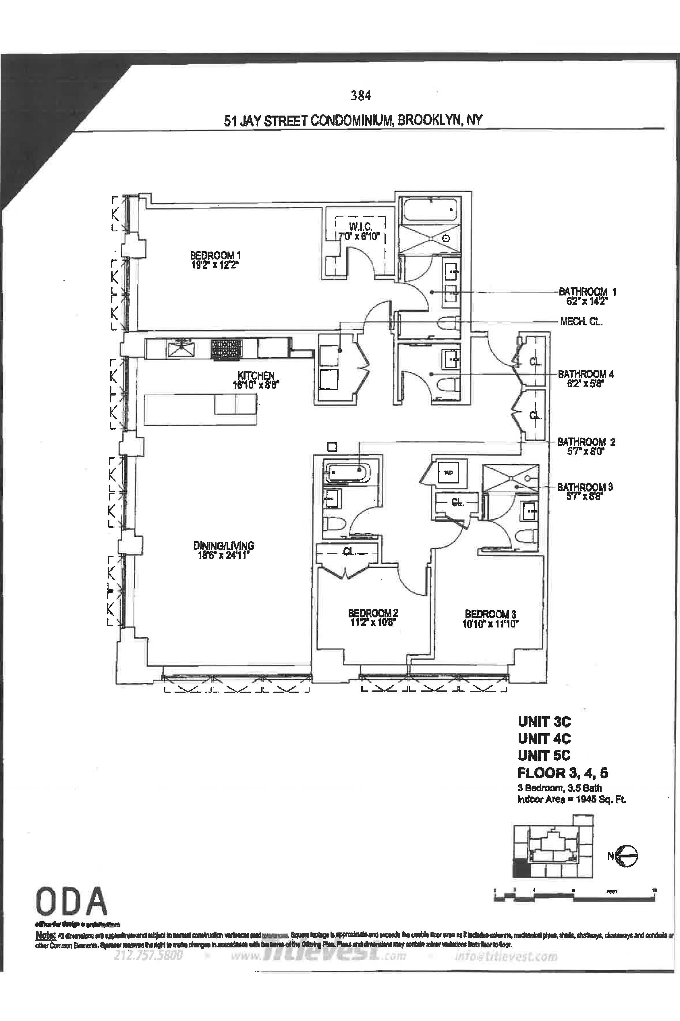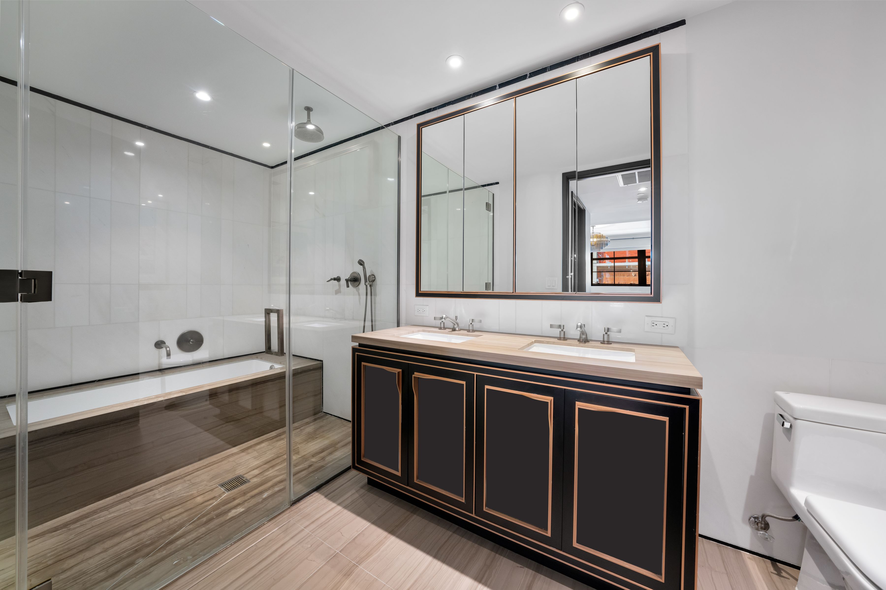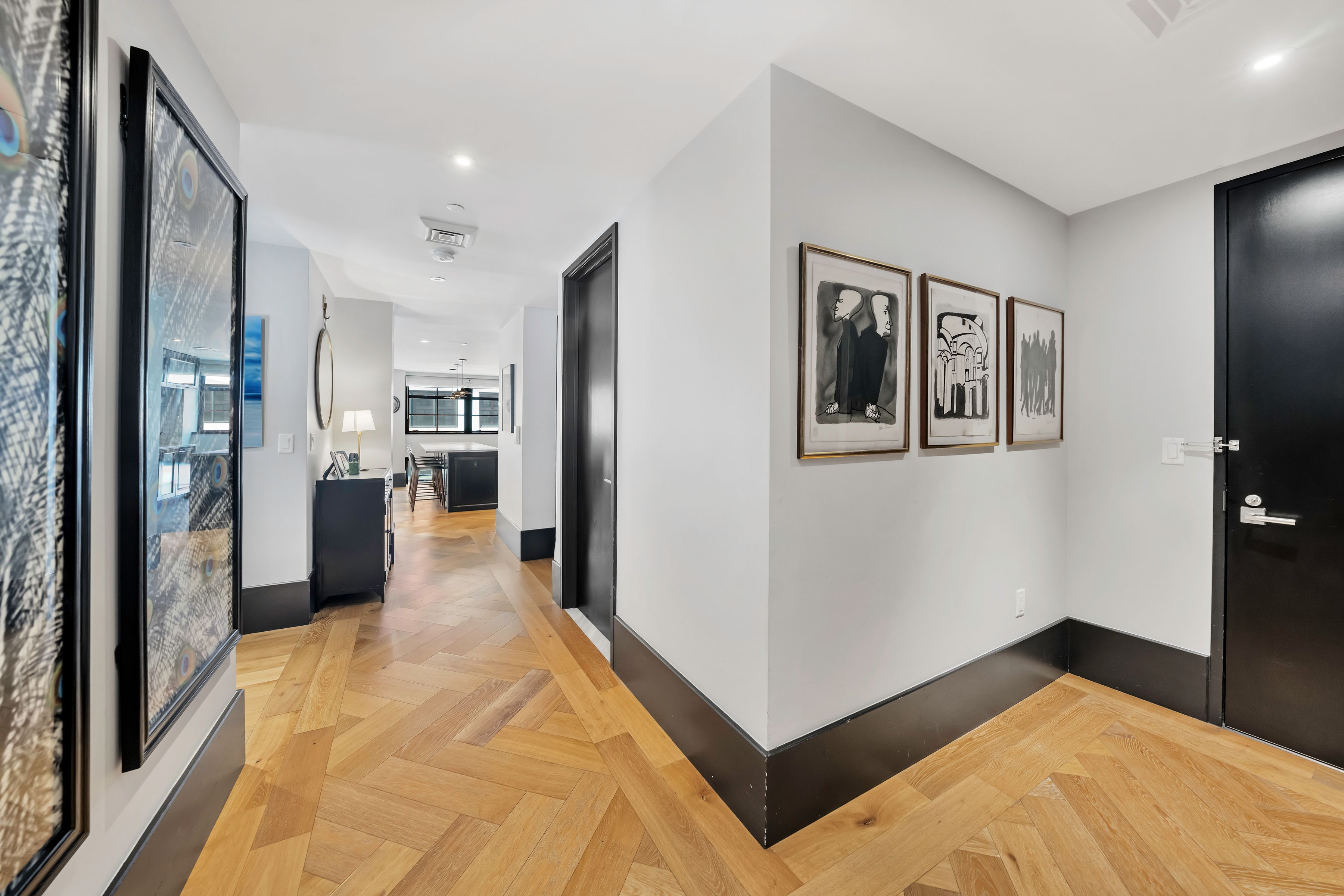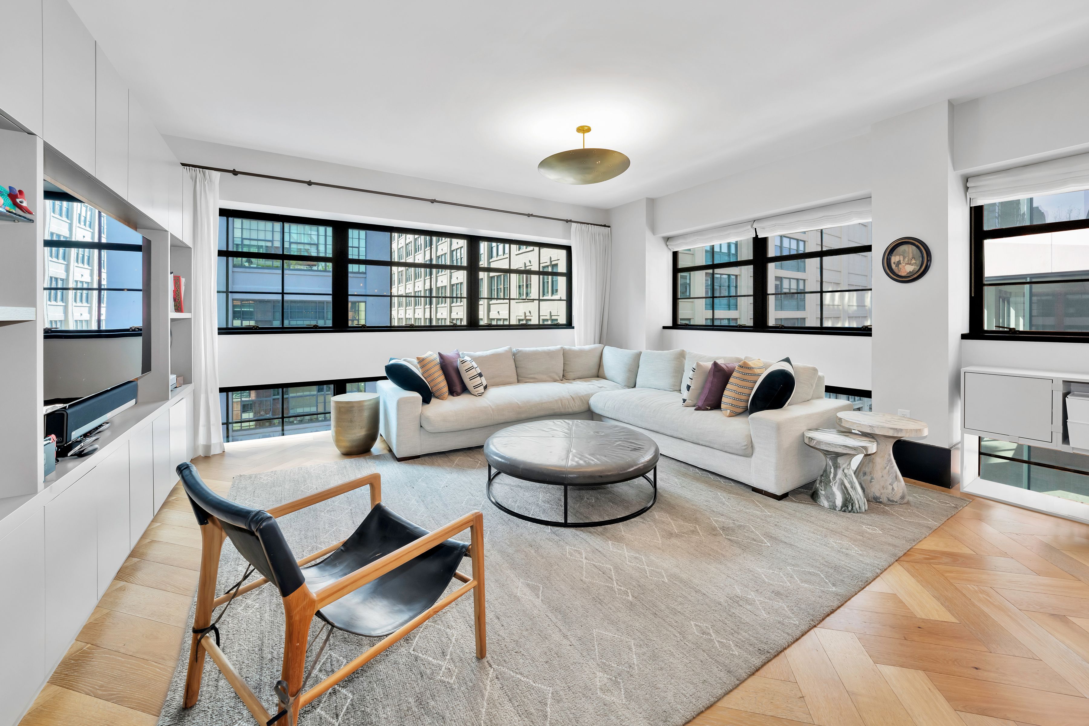 Spanning approximately 1,945 +/- square feet, this spacious and well-proportioned three-bedroom, three-and-a-half-bath home seamlessly blends refined luxury with a contemporary edge. A loft-like ambiance is thoughtfully integrated with modern design elements throughout. Originally transformed from a warehouse by the architectural firm ODA, the home reflects a distinctive level of design and craftsmanship. 5C is positioned on the northwest corner and is wrapped in striking casement windows, filling the space with abundant natural light. An inviting foyer with double-door closets welcomes you upon entry, leading to a gallery hallway just beyond, complete with an adjacent powder room. The expansive living and dining area features dual exposures, offering abundant natural light and open views, making it ideal for both entertaining and everyday living. The open chef’s kitchen is anchored by a striking La Rochelle Gris marble slab island and custom cabinetry by Aster Cucine. Fully integrated Gaggenau appliances, along with a wine refrigerator, complete this thoughtfully designed space suited for any culinary enthusiast. The generously sized primary bedroom is enhanced by custom-designed, fully fitted closets. Its en-suite bath is a true showpiece, featuring marble flooring and countertops, a double vanity with copper accents, and a glass-enclosed wet room complete with a rain shower and deep soaking tub. The second and third bedrooms are both well-proportioned and offer custom closets; one includes an en-suite bath, while the other is served by a full bathroom just outside. Both bathrooms are beautifully appointed with custom white oak vanities, nickel fixtures, and Tundra Gray honed marble countertops. Completing this exceptional home are elegant oak herringbone floors, central air conditioning, automatic shades, an in-unit washer and dryer, and abundant custom storage found throughout. Originally an industrial warehouse prior to its conversion in 2016, 51 Jay Street comprises 75 units across seven stories and features a fully attended lobby with polished concrete flooring and steel tracks inspired by the original rails that once carried goods throughout the building. Additional amenities include a full-time doorman, fitness center, residents’ lounge, children’s playroom, pet washroom, bicycle storage, parking, and an expansive private rooftop with areas for relaxing and entertaining, including an outdoor kitchen. 51 Jay Street is conveniently located just two blocks from Brooklyn Bridge Park and in close proximity to iconic Washington Street, Jane’s Carousel, and Time Out Market. Multiple transportation options are readily available, including the A, C, and F trains, as well as the New York East River Ferry/Water Taxi, making commuting seamless. Enjoy historic cobblestone streets, eclectic shops, cozy cafés, acclaimed restaurants, renowned art galleries, and everything DUMBO has to offer.