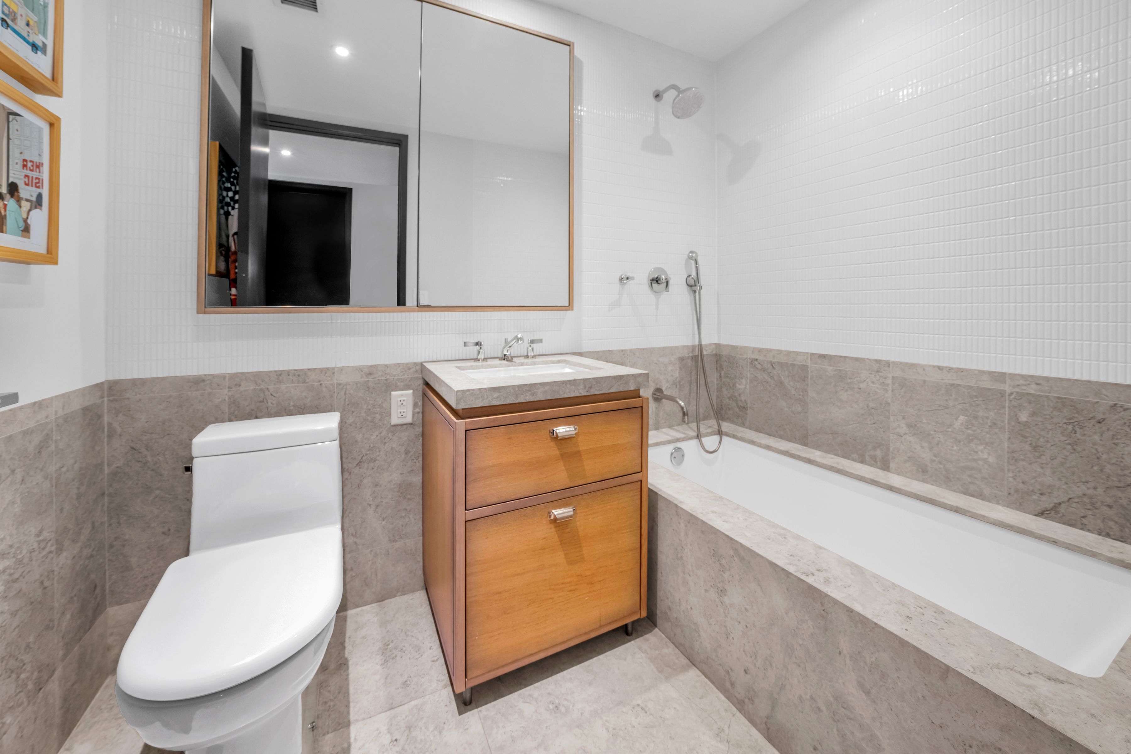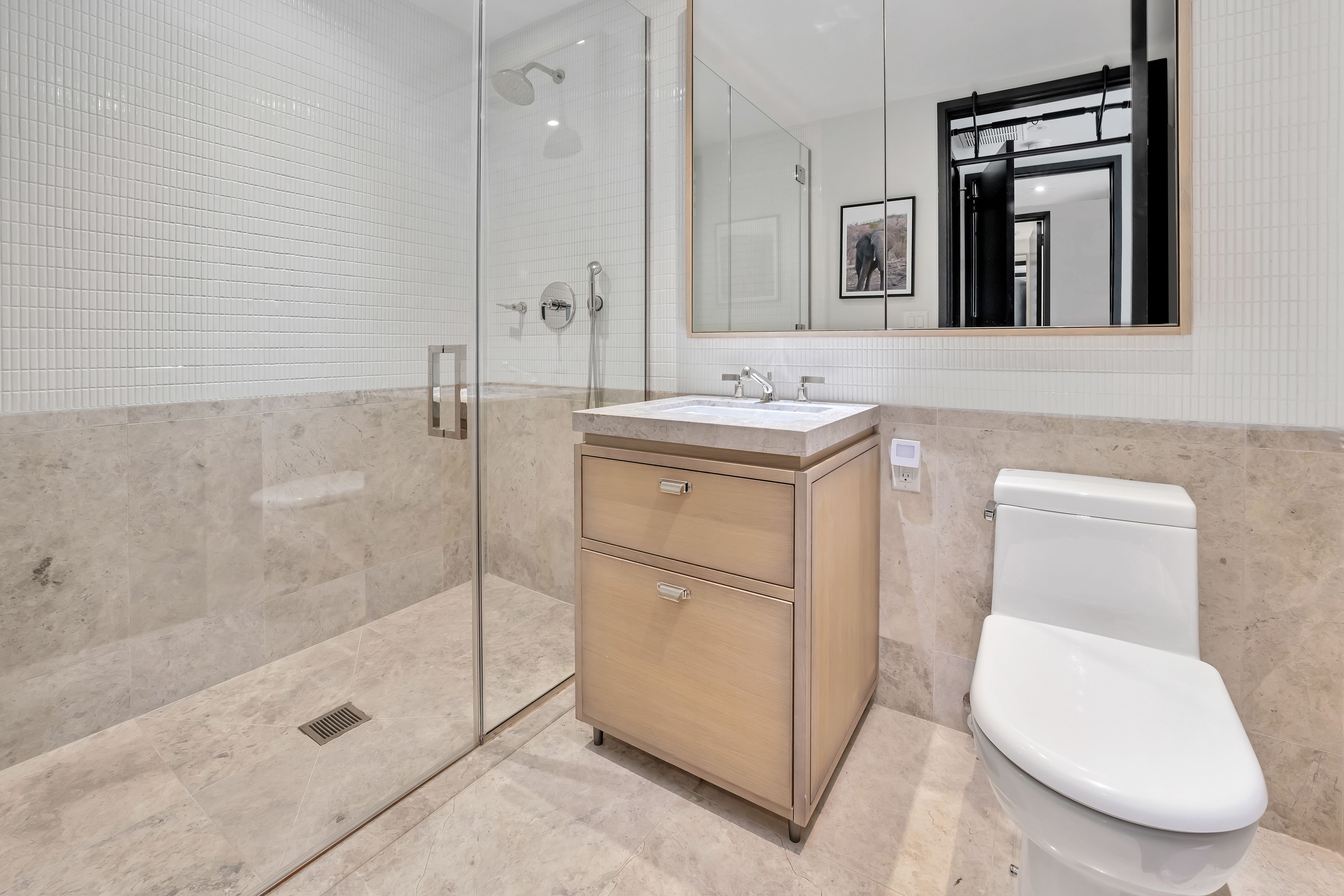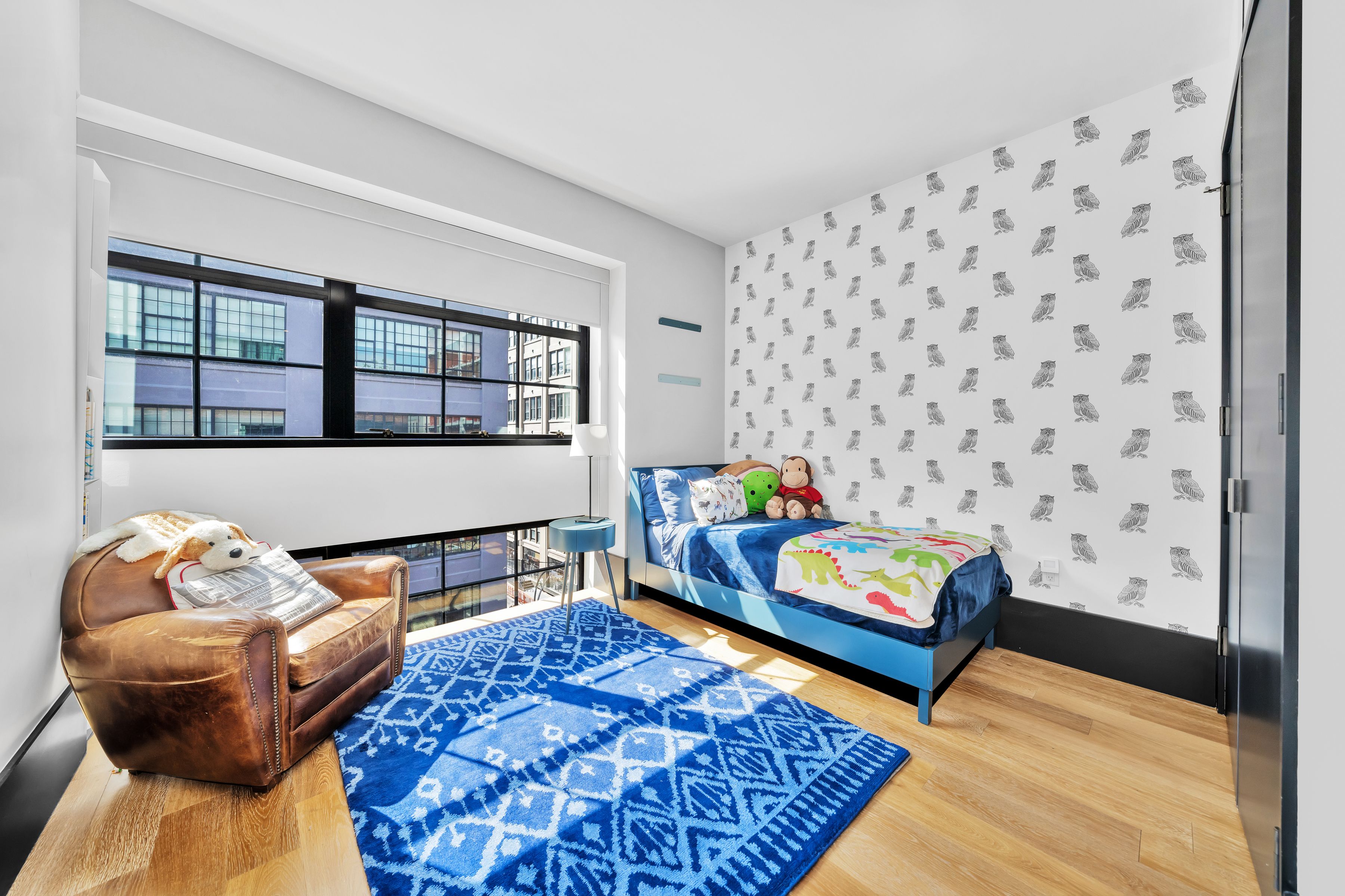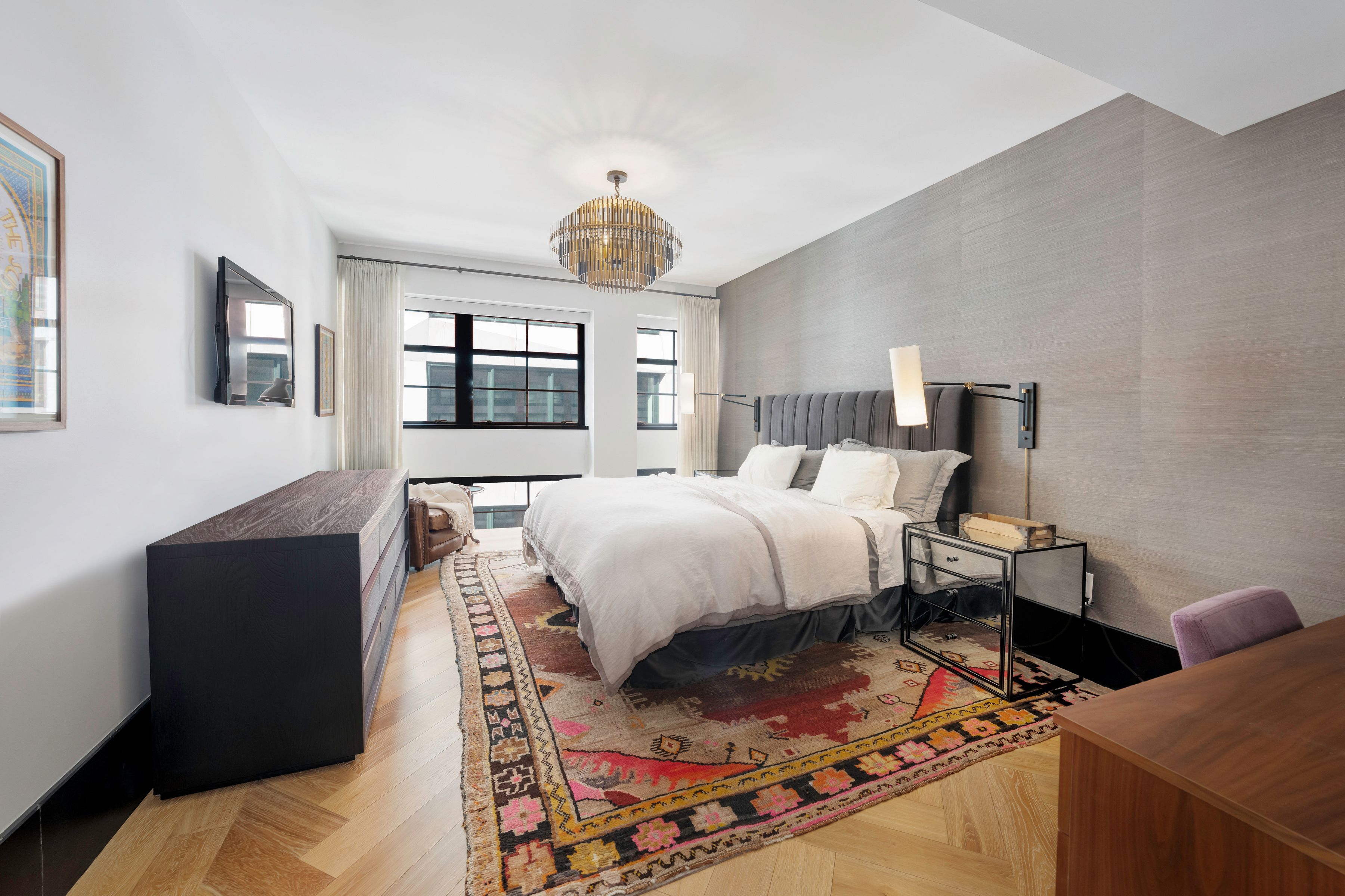 Spanning approximately 1,945 +/- square feet, this spacious and well-proportioned three-bedroom, three-and-a-half-bath home seamlessly blends refined luxury with a contemporary edge. A loft-like ambiance is thoughtfully integrated with modern design elements throughout. Originally transformed from a warehouse by the architectural firm ODA, the home reflects a distinctive level of design and craftsmanship. 5C is positioned on the northwest corner and is wrapped in striking casement windows, filling the space with abundant natural light. An inviting foyer with double-door closets welcomes you upon entry, leading to a gallery hallway just beyond, complete with an adjacent powder room. The expansive living and dining area features dual exposures, offering abundant natural light and open views, making it ideal for both entertaining and everyday living. The open chef’s kitchen is anchored by a striking La Rochelle Gris marble slab island and custom cabinetry by Aster Cucine. Fully integrated Gaggenau appliances, along with a wine refrigerator, complete this thoughtfully designed space suited for any culinary enthusiast. The generously sized primary bedroom is enhanced by custom-designed, fully fitted closets. Its en-suite bath is a true showpiece, featuring marble flooring and countertops, a double vanity with copper accents, and a glass-enclosed wet room complete with a rain shower and deep soaking tub. The second and third bedrooms are both well-proportioned and offer custom closets; one includes an en-suite bath, while the other is served by a full bathroom just outside. Both bathrooms are beautifully appointed with custom white oak vanities, nickel fixtures, and Tundra Gray honed marble countertops. Completing this exceptional home are elegant oak herringbone floors, central air conditioning, automatic shades, an in-unit washer and dryer, and abundant custom storage found throughout. Originally an industrial warehouse prior to its conversion in 2016, 51 Jay Street comprises 75 units across seven stories and features a fully attended lobby with polished concrete flooring and steel tracks inspired by the original rails that once carried goods throughout the building. Additional amenities include a full-time doorman, fitness center, residents’ lounge, children’s playroom, pet washroom, bicycle storage, parking, and an expansive private rooftop with areas for relaxing and entertaining, including an outdoor kitchen. 51 Jay Street is conveniently located just two blocks from Brooklyn Bridge Park and in close proximity to iconic Washington Street, Jane’s Carousel, and Time Out Market. Multiple transportation options are readily available, including the A, C, and F trains, as well as the New York East River Ferry/Water Taxi, making commuting seamless. Enjoy historic cobblestone streets, eclectic shops, cozy cafés, acclaimed restaurants, renowned art galleries, and everything DUMBO has to offer.