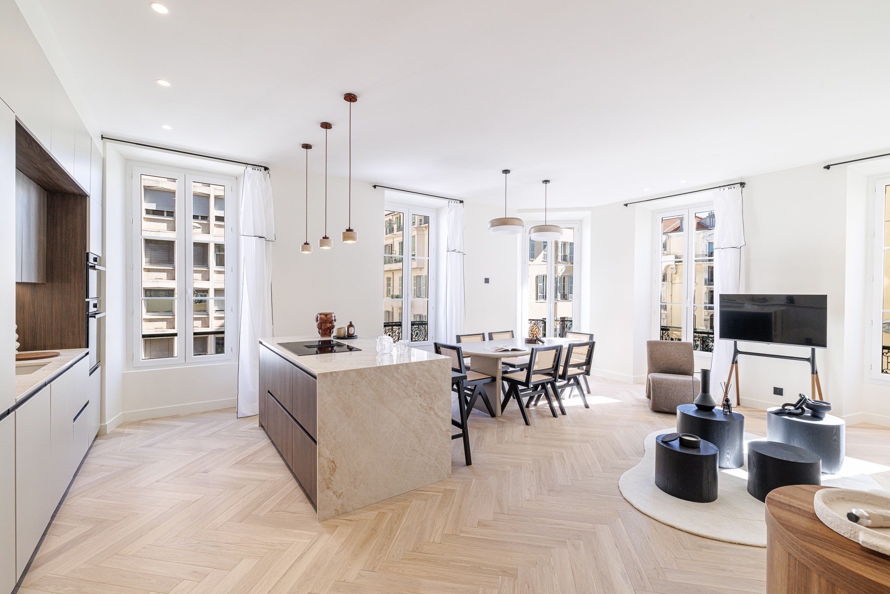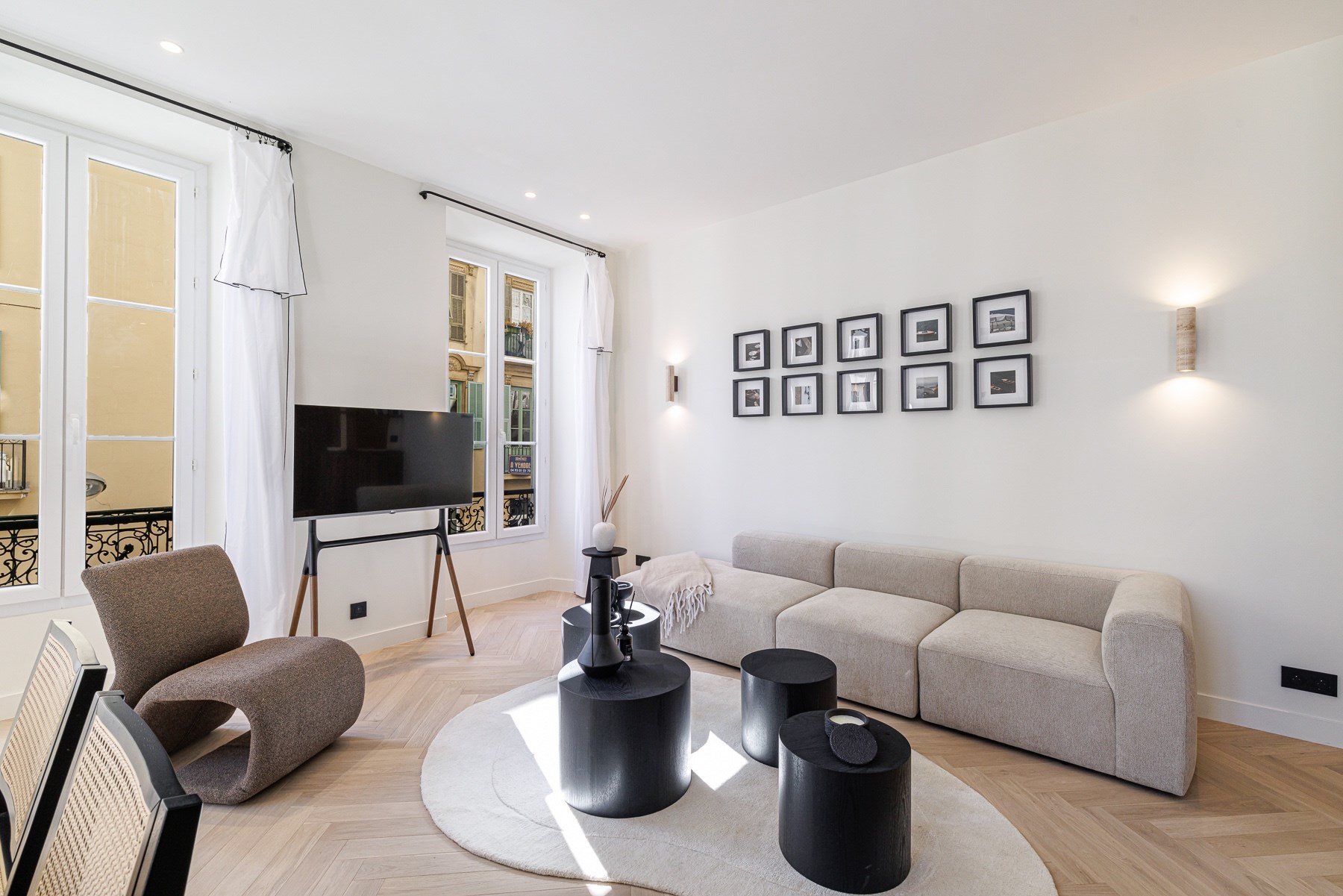 Nice city centre 3 bedroom apartment 104 sqm renovated balcony terrace quiet location investment opportunity Located in Nice city centre, this fully renovated 3 bedroom apartment of approximately 104 sqm is set on the second floor of a corner building. Reception Areas The property includes a living room with open plan kitchen, opening onto a wraparound balcony, providing natural light and exterior access. Bedrooms Three bedrooms, two shower rooms including one with toilet, and a separate guest toilet. Outdoor Spaces Wraparound balcony and a private terrace at the rear in a quiet setting, a rare feature in central Nice. Additional Features Fully renovated with quality materials. Good layout and central location. Close to shops, restaurants, transport and amenities. This property is suitable for a primary residence, second home or rental investment in Nice city centre on the French Riviera. Location Prime central location in Nice with immediate access to amenities and the coastline. For further information or to arrange a private viewing, please contact Côte d’Azur Sotheby’s International Realty.