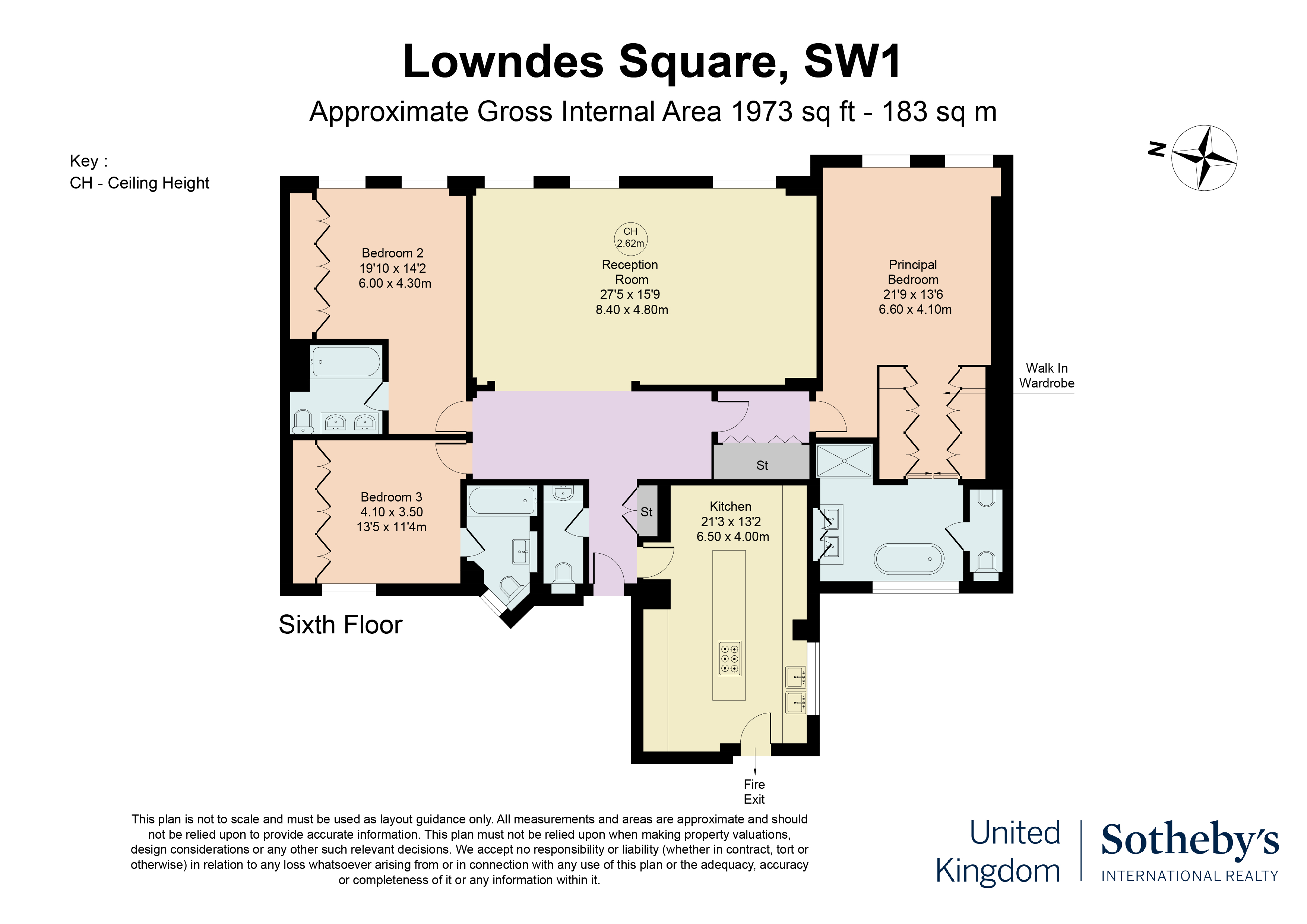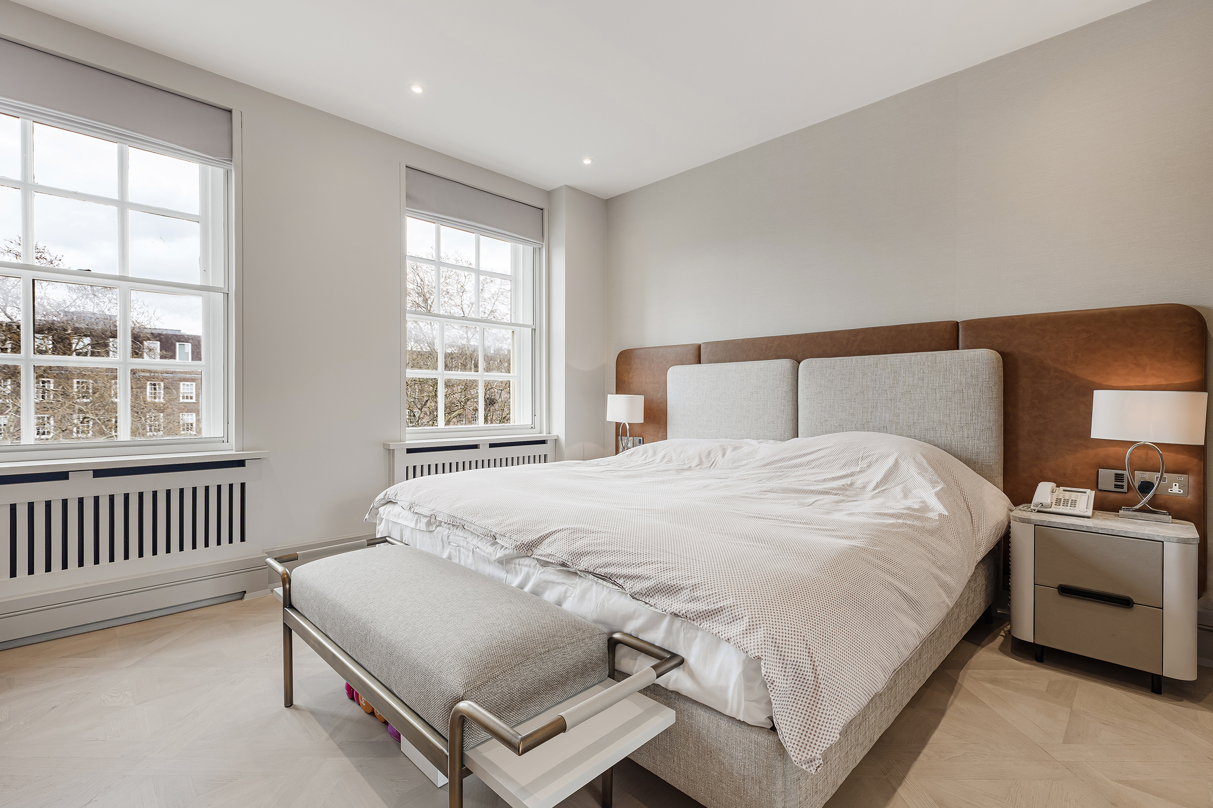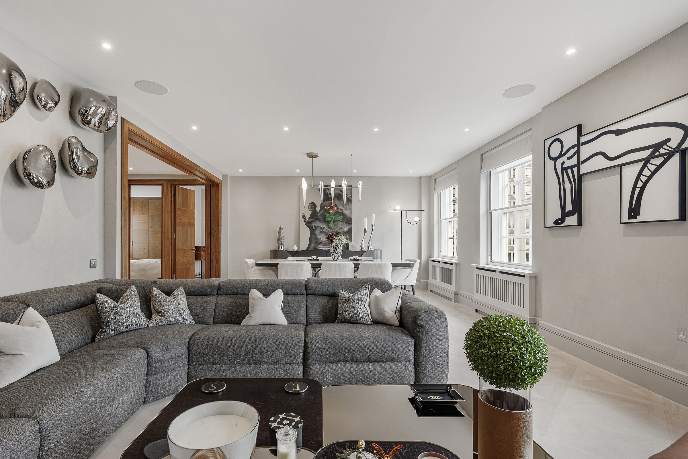 Set high above one of Belgravia’s most handsome garden squares, this three-bedroom apartment unfolds across the sixth floor of a well-run red-brick building on Lowndes Square. Extending to approximately 1,973 sq ft, it is a substantial lateral home with wonderfully generous proportions, a calm contemporary finish and a quietly polished sense of luxury throughout.