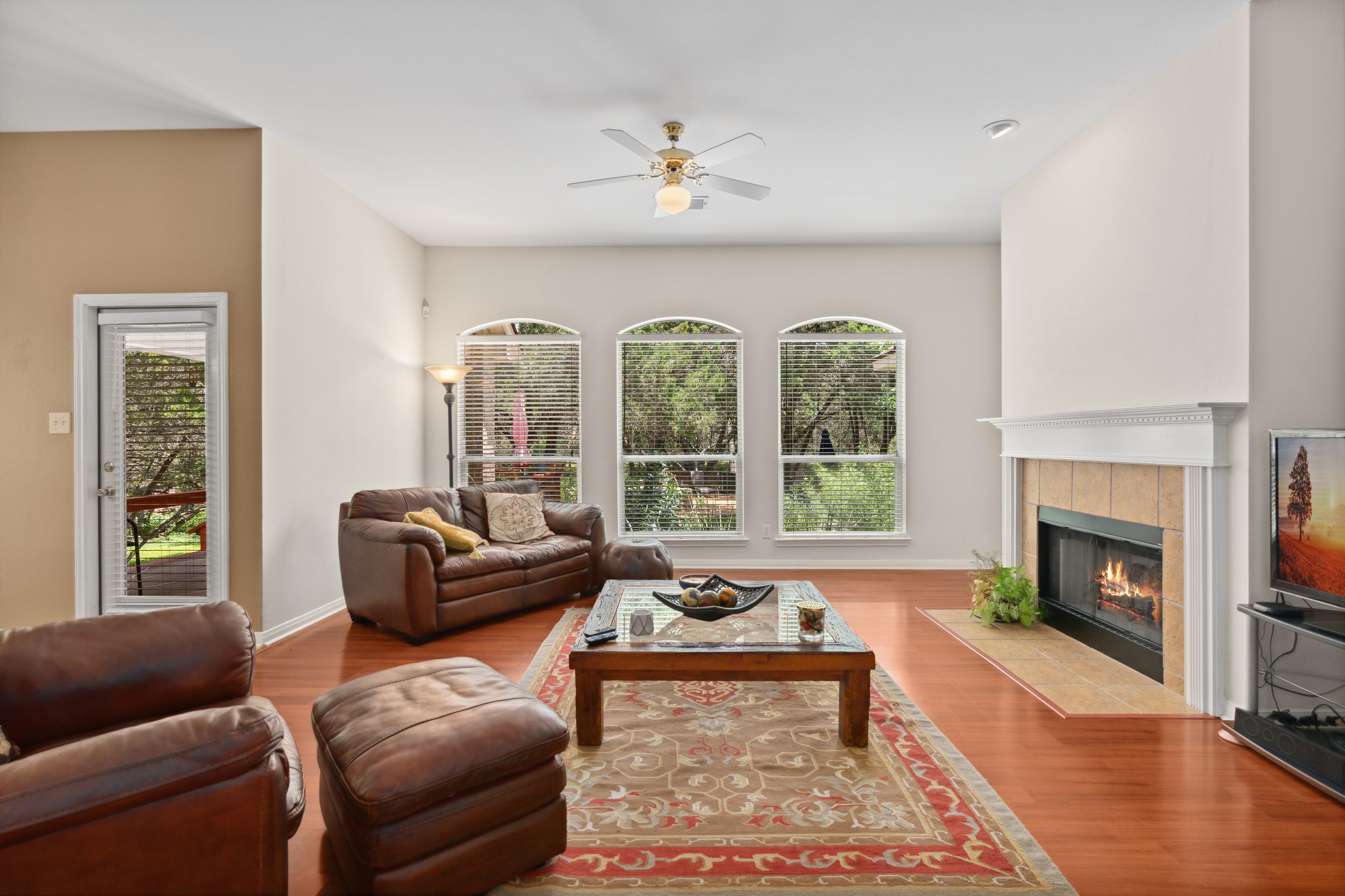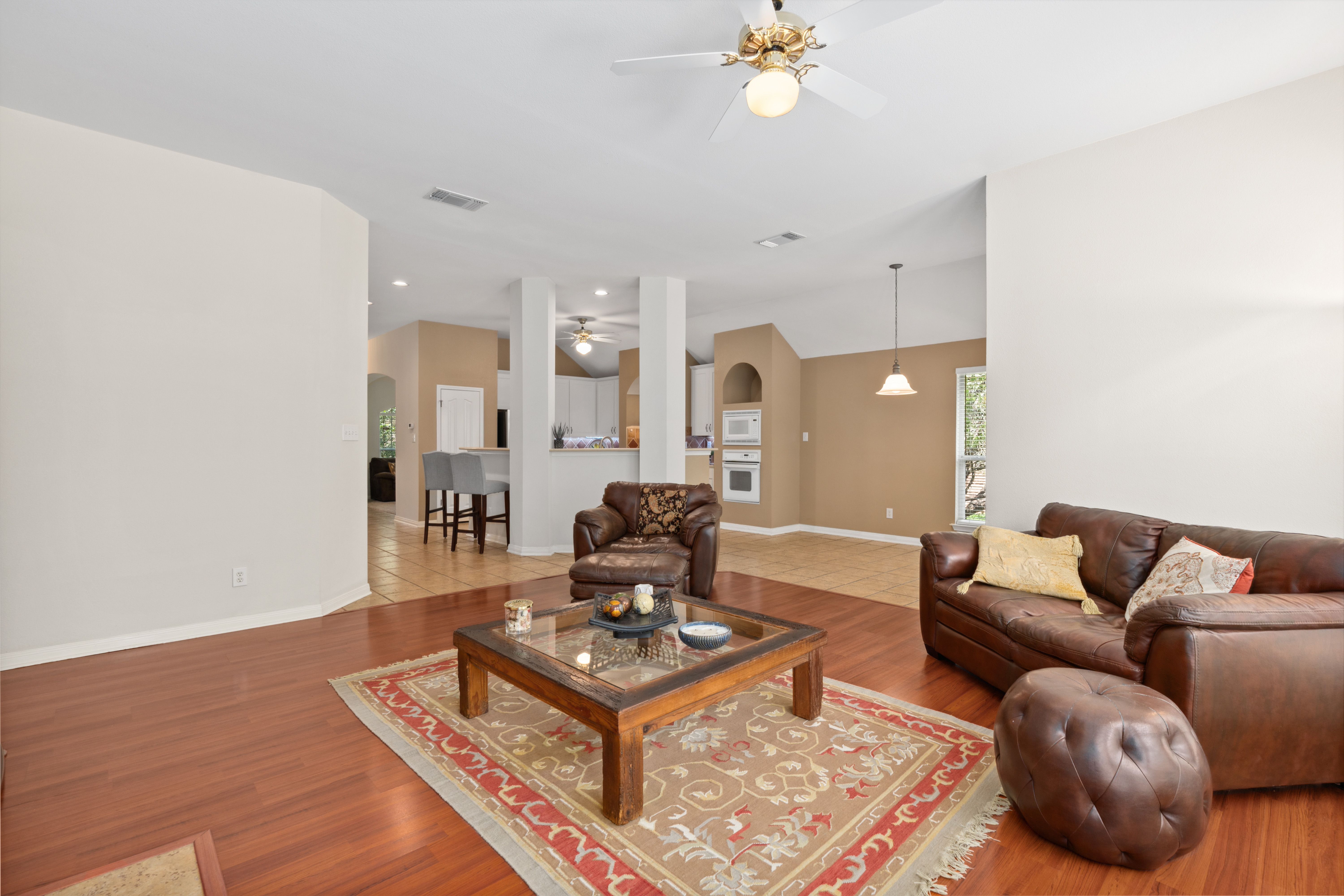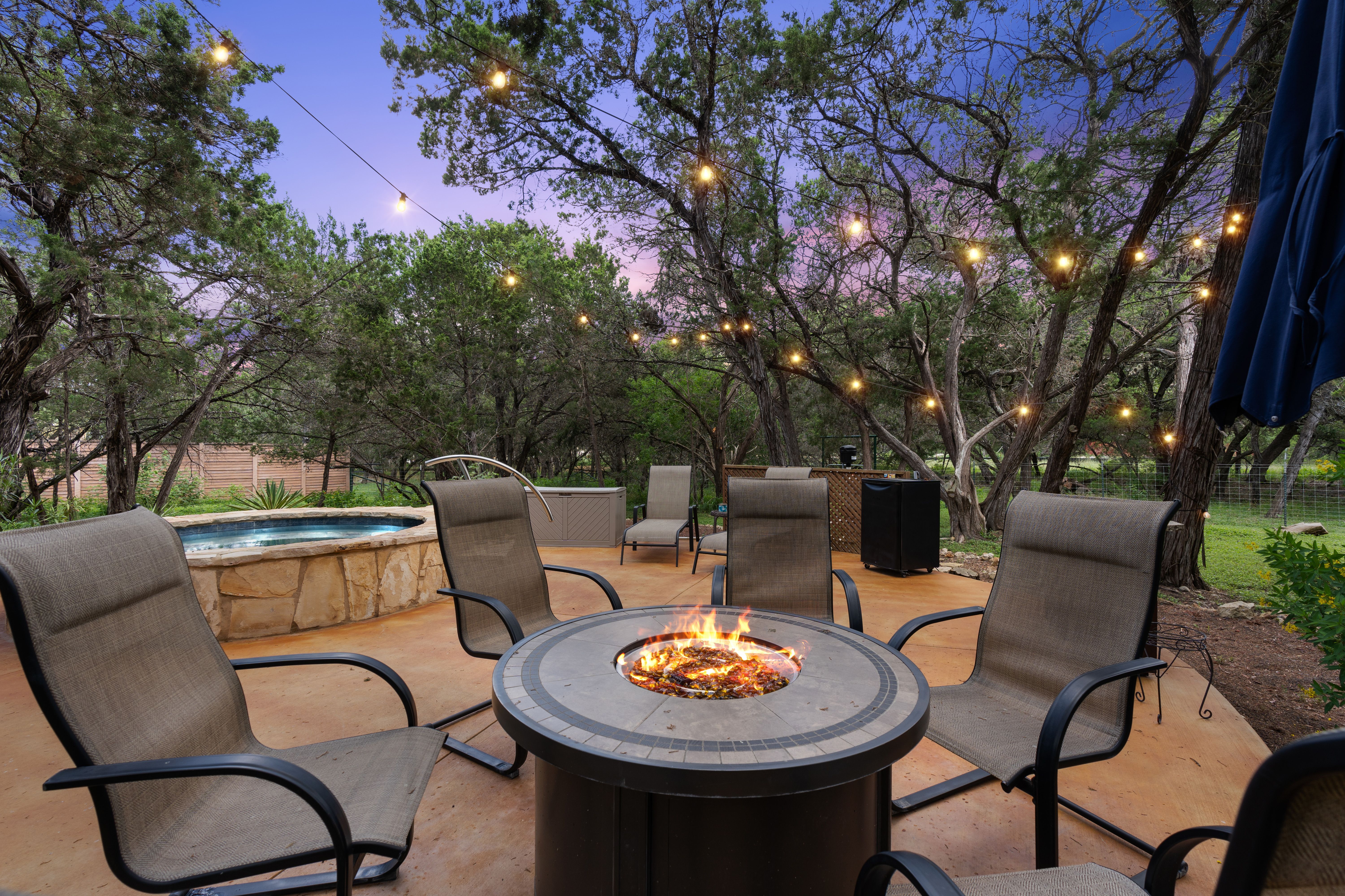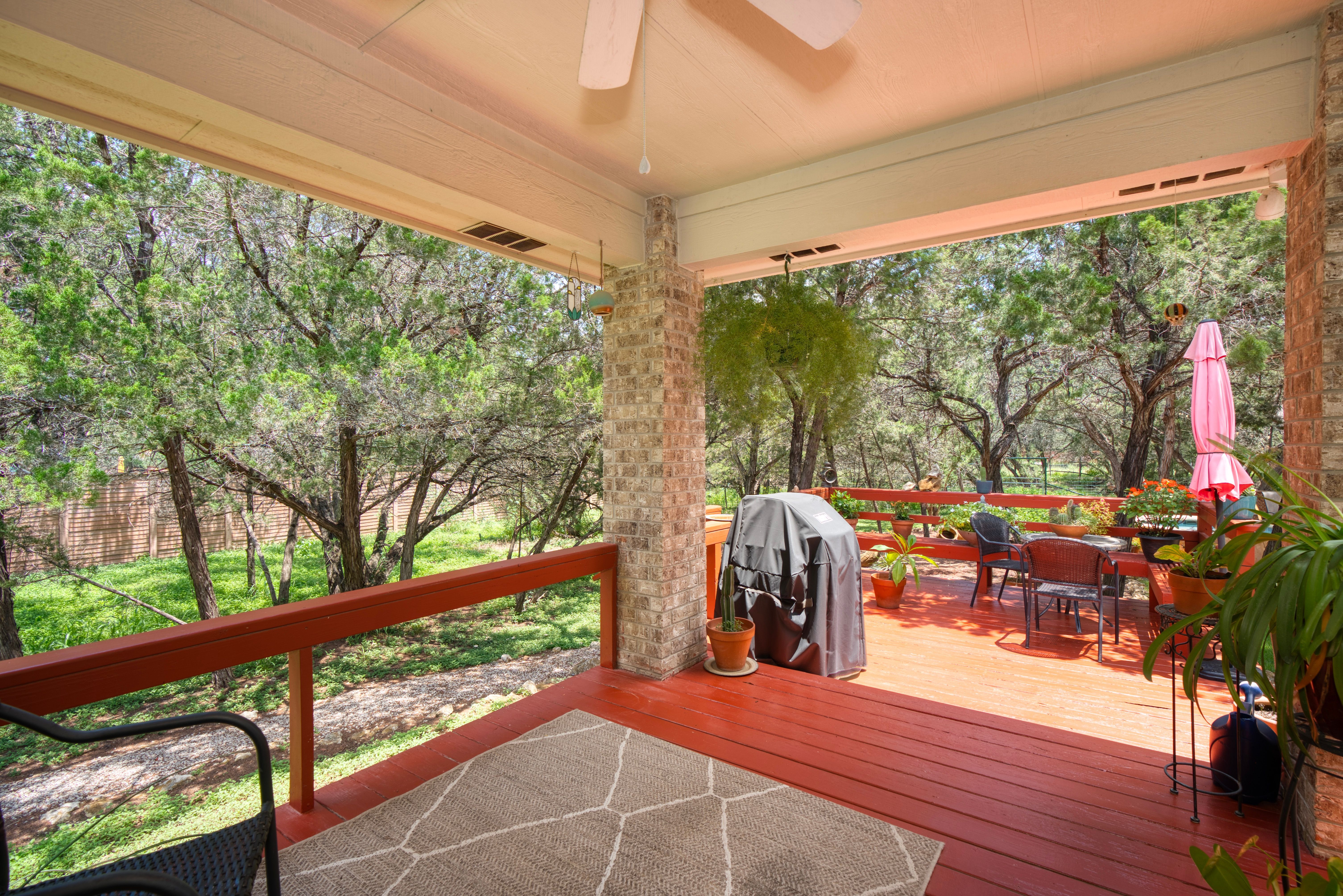 Tucked beneath a canopy of mature trees on 1.387 acres, this inviting retreat in the gated community of T Bar M Ranch Estates offers the perfect balance of privacy and connection. Recently refreshed with updated paint and recently replaced roof, this home welcomes you with a warm, functional layout designed for both quiet living and gathering with ease. Step outside to your own secluded escape - a serene plunge pool surrounded by natural beauty. The 3-car garage adds versatility and convenience. Residents enjoy access to premier amenities including tennis, pickleball, a community pool, and secure gated entry - creating a relaxed, active Hill Country lifestyle!