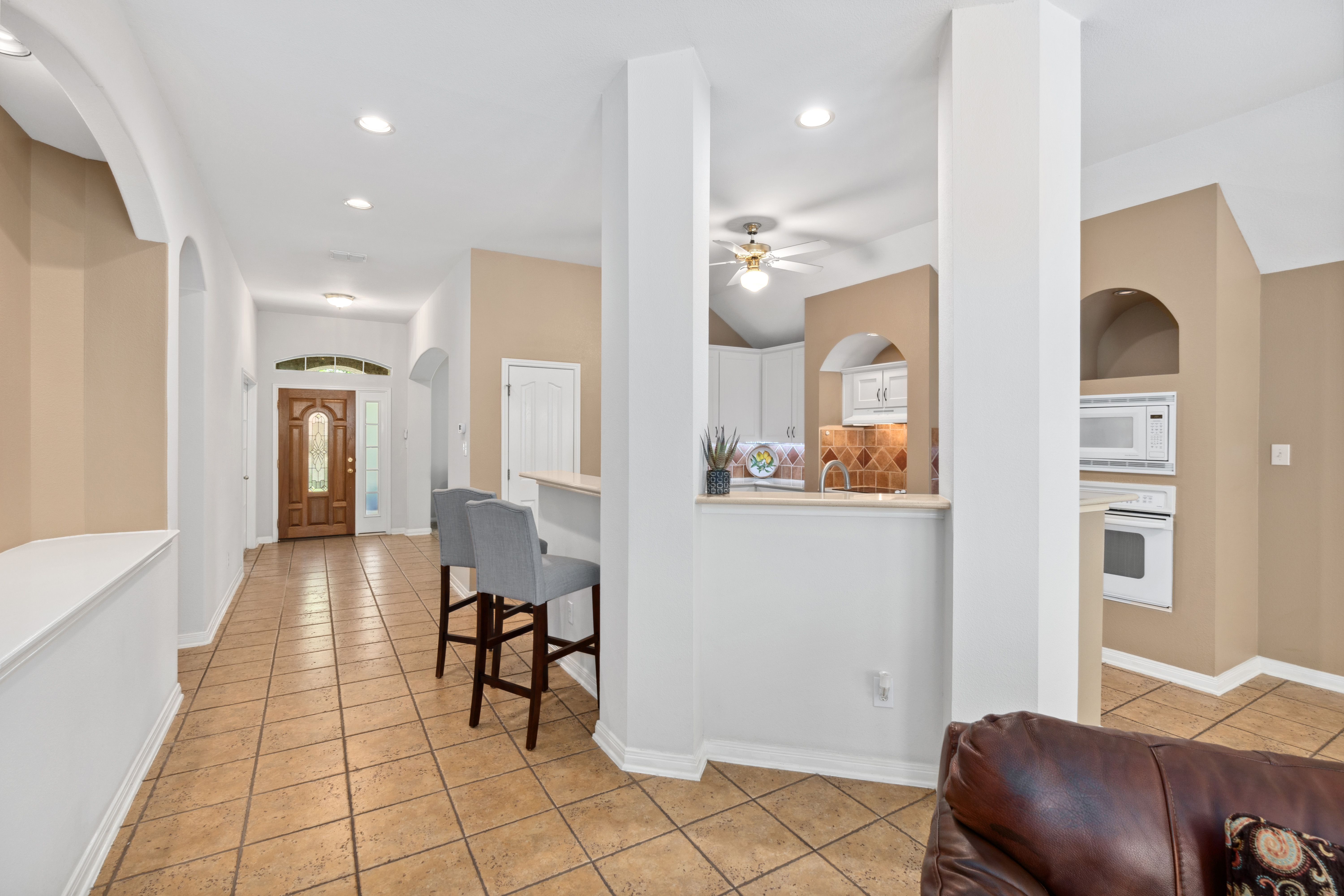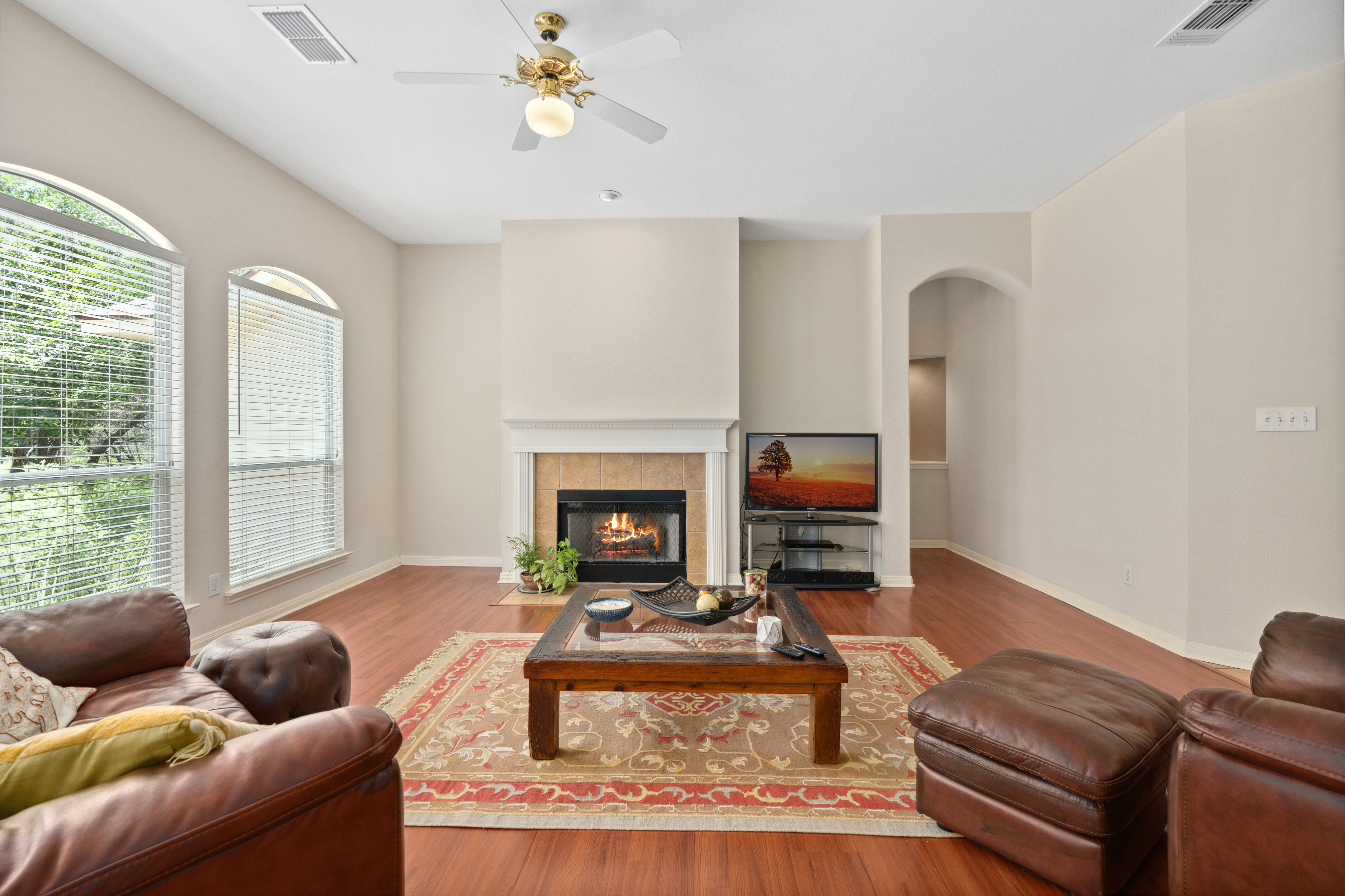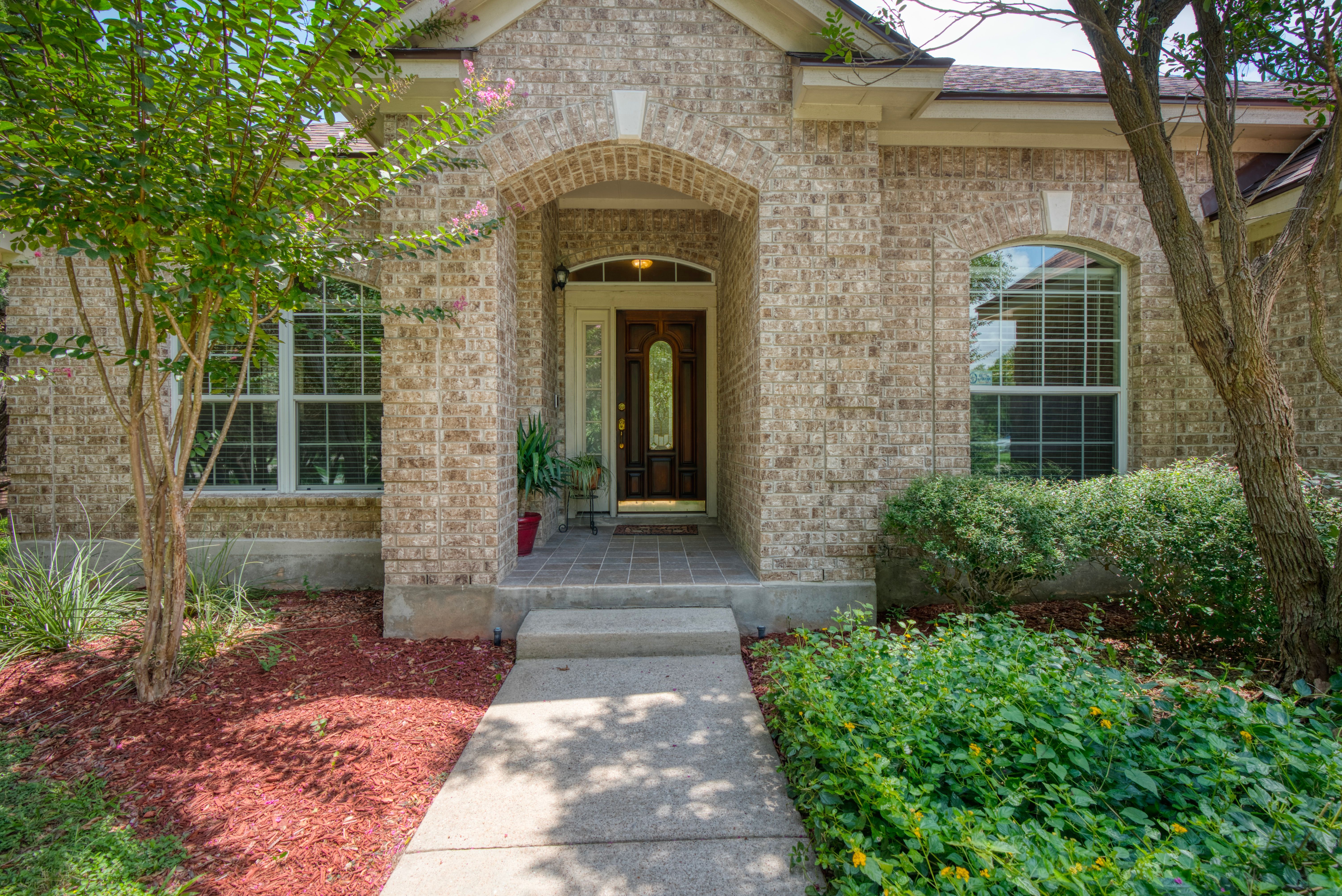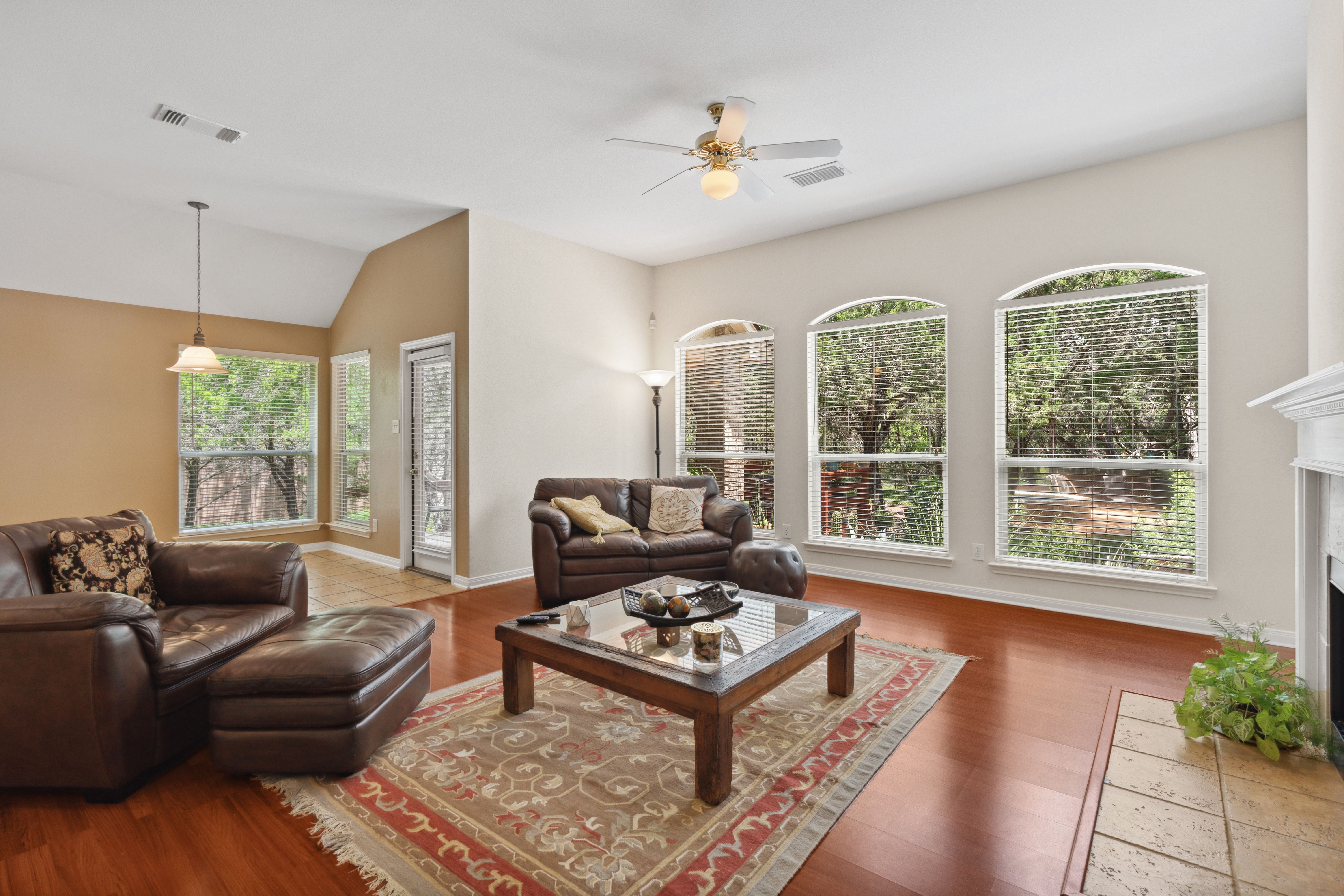 Tucked beneath a canopy of mature trees on 1.387 acres, this inviting retreat in the gated community of T Bar M Ranch Estates offers the perfect balance of privacy and connection. Recently refreshed with updated paint and recently replaced roof, this home welcomes you with a warm, functional layout designed for both quiet living and gathering with ease. Step outside to your own secluded escape - a serene plunge pool surrounded by natural beauty. The 3-car garage adds versatility and convenience. Residents enjoy access to premier amenities including tennis, pickleball, a community pool, and secure gated entry - creating a relaxed, active Hill Country lifestyle!