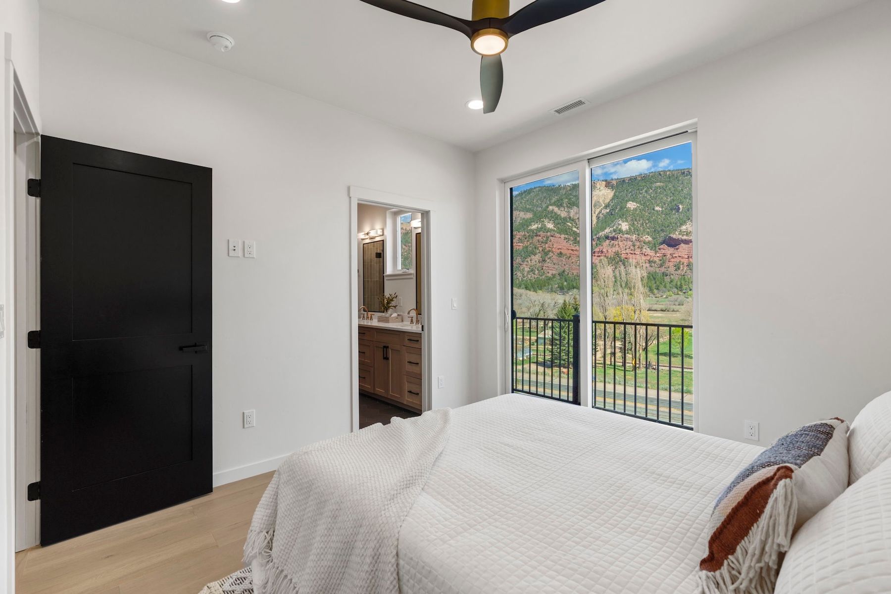 Welcome to the newly built Animas Cliffs Townhomes—A fresh take on modern living in the heart of Durango’s mountain lifestyle. This corner unit lives large with 3 bedrooms, 2.5 bathrooms, and an oversized (630 sf) 2-car garage that’s ready for all your gear—bikes, skis, paddle boards, you name it. Whether you're heading out for a trail day or storing everything after a powder run, this space just makes life easier. Inside, you’ll find clean, high-end finishes throughout with a fresh, modern feel. Hardwood floors run throughout the home—no carpet anywhere—giving it a sleek look and easy maintenance. The open-concept living space is perfect for everyday living or hosting, with tons of natural light pouring in. And the views? They don’t disappoint. Enjoy big mountain views from your windows and private balconies, creating that true Colorado feel right at home. Built with energy efficiency in mind, this home is designed for comfort year-round while keeping utility costs in check. Enhanced with a combination of closed and open-cell spray foam insulation, energy-efficient appliances, hot water recirculation system paired with premium water heaters, the home is built for both comfort and long-term efficiency. High-efficiency heating and cooling systems further elevate performance, providing comfort and peace of mind year-round. Location is another standout feature—you're just minutes from downtown Durango, with easy access to local restaurants, shops, and schools. It’s the perfect balance of convenience and mountain living. If you're looking for a low-maintenance, lock-and-leave property with style, function, and views—this one checks all the boxes.