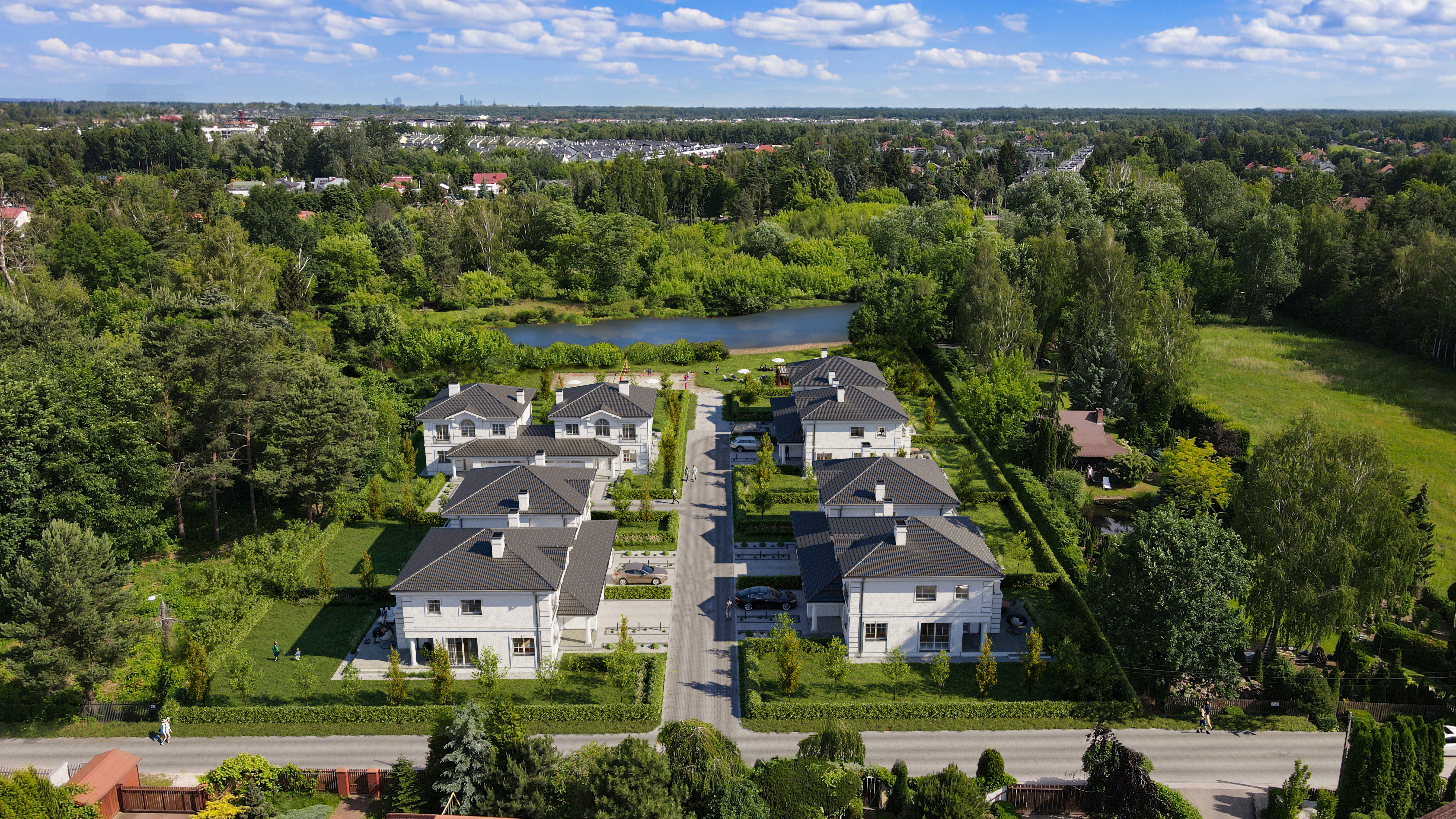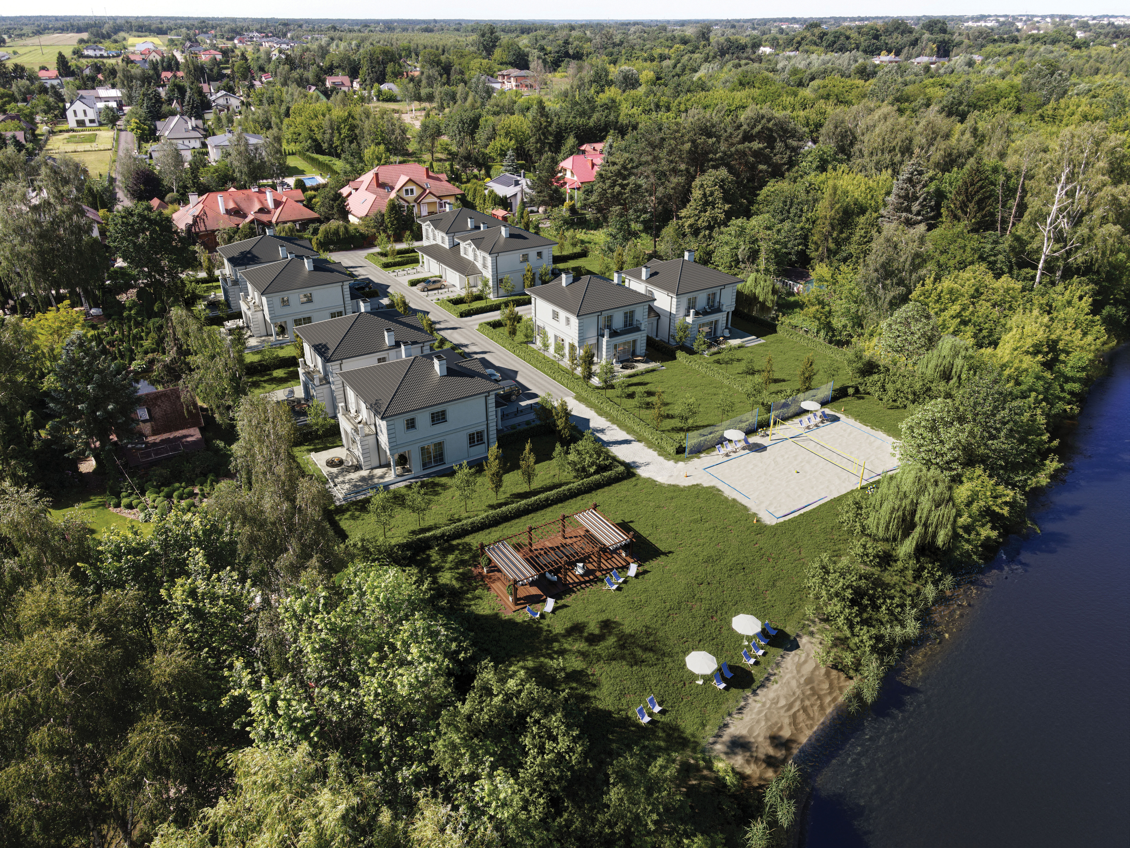 Surrounded by mature trees and refined green landscapes, in one of the most prestigious villa enclaves near Warsaw, a boutique collection of residences is being created for the most discerning clients. It is a place where architecture harmoniously blends with nature, offering a truly private retreat. The project is defined by timeless aesthetics - elegant, light façades and subtle architectural details create a cohesive and sophisticated composition. Large glazing opens the interiors to the garden and natural light, while ensuring privacy and a close connection to the surrounding greenery. The residences, with an area of approximately 170 m², are arranged over two floors, with a clear division between the living and private zones. A spacious living room with dining area and kitchen forms the heart of the home, complemented by comfortable bedrooms, walk-in wardrobes, and elegant bathrooms. Private gardens ranging from approximately 470 to 550 m² provide ample space for relaxation. The development has a boutique character - ultimately comprising just eight semi-detached villas, ensuring intimacy and exclusivity. The first phase is currently available, offering two buildings. A unique highlight is the direct proximity to the river, giving the setting an almost resort-like atmosphere. Residents also benefit from access to a private, gated green area designed for relaxation and activity, available exclusively to the community. High-quality materials and modern technologies respond to the needs of contemporary living - from energy-efficient solutions to provisions for smart home systems and infrastructure for electric vehicles. This is an offering for those seeking a lifestyle that combines elegance, comfort, and tranquility in an exceptional setting. If this exceptional opportunity meets your expectations, we invite you to enquire about current availability and further details.