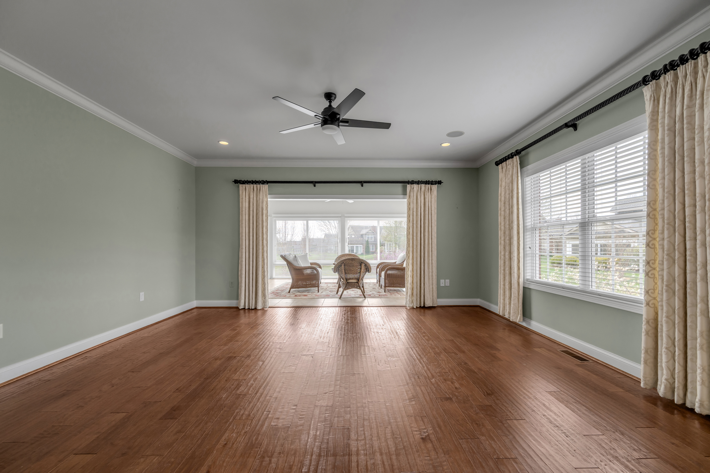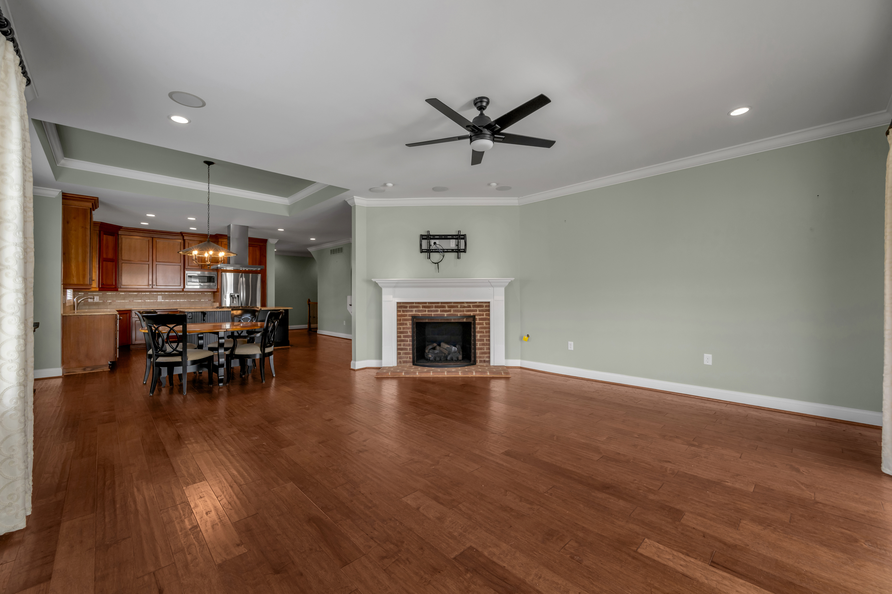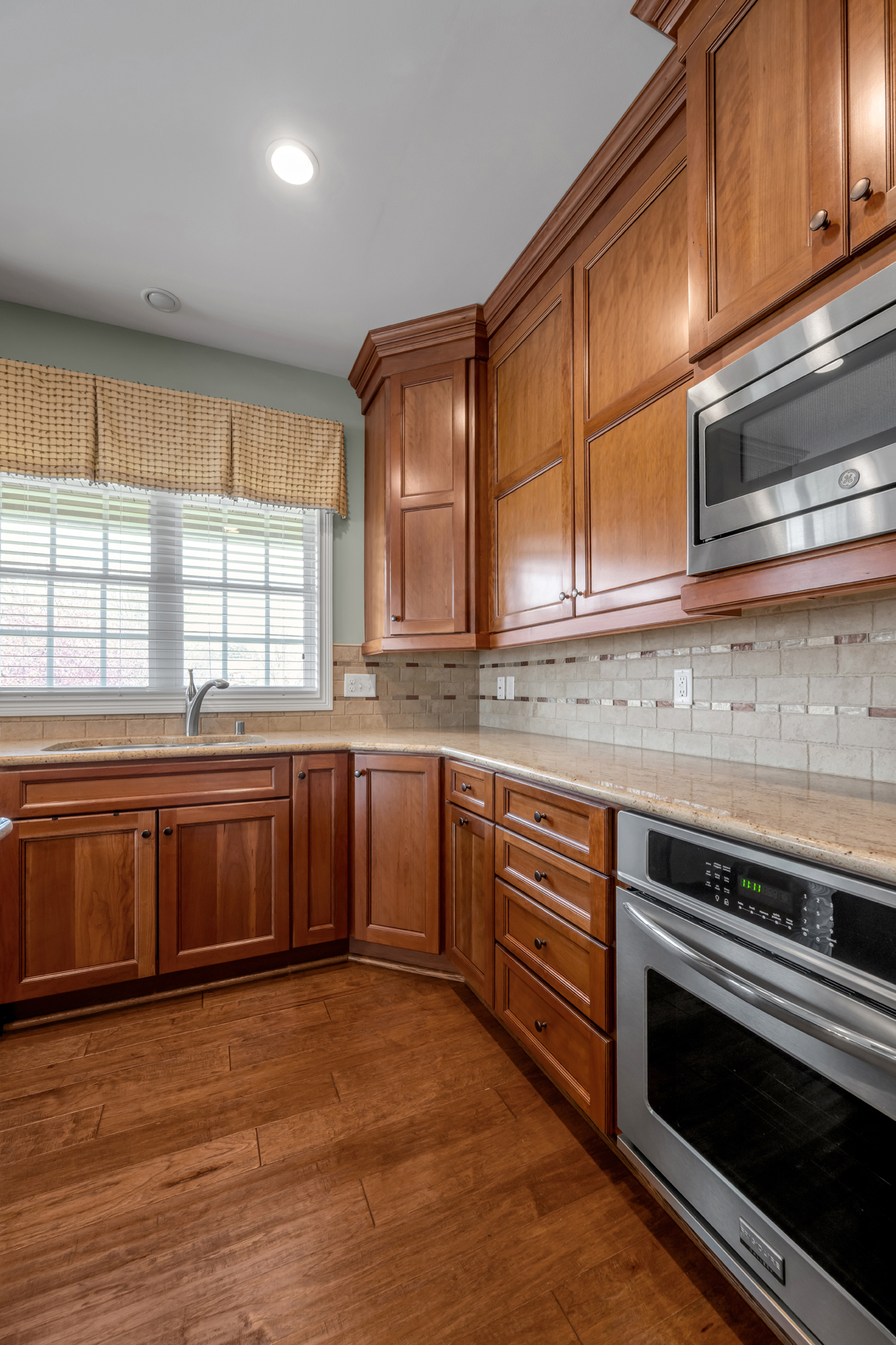 Discover exceptional condo living in this beautifully updated residence, tucked at the end of a private drive and surrounded by lush landscaping, green space, and easy access to the community pool. The setting offers a peaceful, low-maintenance lifestyle with a resort-like feel. Inside, freshly repainted interiors and hardwood floors set the tone. The main level features a flexible formal dining room—also ideal as a home office—and an open layout designed for both everyday living and entertaining. The kitchen is appointed with rich wood cabinetry, granite countertops, a gas range, and a generous island with bar seating, flowing seamlessly into the breakfast area, living room, and sunroom. The sunroom, with heated floors and expansive windows, brings in natural light and offers a comfortable space to relax year-round. The primary suite provides a quiet retreat with an en suite bath and walk-in closet. Upstairs, two spacious bedrooms each include their own en suite baths, offering comfort and privacy for guests. The walkout lower level adds even more living space with a family room, full bath, and a dedicated wine room, plus direct access to a covered patio with travertine tile. A rare highlight, the four-car garage includes a finished two-car bay ideal for a workshop, hobby space, or studio, with discreet access from a tiled driveway. Well-appointed and move-in ready, this home is designed for easy, lock-and-leave living without sacrificing space or quality.