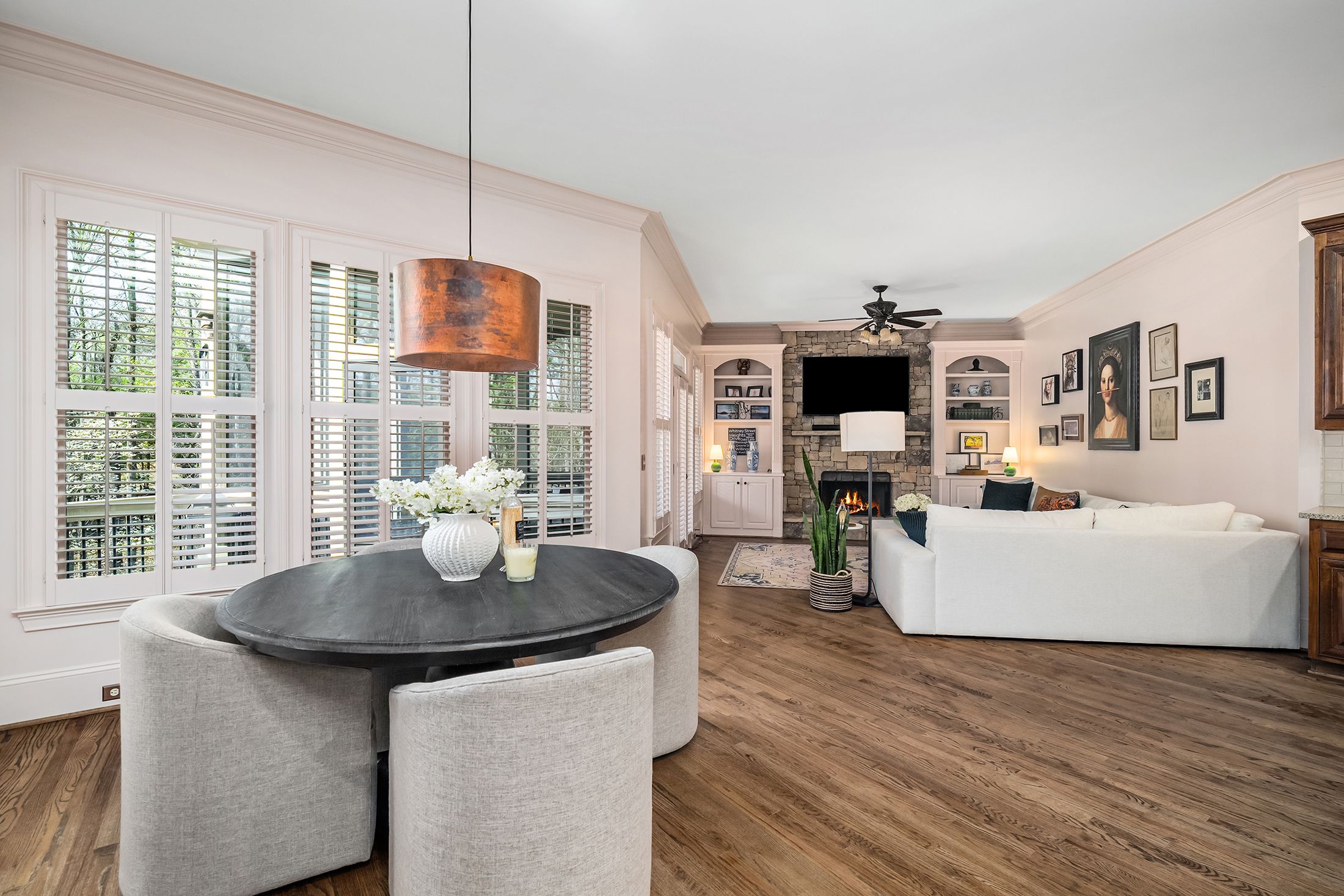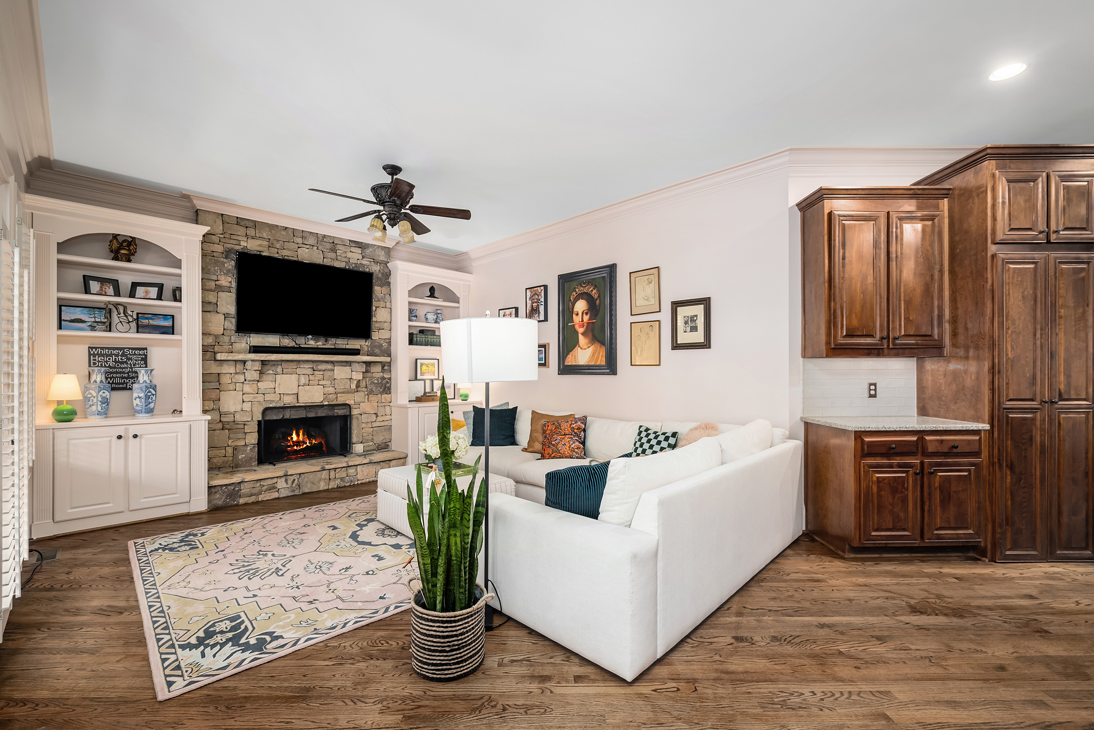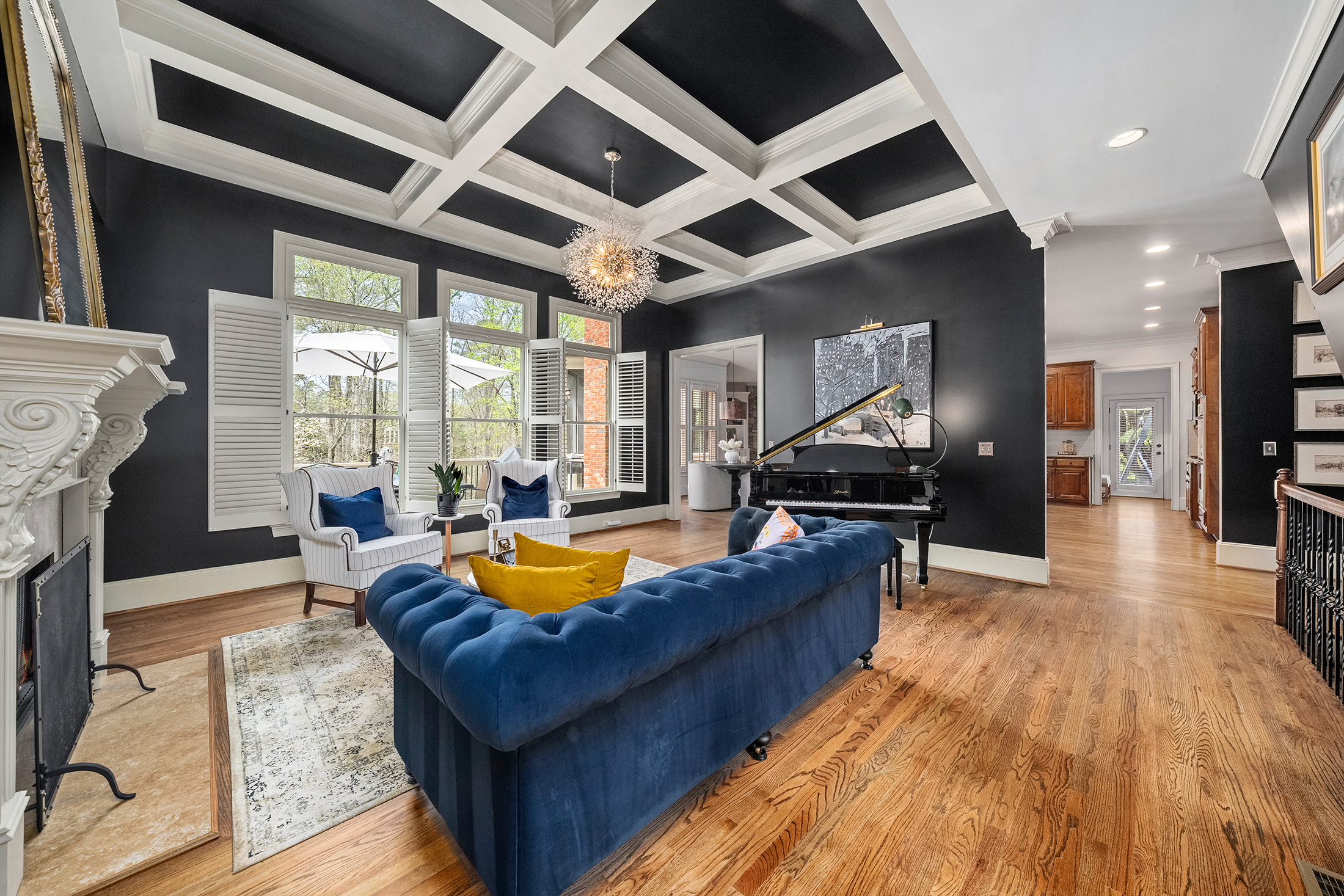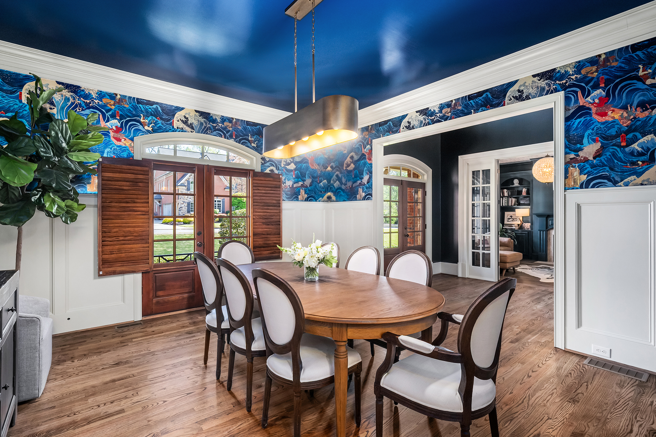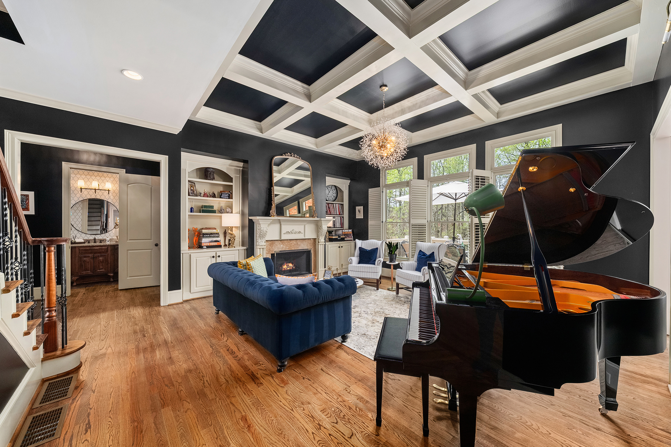 This meticulously maintained four-sided brick estate blends timeless architecture with elevated, magazine-worthy design. A striking exterior of brick, stone, and cedar accents welcomes you with a charming front porch and grand double French door entry, setting the tone for the sophistication found throughout. Inside, a dramatic two-story color-drenched foyer is flanked by a formal dining room and private study with a fireplace, while rich hardwood floors flow seamlessly across the main level and upstairs landing. Thoughtfully curated by a professional designer, the interiors showcase a bold yet refined aesthetic—featuring statement lighting, color-drenched walls, high-end designer wallpaper, and carefully selected finishes that create a “New York lounge” vibe rarely seen in suburban living. Every space has been intentionally elevated, blending warmth, drama, and style into a truly unforgettable home. Designed for both everyday living and exceptional entertaining, the home’s incredible floorplan offers effortless flow and versatility. The formal living room, anchored by a gas fireplace and a wall of windows, is both inviting and dramatic – there’s even room for a Baby Grand Piano. The gourmet kitchen serves as the heart of the home, complete with granite countertops, a massive center island, stainless steel gas appliances, a hidden walk-in pantry, and abundant prep space. A butler’s pantry connects seamlessly to the dining room, while the kitchen opens to a warm, design-forward family room with a wood-burning fireplace (with gas option) and a sunlit breakfast area. The main level also features a private guest suite with full bath, a mudroom with side entry, and a thoughtfully designed drop zone—each space enhanced by elevated finishes and cohesive designer touches. Upstairs, the luxurious owner’s suite is a true retreat, featuring a cozy sitting area with fireplace, a spa-inspired bath, and an expansive walk-in closet. The primary bedroom feels like you are walking into a five-star getaway. Additional generously sized bedrooms each offer ensuite baths, while a large bonus/media room with an impressive wall of windows provides flexible space for work or play—all tied together by curated design elements that continue throughout the upper level. Outdoor living is equally compelling, with an expansive deck overlooking a serene, park-like backyard framed by mature trees for complete privacy. The beautifully landscaped grounds feature gardenias, azaleas, camellias, roses, magnolias, and hydrangeas, all set against the calming backdrop of a gentle creek. A firepit area, newly fenced yard (and just painted), and generous green space create an ideal setting for both entertaining and quiet relaxation. The terrace level is where the home truly transforms into an entertainer’s dream. With higher ceilings rarely found in similar homes, this level boasts a striking, designer-inspired ambiance complete with a custom bar, wine cellar, media lounge, game areas, private gym, full bath, and abundant storage—all infused with the same bold, eclectic style that defines the rest of the home. It’s a space that feels straight out of a high-end downtown establishment, offering a one-of-a-kind experience for hosting and everyday enjoyment. Located on a quiet street within an active HOA community offering a pool, clubhouse, tennis courts, playground, walking trails, dog park, and lake, this home also enjoys close proximity to top-rated schools including Birmingham Falls Elementary, Northwestern Middle, and Milton High. With incredible bones, an exceptional layout, and truly distinctive designer finishes throughout, this residence offers a rare opportunity to own a home that is as stylish as it is functional. Welcome home!