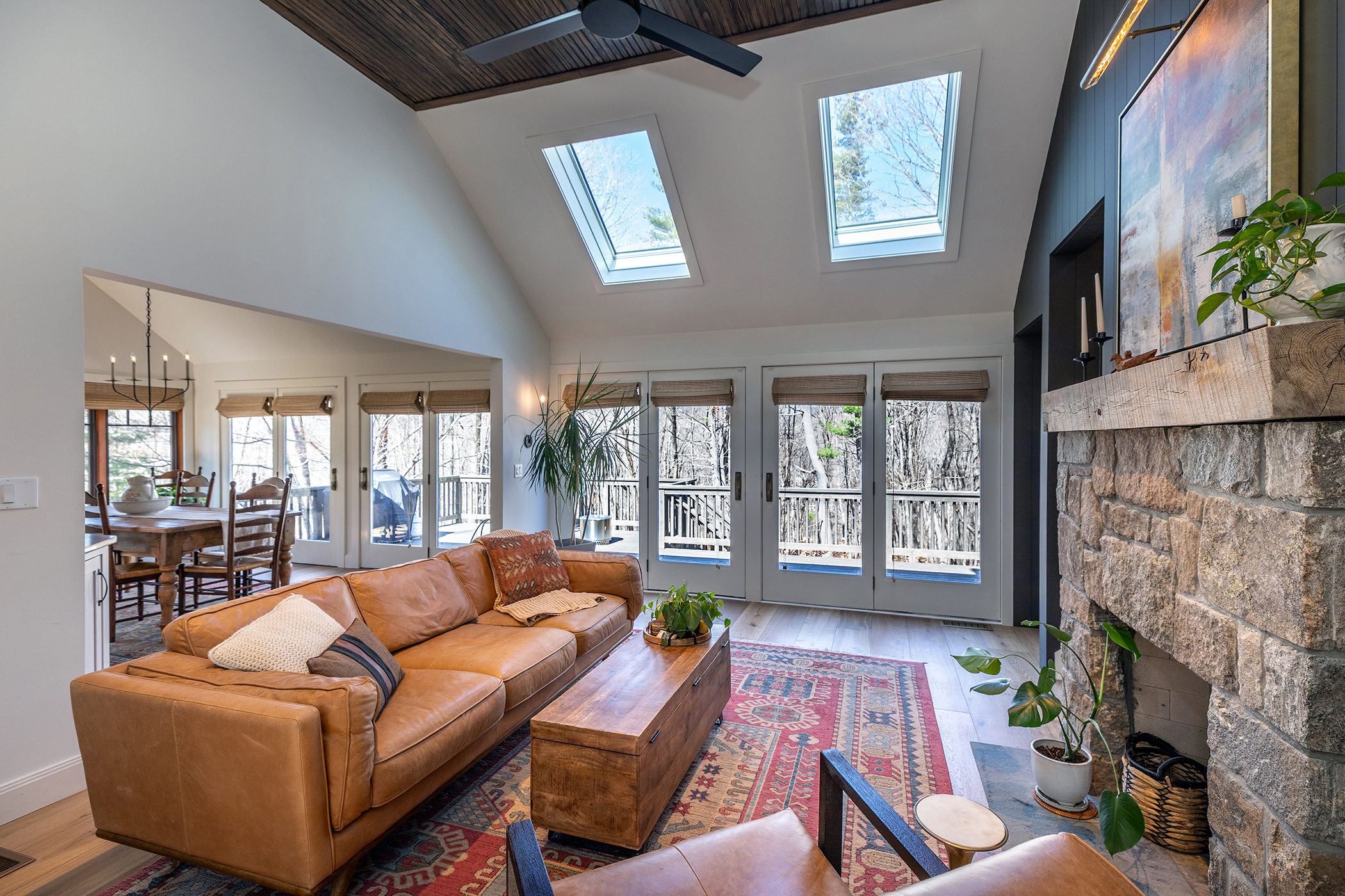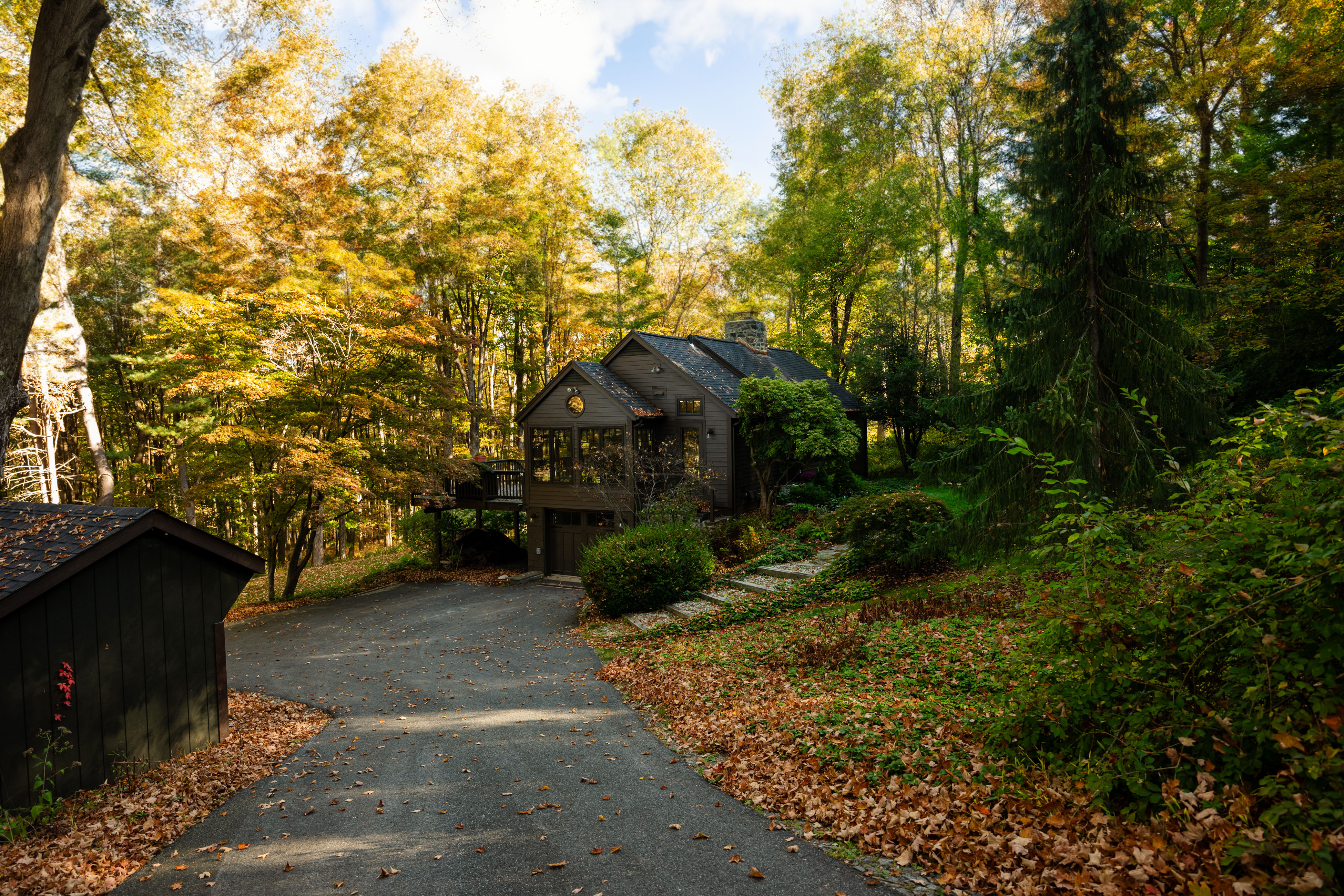 Welcome to this impeccably remodeled, three-bedroom, three-bath turn-key home, boasting architectural spaces, trendy colors and sophisticated finishes. Custom millwork and wide plank hardwood floors add tons of style throughout. Designed with a flexible layout and generous entertaining spaces featuring walls of windows, vaulted ceilings and a wood burning stone fireplace in the living room. The kitchen is a chef's dream, with high end appliances and opens directly to the dining area. A bonus loft space is 'cute perfection' and could easily be used for guests / home office / den / arts & crafts. Each of the 3 bathrooms have been thoughtfully and meticulously presented with gorgeous, stylish tiling. The 3 bedrooms have generous closets, naturally. A huge deck is perfect for al fresco dining overlooking a serene, nature-filled yard filled with landscaped plantings. The garage is connected to the basement with ample storage. Nestled close to the tranquil Timber Trails and offering access to Sherman's town beach on Candlewood Lake, this home is a perfect escape. Sherman's quaint town center is nearby with shops, sports fields, tennis courts etc. Commuting is a breeze with easy access to Rte 37 placing you just 90 minutes from Manhattan or 20 mins to Metro North Trains. This is a MUST SEE property!
