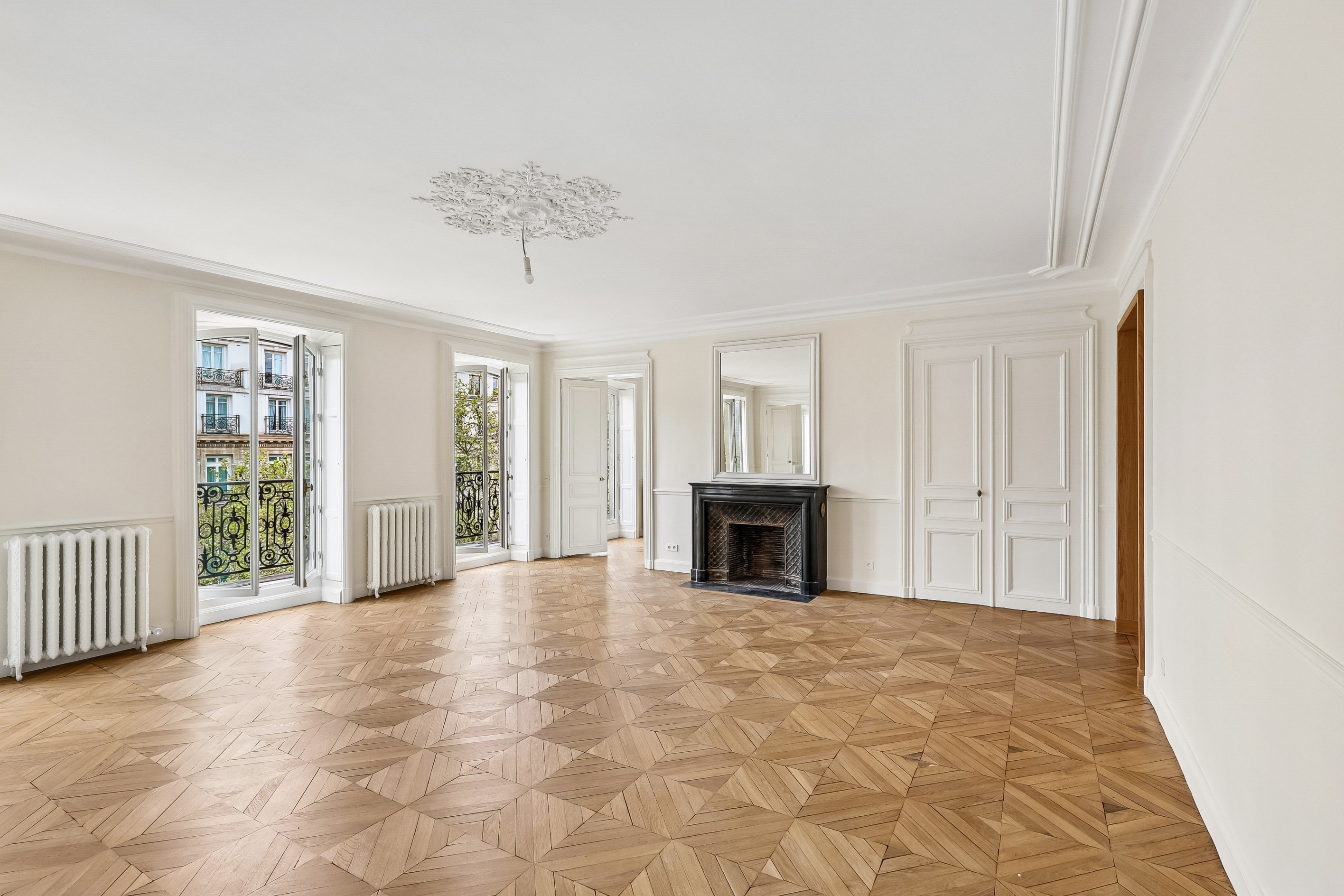 On Boulevard Malesherbes, near Place de la Madeleine, in a beautiful 1860s building with a concierge, on the 4th floor with an elevator, a 245-square-meter dual-aspect apartment, fully renovated by an architect. Spacious living areas, three or four bedrooms, a separate, fully fitted and equipped kitchen, and a wrap-around balcony. This apartment features generous proportions with 2.90-meter-high ceilings, combining the charm of the old—molding, fireplaces—with modern comforts (air conditioning), a pleasant layout, and a sought-after location in the heart of the 8th arrondissement. Includes a cellar.