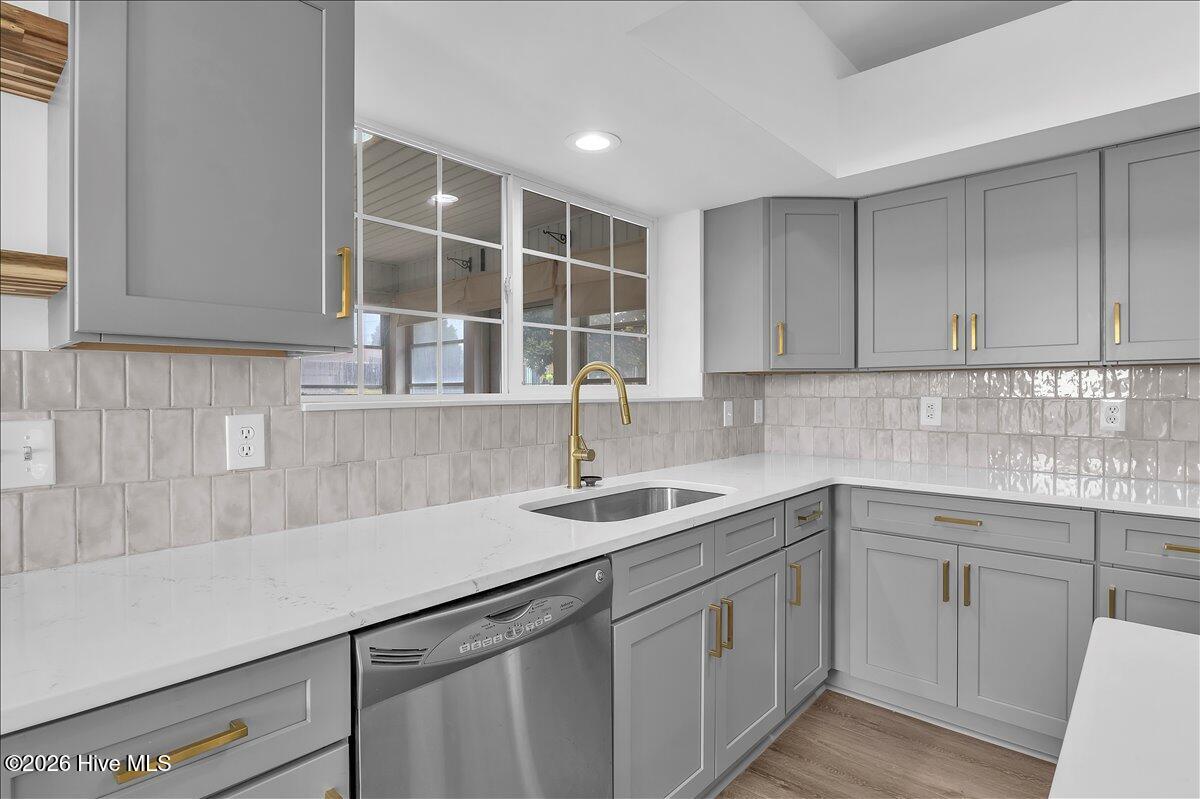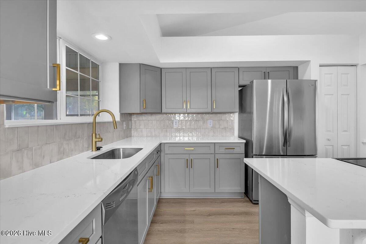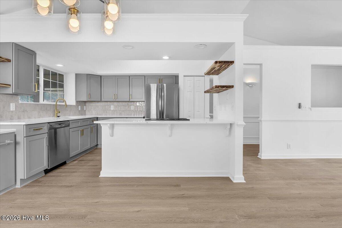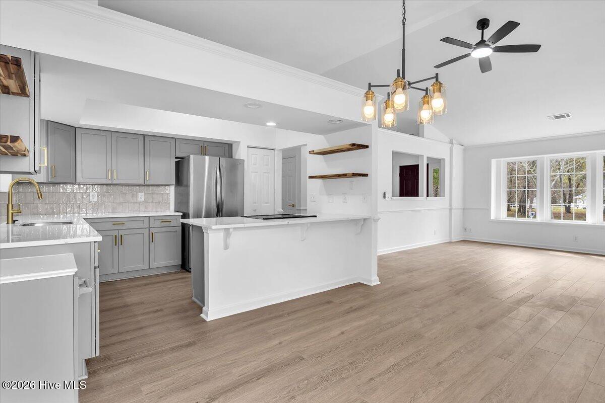 Come see this updated home in great location in Lake Tree Shores, right in the heart of Ocean Isle Beach! Home is conveniently located near restaurants, shopping, and all that Ocean Isle Beach has to offer. Open and spacious one-level floorplan has vaulted ceilings, open kitchen with breakfast bar and flat-top range, Master suite with walk in closet and shower. Additional oversized rear sun-room which is not counted in sq footage. 3rd Bedroom is currently set up as an office with built in bookshelves and French door, and would be perfect for a home office or 3rd bedroom as well. Home has many updates including new roof, all wood upgraded cabinetry, floating shelves, quartz countertops, and LVP flooring throughout. Enjoy the relaxing covered front porch, attached 2 car garage and community pool as well! At this price it won't last long, so come see before it's gone! Owner/agent