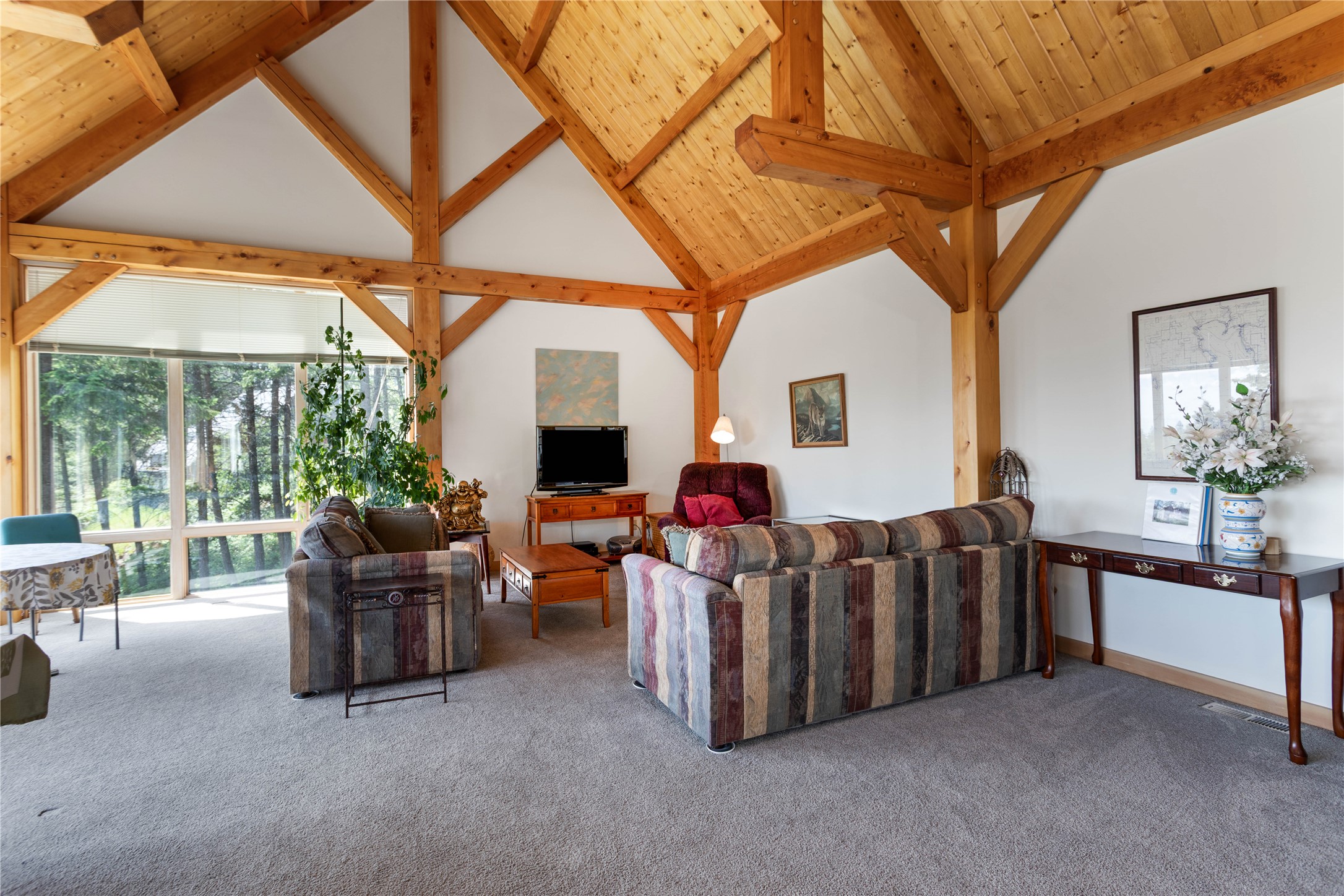 Welcome to 100 Deep Bay Drive in Lakeside, Montana, an extraordinary waterfront retreat set on 3.41 acres with 318 feet of beautiful shoreline along Flathead Lake. This nearly 3,200 square-foot home offers 4 bedrooms and 2.5 bathrooms, thoughtfully designed to capture both comfort and the surrounding natural beauty. Featuring striking timber peg architecture, the home showcases timeless Montana craftsmanship with warm wood tones and inviting living spaces. Expansive windows frame sweeping lake and mountain views, filling the home with natural light and creating a seamless connection to the outdoors. The property's outdoor setting is equally impressive. With 318 feet of private waterfront, your own dock, and an additional community boat slip, this is a rare opportunity to fully enjoy lakefront living whether boating, swimming, or relaxing along the shore. Located in the desirable Deep Bay community, this property offers space and convenience, just minutes from Lakeside and within easy reach of Polson and the greater Flathead Valley. A true Montana retreat, this property combines acreage, exceptional waterfront, and breathtaking views in one remarkable offering.