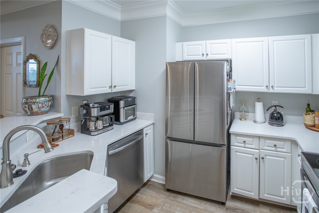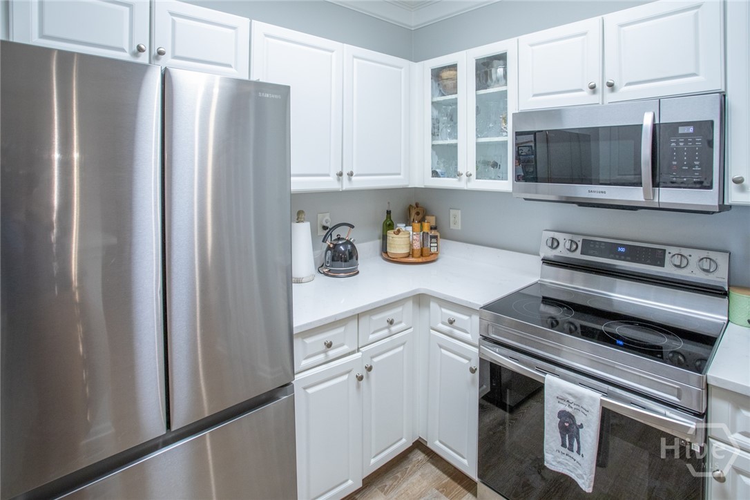 Beautiful condo centrally located on Whitemarsh Island at the Merritt, close to Tybee, downtown, you name it. Enjoy coastal living at its best from the lovely screen porch with private, marsh views. 3 Bedrooms, 2 Baths with new hardwood floors throughout, HVAC system, light fixtures, kitchen and bath countertops, appliances and hardware. The open floor plan concept and natural light makes entertaining easy.. This gated community comes with a dog park, billiards room, beautiful pool and fountains throughout the property, business center and much more. The grilling station and stylish clubhouse make hosting a meeting or just a gathering with friends effortless. The Merritt is close to schools, grocery stores, shopping, public boat launch and YMCA and its wonderful walking trail. Prime Location!
