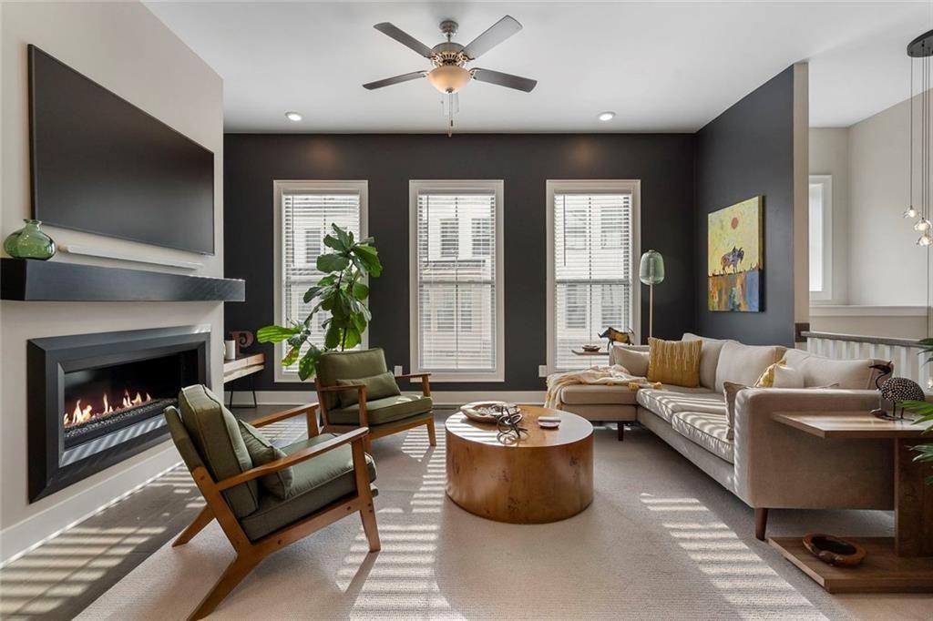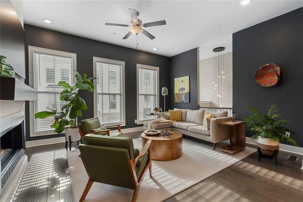 More than a beautiful home in a perfect location - it's an outdoor lifestyle! Indulge in this exquisite three-story townhome, perfectly positioned just under three-quarters of a mile from historic downtown Woodstock - a charming, walkable path shaded by mature tree-lined landscaping - to the heart of the city. It offers a seamless blend of nature, convenience, entertainment, and outdoor activities for the entire family. Enjoy yoga, volleyball, pickleball, disc golf, walking paths, a dog park, fitness stations, basketball, tennis, and a 110-acre park with trails for hiking and mountain biking, fishing, canoeing, kayaking, and a youth/amateur inline roller hockey league. The Park at City Center amphitheater hosts free summer concerts and fitness classes. All activities are golf cart accessible, delivering a truly lifestyle-driven experience. This home is designed for both elegance and functionality. A striking split staircase leads to an expansive open-concept main level, where soaring 10-foot ceilings and walls of natural light create an airy, refined ambiance. The inviting living room is anchored by a modern and sleek linear fireplace adding warmth and sophistication. At the center, the gourmet kitchen is a statement in style and performance - featuring an oversized island, premium stainless steel appliances, floor-to-ceiling soft-close cabinetry with custom drawer inserts, and a bespoke coffee bar, perfect for intimate mornings or elevated entertaining. The entry level includes a versatile bonus suite ideal for a private office, fitness studio, or guest retreat. The spacious two-car garage offers a smart home opener, storage alcove, and electric car charger, and the home is equipped with an instant hot water recirculation system and smart Wi-Fi thermostats. The front entry features a smart door lock and video doorbell. Upstairs, the oversized primary suite serves as a serene sanctuary with a generous walk-in closet and a spa-inspired bath featuring dual vanities and an expansive walk-in shower. The well-appointed second & third bedrooms include a spacious walk-in closet. Outdoor living is thoughtfully integrated with a private deck off the kitchen and a covered, fenced patio below - perfect for relaxing or entertaining with ease. Lastly, enhance your purchase with a fully furnished, turnkey package for $14,900! The rental cap has currently been reached, with an estimated waitlist of approximately 1-2 years.