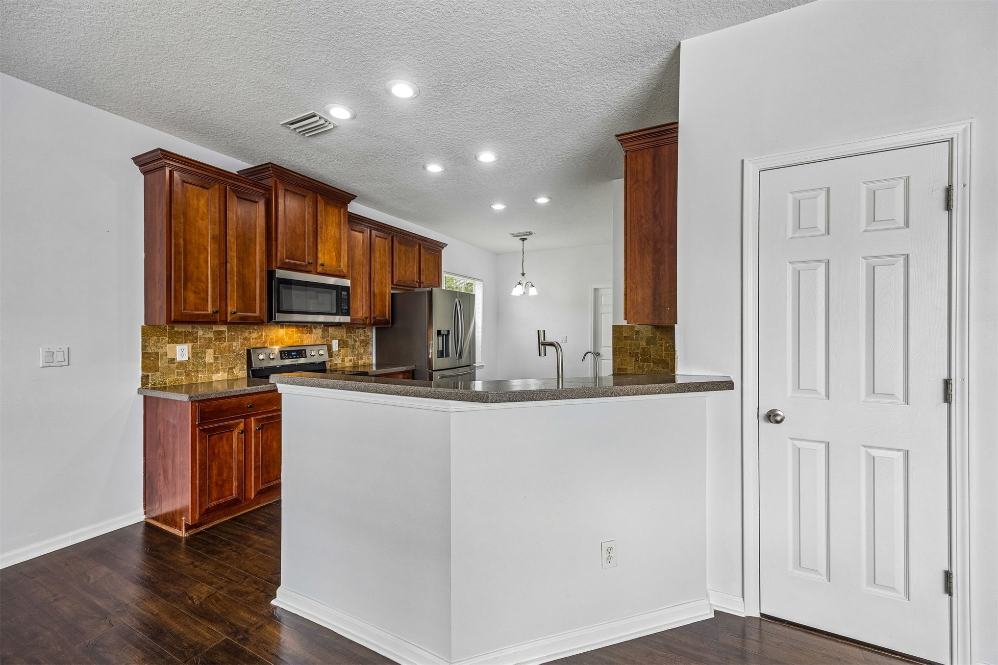 Welcome to this charming two-story home in Heron Isles featuring 3 bedrooms and 2.5 baths with a fully fenced backyard overlooking a peaceful pond. Recent updates include a newer roof, AC, and flooring. The kitchen offers solid surface countertops, 42 upper cabinets, GE appliances, tile backsplash, and durable vinyl flooring. Enjoy cozy evenings by the gas fireplace, along with added conveniences like an irrigation system with shallow well and water softener. The spacious primary suite includes a jetted tub, walk-in shower, double sinks, and raised vanities. Ideally located just 10 minutes from Amelia Island and close to shopping, dining, and recreation, this home offers both comfort and convenience.