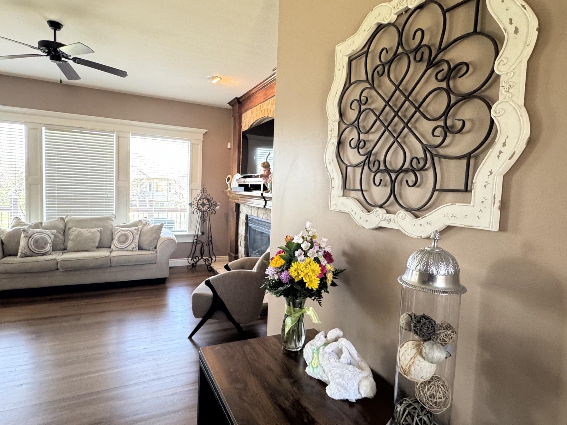 This remarkable former model home, celebrated with the Pick of Parade awards for both Kitchen Design and Master Suite Design, is ready to impress you. The kitchen is a chef's dream, featuring granite countertops, a spacious island with ample workspace, a walk-in pantry, and stainless-steel appliances, including a gas stove. Natural light floods the home, highlighting the drop zone and walk-through laundry that conveniently leads to the master bedroom closet. The master bath offers a luxurious retreat with a walk-in shower, Jacuzzi tub, and double vanities. The walk-out basement is perfect for entertaining, boasting a spacious recreation room, gas fireplace with built-in bookshelves, a wet bar, and two additional bedrooms with a full bath. The home is equipped with surround sound and a security system for your convenience. Step outside to enjoy the composite deck, well, sprinkler system, and fenced backyard. Other notable features include Hickory Wood floors throughout the main floor, an electric car charger in the garage, Leaf Filter brand gutter guards, and an aluminum fenced backyard. The beautiful landscaping includes five Canada Red Choke Cherry trees, an Eastern Redbud, new shrubs and plants in the front and back, landscaping bricks, and poured cement edging in the backyard. This home is truly move-in ready!