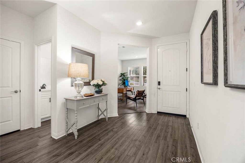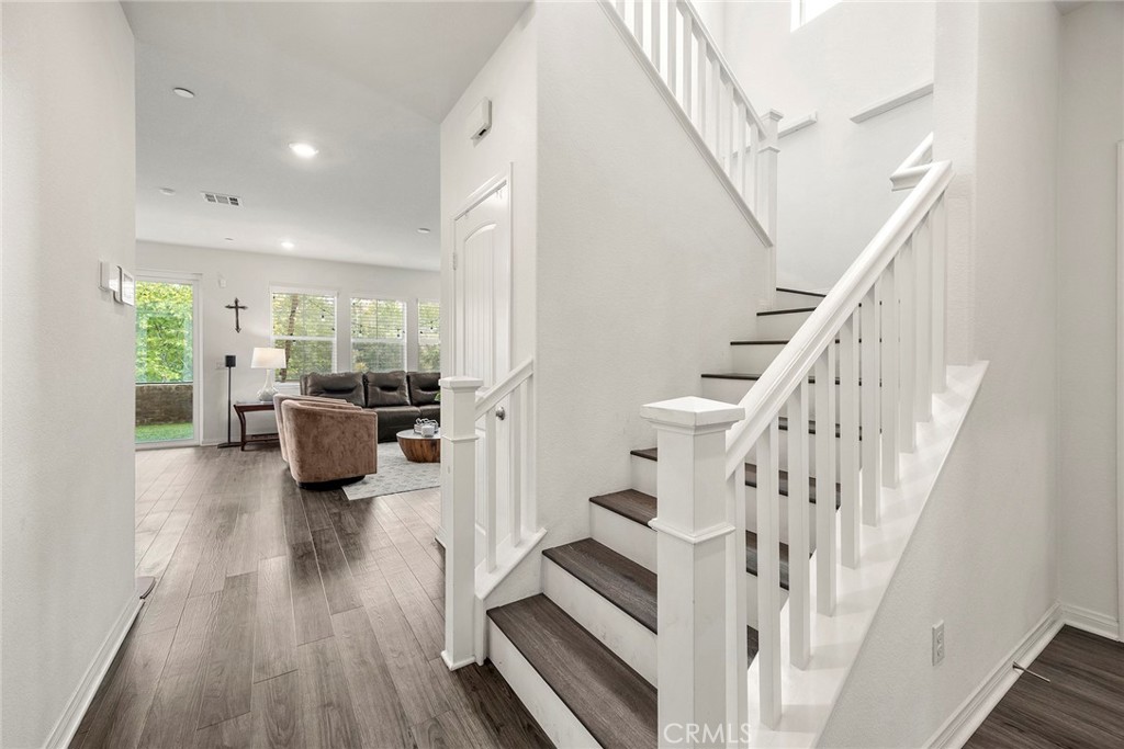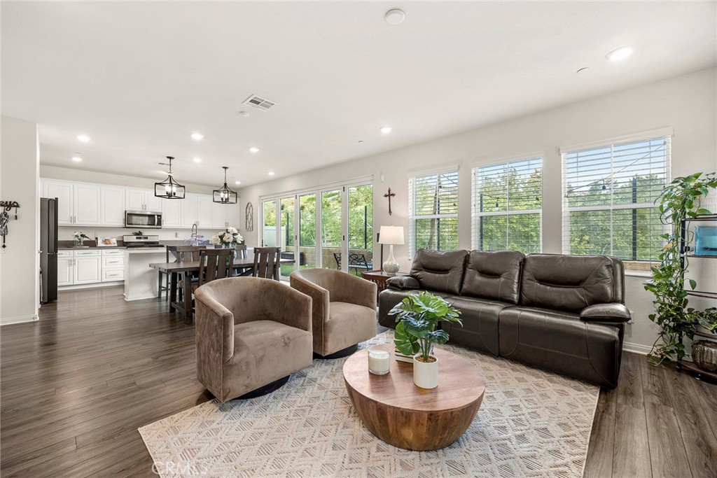 Welcome to Alton Drive, a charming two-story home designed to provide both comfort and flexibility. Your forever home features three bedrooms, along with a versatile downstairs room that can easily transform into a fourth bedroom, office, or workout space as needed. A paid-off solar system ensures ongoing energy savings and peace of mind for the homeowner. Inside, the family room provides a private view of the picturesque hills, creating a tranquil retreat for relaxation. Expansive pocket sliding glass doors open to blend indoor and outdoor living, making it effortless to host summer BBQs or special occasions with friends. These doors seamlessly tuck away, maximizing the connection to the patio and backyard. Mornings can begin with coffee on the patio, while evenings offer the perfect setting to unwind with a chilled beverage at sunset. Situated within the Terramor guard-gated community, this home is surrounded by amenities that foster a sense of togetherness among residents. Access to refreshing pools, relaxing spas, and cozy lounge areas creates opportunities for friendly gatherings. BBQ and picnic spots are available throughout the community, offering wonderful settings for sharing meals and making memories. Residents can also explore miles of walking and biking trails, connecting with nature and neighbors alike. The community includes dog parks, further enhancing outdoor enjoyment for pet owners. This is more than just a house - it is a place where you can truly belong.