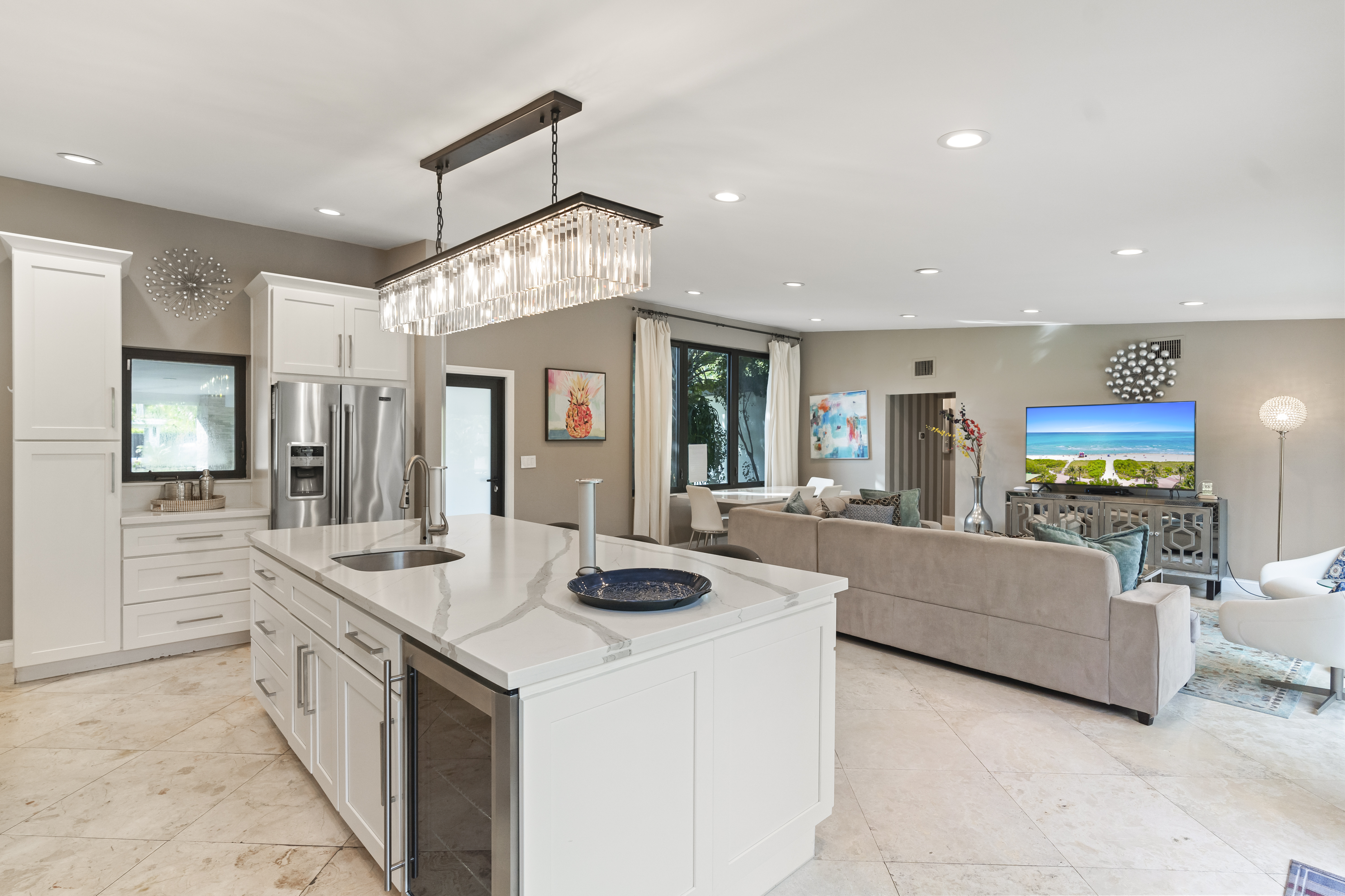 PRICED TO SELL !! Experience the ultimate mid-century modern lifestyle in this meticulously renovated waterfront gem. Currently operating as a permitted Airbnb, this "turn-key" residence seamlessly blends 1950s character with contemporary luxury. The interior boasts vaulted ceilings, exquisite travertine flooring, and a chef's kitchen featuring premium stainless steel appliances. With a newer roof, "Eurotech" impact windows, and a brand-new dock, this smart home is as secure as it is stylish. Sold fully furnished and located just minutes from the vibrant energy of Wilton Drive, it's a perfect sanctuary for those who value both design and convenience.