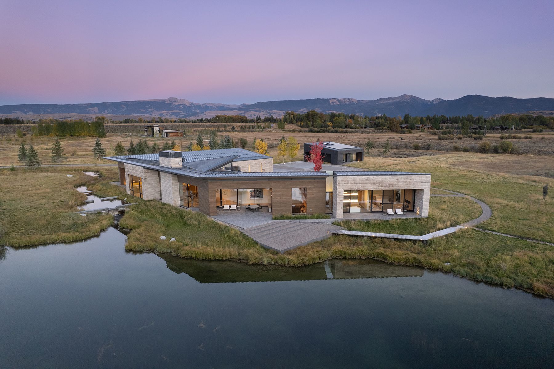 Set in the exquisite Bar B Bar Ranch, this 36-acre property boasts magnificent Grand Teton and Sleeping Indian views, live water, and wonderful privacy. The quaint homestead cabin adds historic charm to the property. A horse barn and two loafing sheds add a touch of western flair and may accommodate horses.Designed by Carney Logan Burke Architects and built by Peak Builders, this 7,587 sf custom home is a showcase of state-of-the-art finishes, fixtures, and systems. Exceptional construction and engineering are behind the remarkable walls of glass. Case optical glass from Germany and Poland is of the highest quality glass found in windows. Heated and cooled by a geothermal system, the residence complements its surroundings with its low profile, stone walls, and minimalistic design.The 1,172 sf garage has space for three vehicles. A snowmelt system in the parking area reduces the need for winter plowing. A separate 830 square foot, one-bedroom, one-bathroom guest house provides comfortable accommodations for family or guests and boasts solar energy. Discover the peaceful beauty of this exceptional Bar B Bar Ranch property. From the mournful bugle of a bull elk gathering his harem to the soft sounds of water, and from the melodious song of birds to the gentle rustling of leaves, the property invites you to experience Nature the Jackson Hole way.