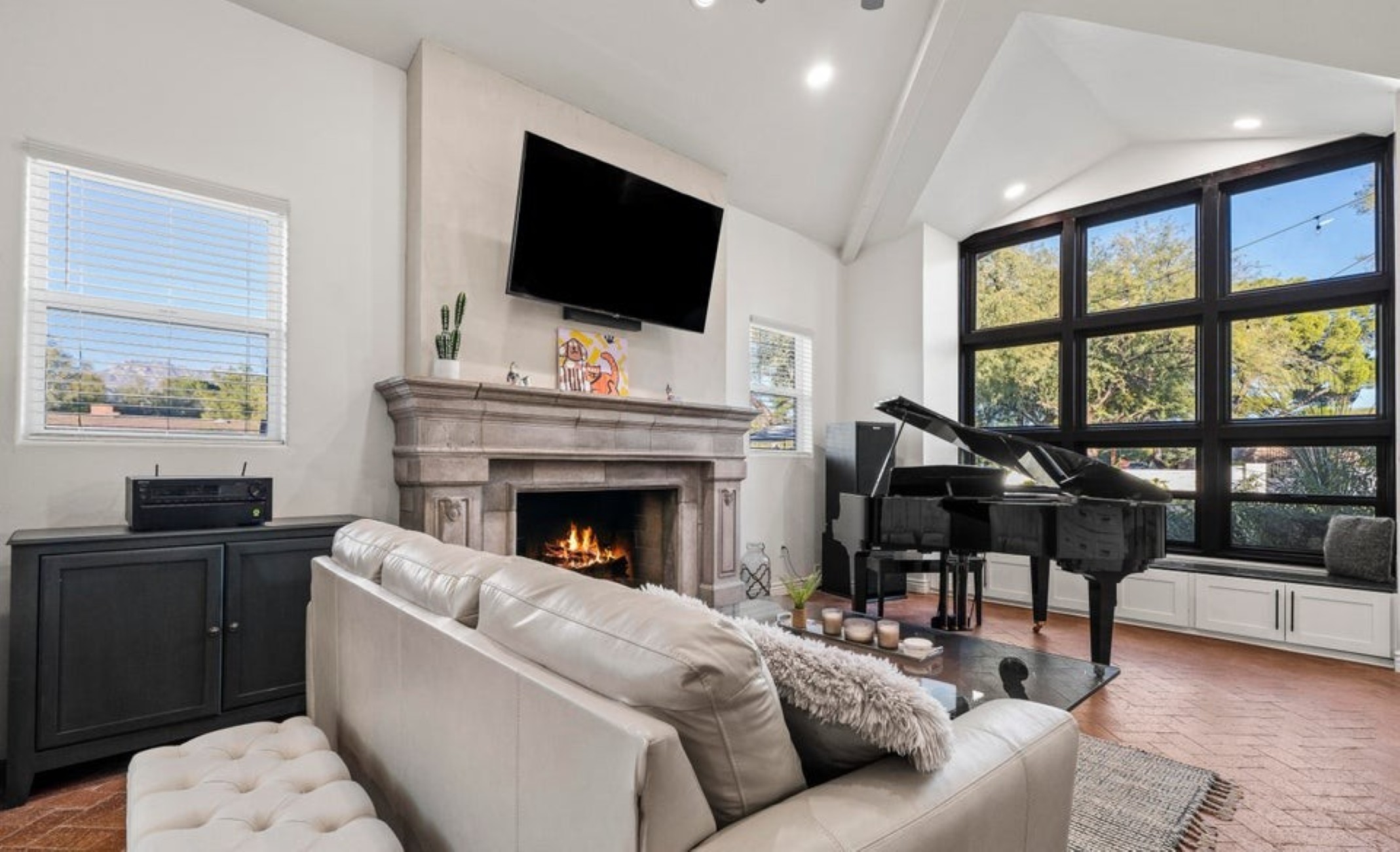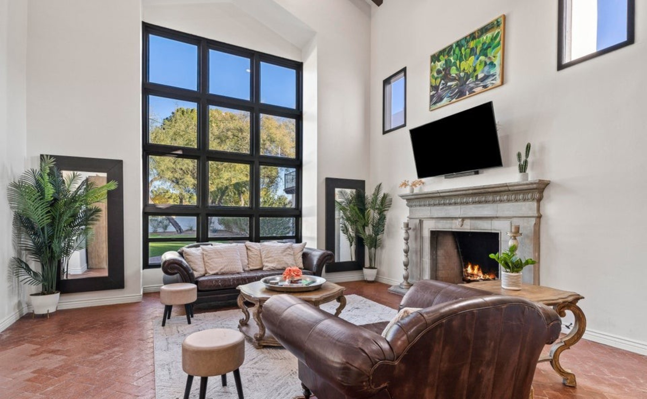 This Stunning & totally remodeled sophisticated contemporary style home is truly breathtaking & situated on a beautiful & professionally landscaped corner homesite in prestigious guard gated Tucson Country Club. From the moment you enter this exceptional home with over 4118 sq. ft you will fall in love with the light & open living area featuring a dramatic living room with 20 ft. high ceilings, incredible floor to ceiling windows, exquisite fireplace, formal dining area, gourmet island kitchen with white cabinets, spacious island with quartz countertops, the finest stainless steel appliances, including Wolf 6 burner gas range with griddle, Wolf double ovens with convection, Wolf microwave, Sub Zero Refrigerator/freezer, 2 dishwashers , extra prep sink, walk in pantry, lovely breakfast nook, family room with fireplace, gorgeous brick floors, 4 bedrooms & a study or 5 bedrooms & 5 1/2 baths in the main house, each with quartz countertops & designer tile flooring. The primary suite is a private oasis with fireplace , luxurious bath, quartz countertops, double sinks, soaking tub, fabulous shower with designer tile, chromotherapy, large walk -in closet with an extra stackable washer & dryer & French doors to a private covered patio. The laundry room includes a washer, dryer, sink & there is an oversized 2 car garage with storage rooms. The one of a kind guest house with 1352 sq. ft. features a Great Room with high ceilings, large picture windows, floor to ceiling bookcases, lovely kitchen, 2 bedrooms, 2 baths, covered patio and upstairs balcony. Enjoy gracious outdoor living with a spool, covered ramada with barbecue, lounging areas, artificial turf on the side yard & real grass lawn in the front yard, reclaimed water for the landscaping, concrete tile roof, serene privacy and mountain views!!!!Seller is a Licensed Real Estate Agent in the State of Arizona.
