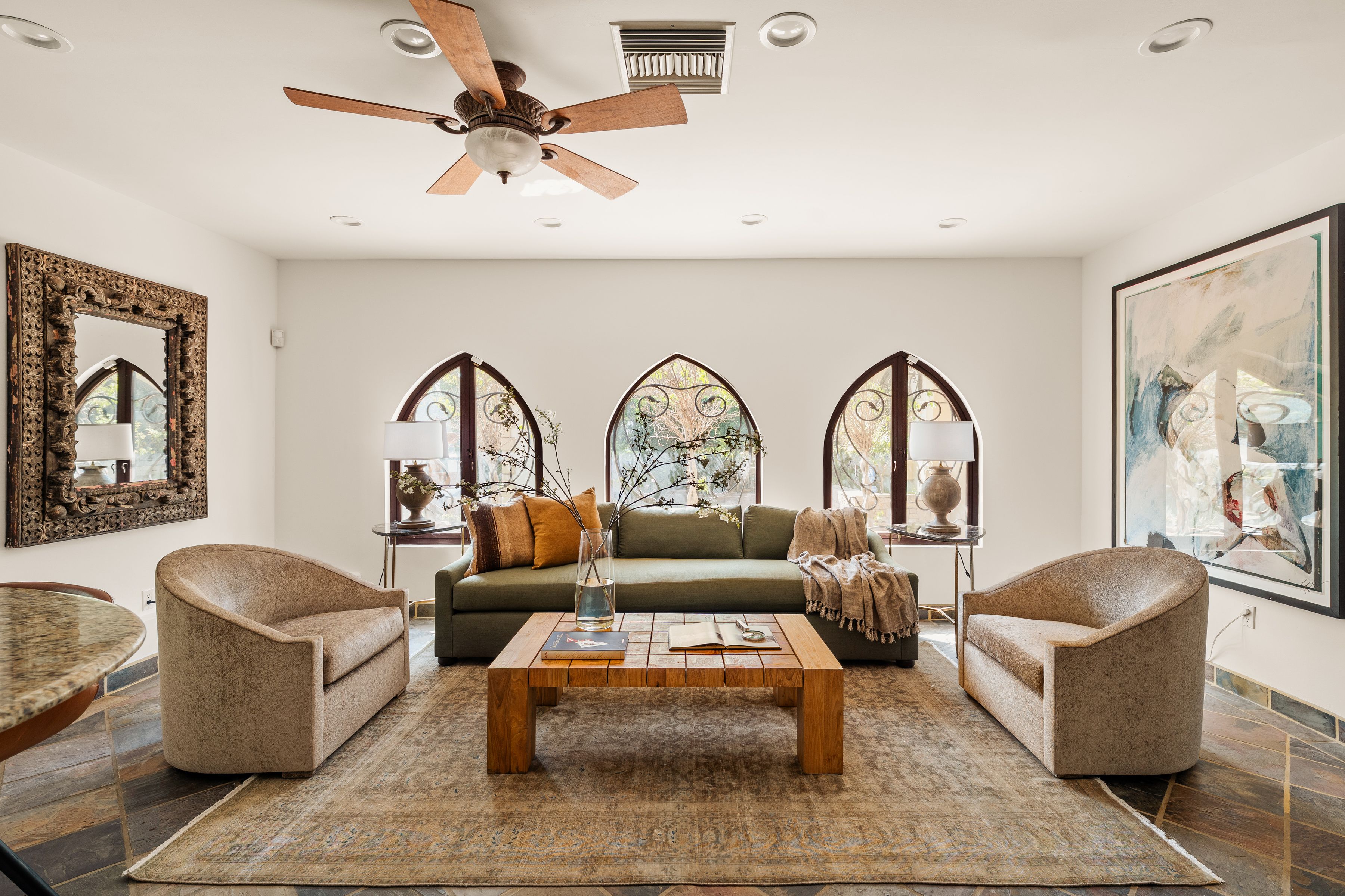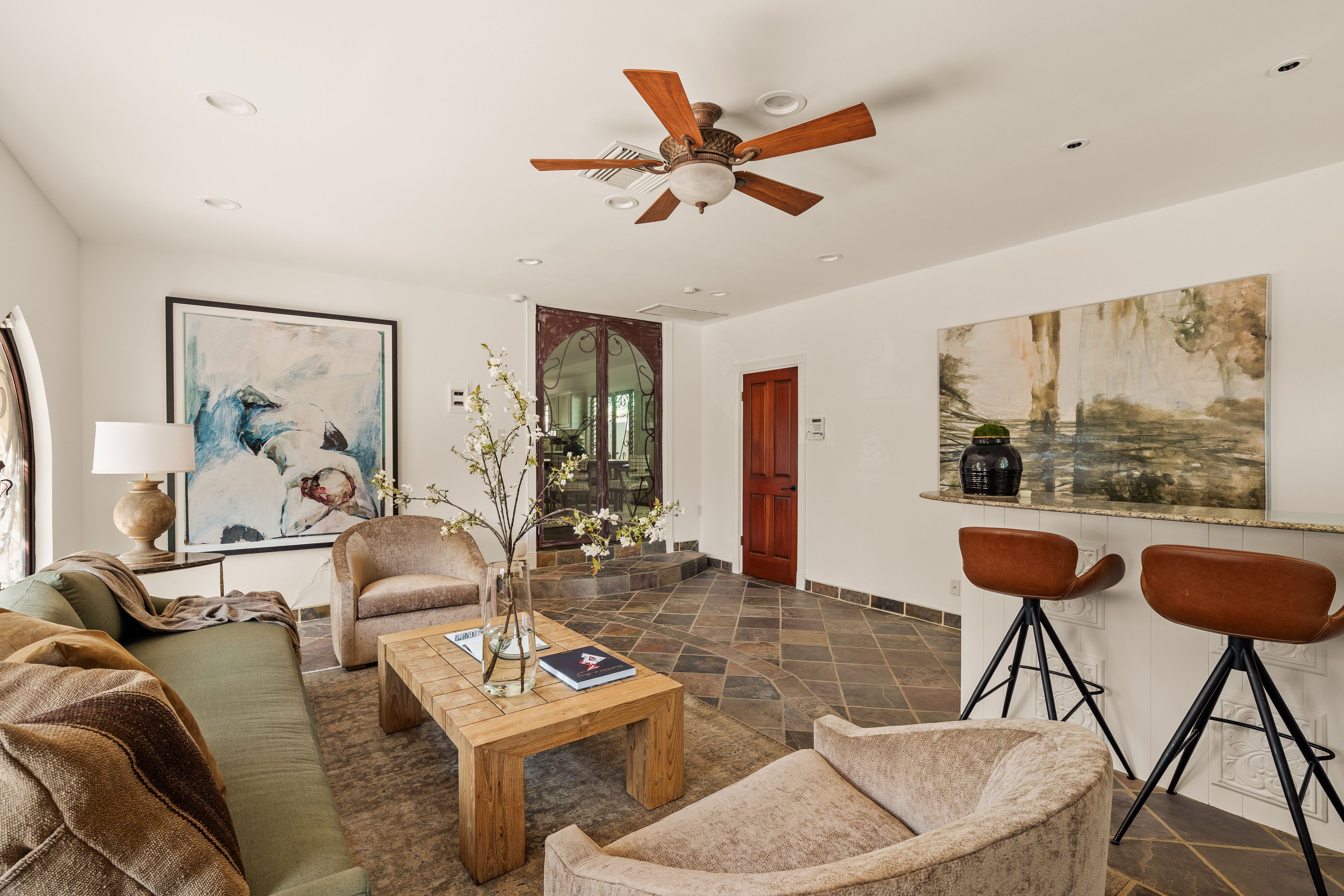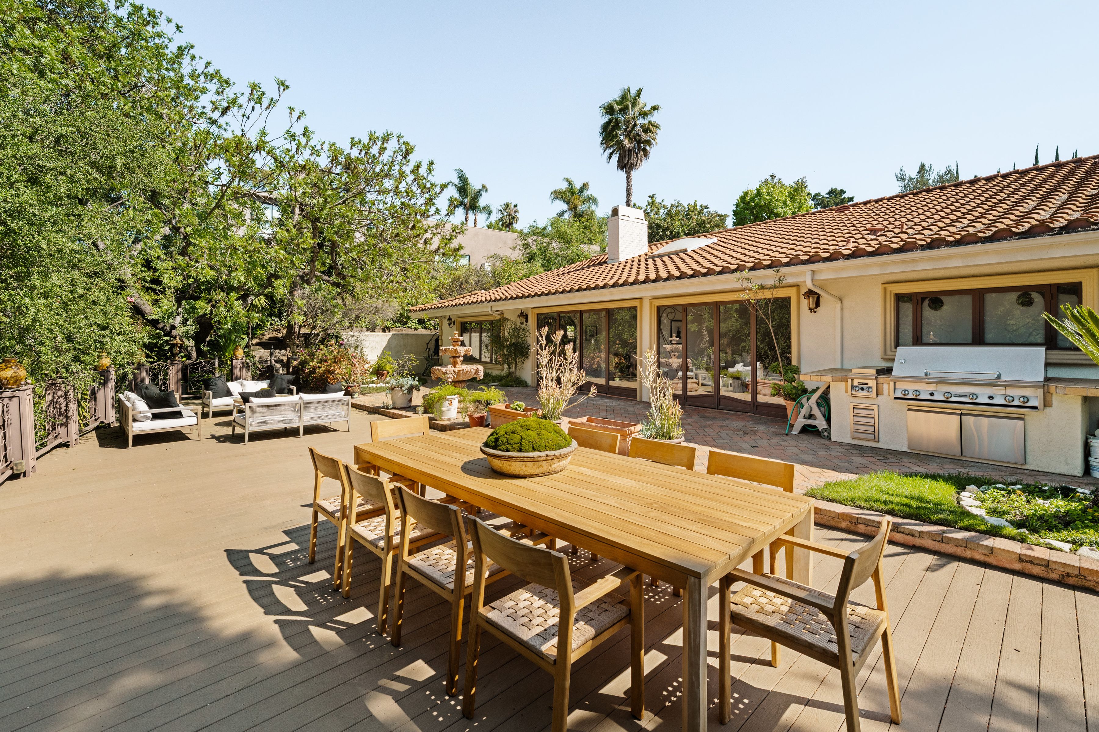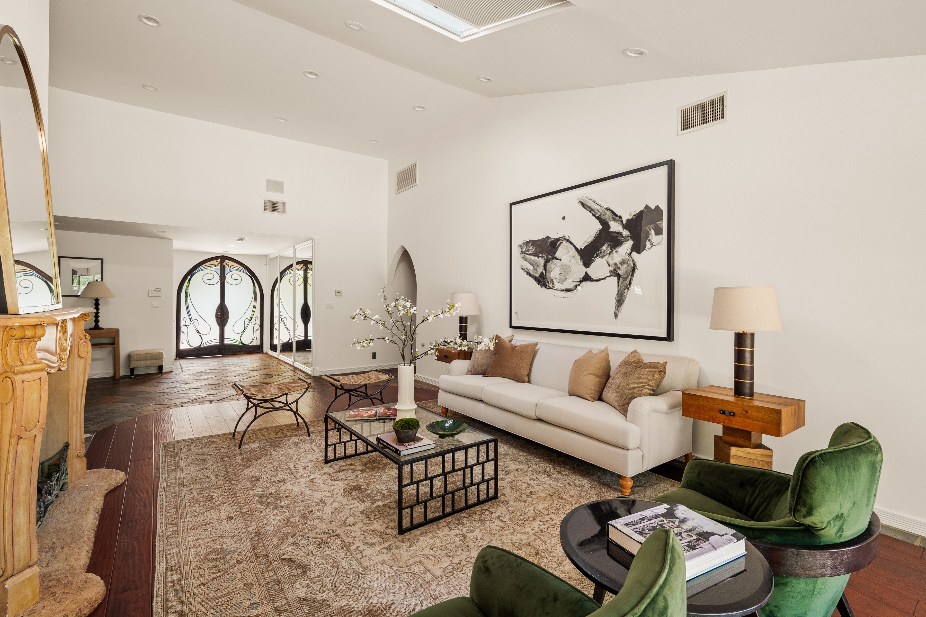 Sited in one of Studio City's most desirable neighborhoods south of Ventura Boulevard, this Mediterranean inspired residence blends timeless character with a thoughtfully designed floor plan and an impressive sense of scale. A grand entry opens to a dramatic living room with soaring ceilings and abundant natural light, creating an immediate sense of openness and warmth. The home offers a seamless flow between living spaces, with a well-appointed kitchen and dining area that connect effortlessly to a versatile den, ideal as a media room, lounge, or additional gathering space. A separate formal dining room with a built-in bar, offers a refined setting for hosting. The layout features 4 generously sized bedrooms, including one currently configured as a custom office, along with well-appointed bathrooms. The living room opens to a private, greenery-filled backyard with multiple seating areas, an elevated deck, and built-in barbecue, creating an inviting setting for outdoor dining and entertaining. Ideally located just moments from the shops, restaurants, and cafes along Ventura Boulevard, and within the highly sought-after Carpenter Community Charter School district, the home offers a rare blend of space, privacy, and convenience in one of Studio City's most desirable neighborhoods - The Donas.