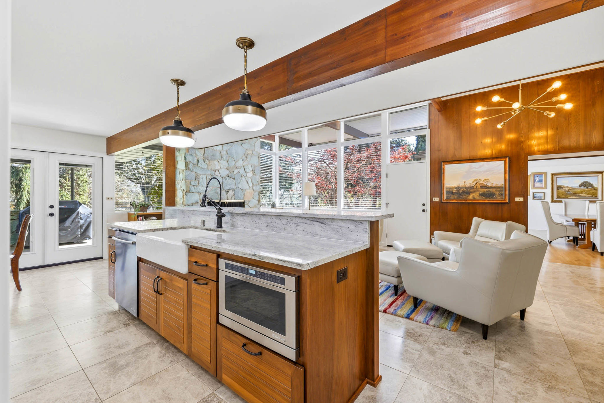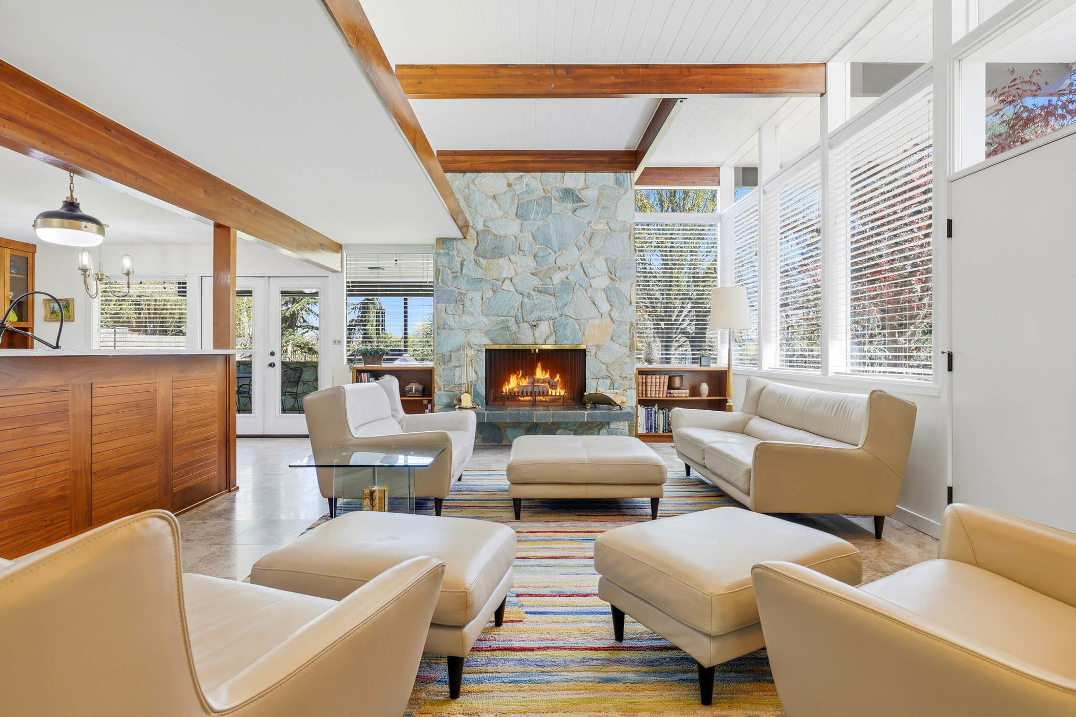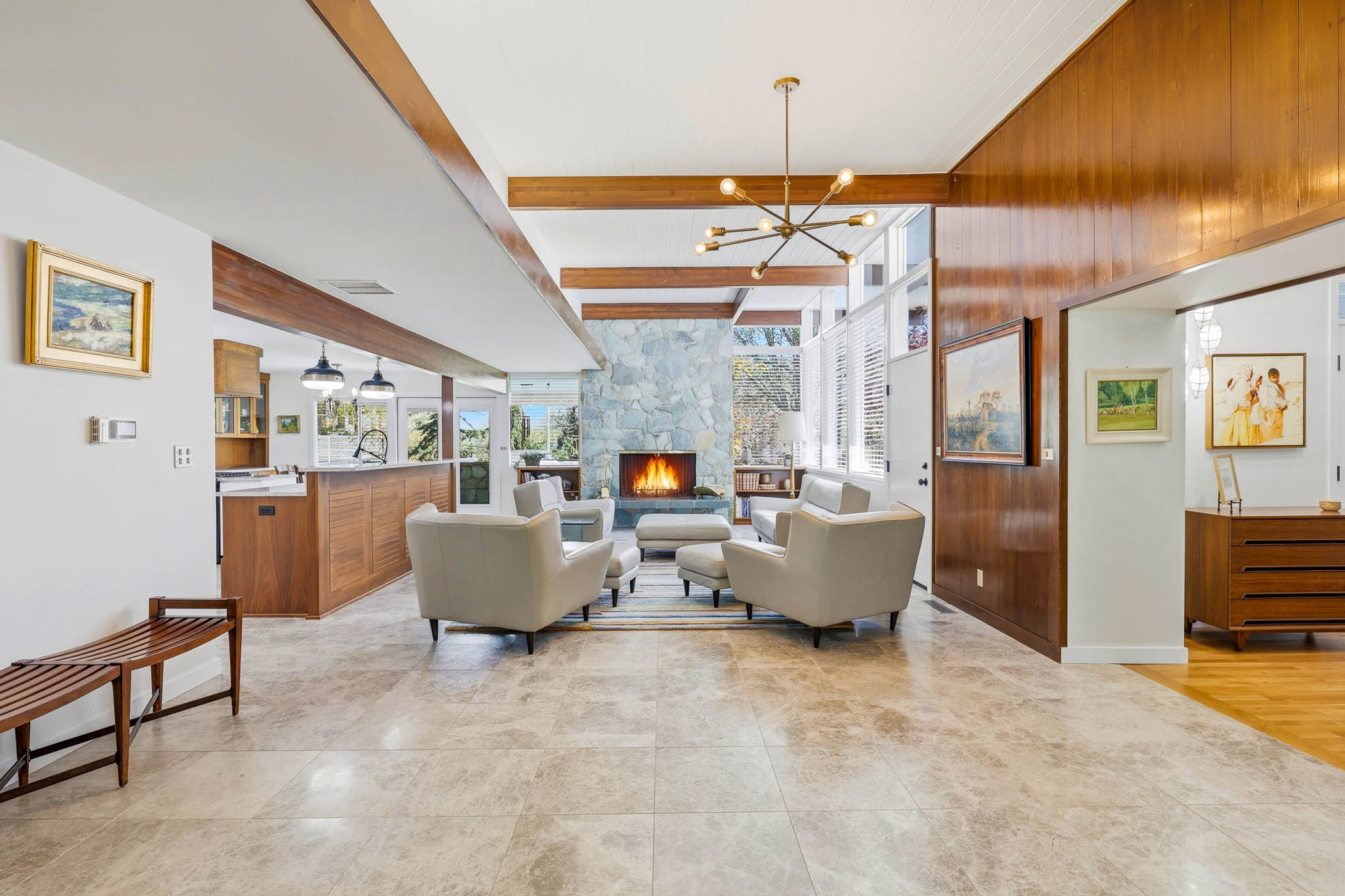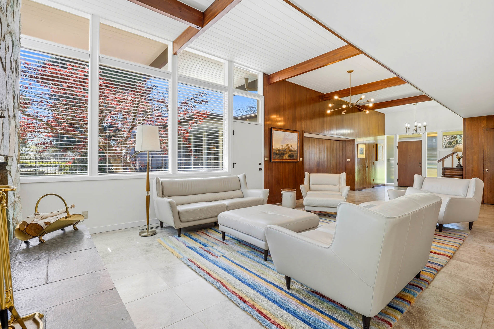 Rare opportunity to own a custom mid-century home on Richland’s coveted Golden Triangle, originally designed by Carson and Kesterson the 60’s and thoughtfully updated over time. Set on a beautiful .57-acre lot surrounded by mature trees, this 3,935 sq ft home offers 5 bedrooms, 4 bathrooms, with 2 additional shower rooms. and timeless architectural character throughout. Expansive windows capture stunning views of Leslie Groves Park and the Columbia River, filling the home with natural light. Classic mid-century details include beamed ceilings, a dramatic 15’ natural stone fireplace, and floor-to-ceiling windows in the dining room overlooking the park-like backyard. The primary suite is located on the main level, with additional bedrooms upstairs. Special spaces include a library, peaceful office with views, and a bright art studio/4-season room off the primary suite. The kitchen is perfectly positioned to enjoy the activity along the nearby walking and biking paths. Step out the back door for direct access to Leslie Groves Park and riverfront trails, with a city-maintained boat launch just one block away. The large backyard and cozy patio create ideal spaces for outdoor living and entertaining. Arare chance to own a historic North Richland riverfront-area home offering architectural charm, natural beauty, and an exceptional lifestyle.
