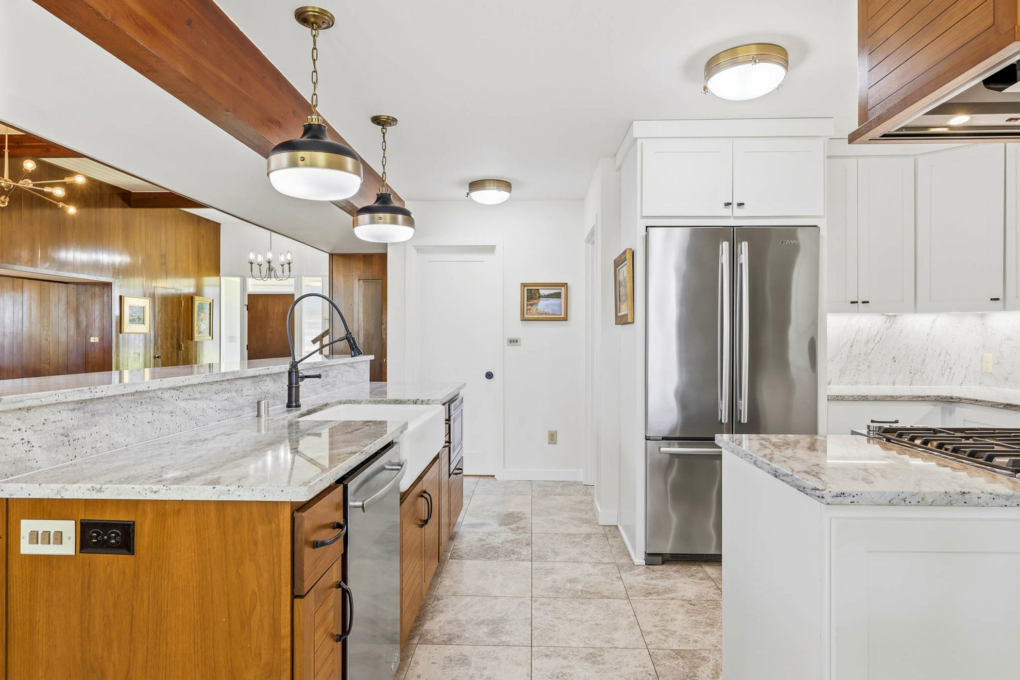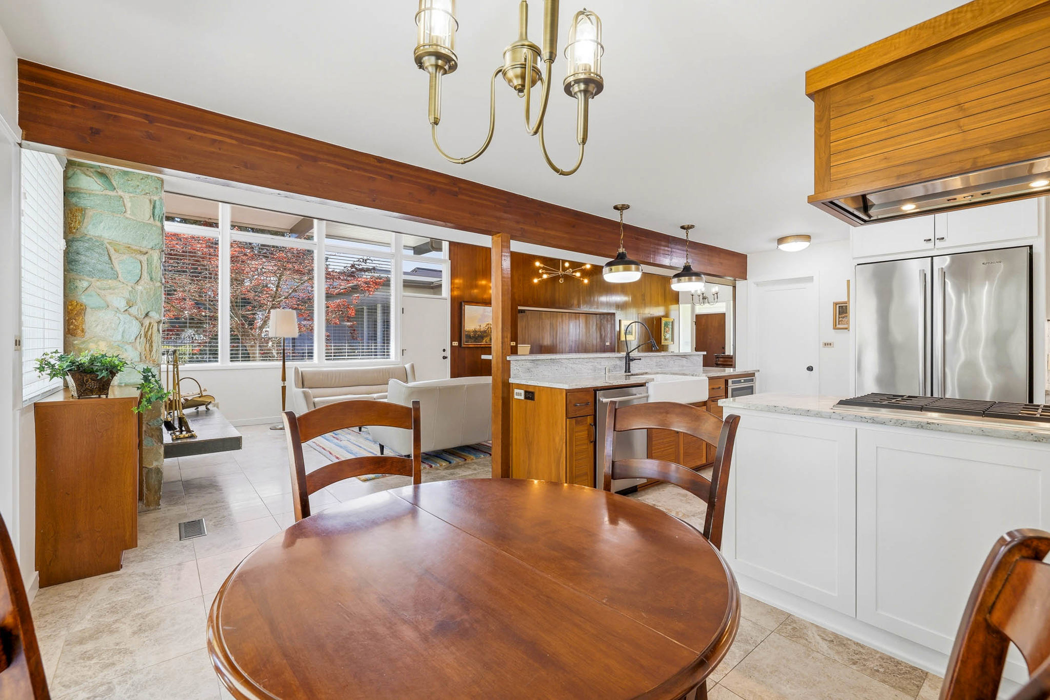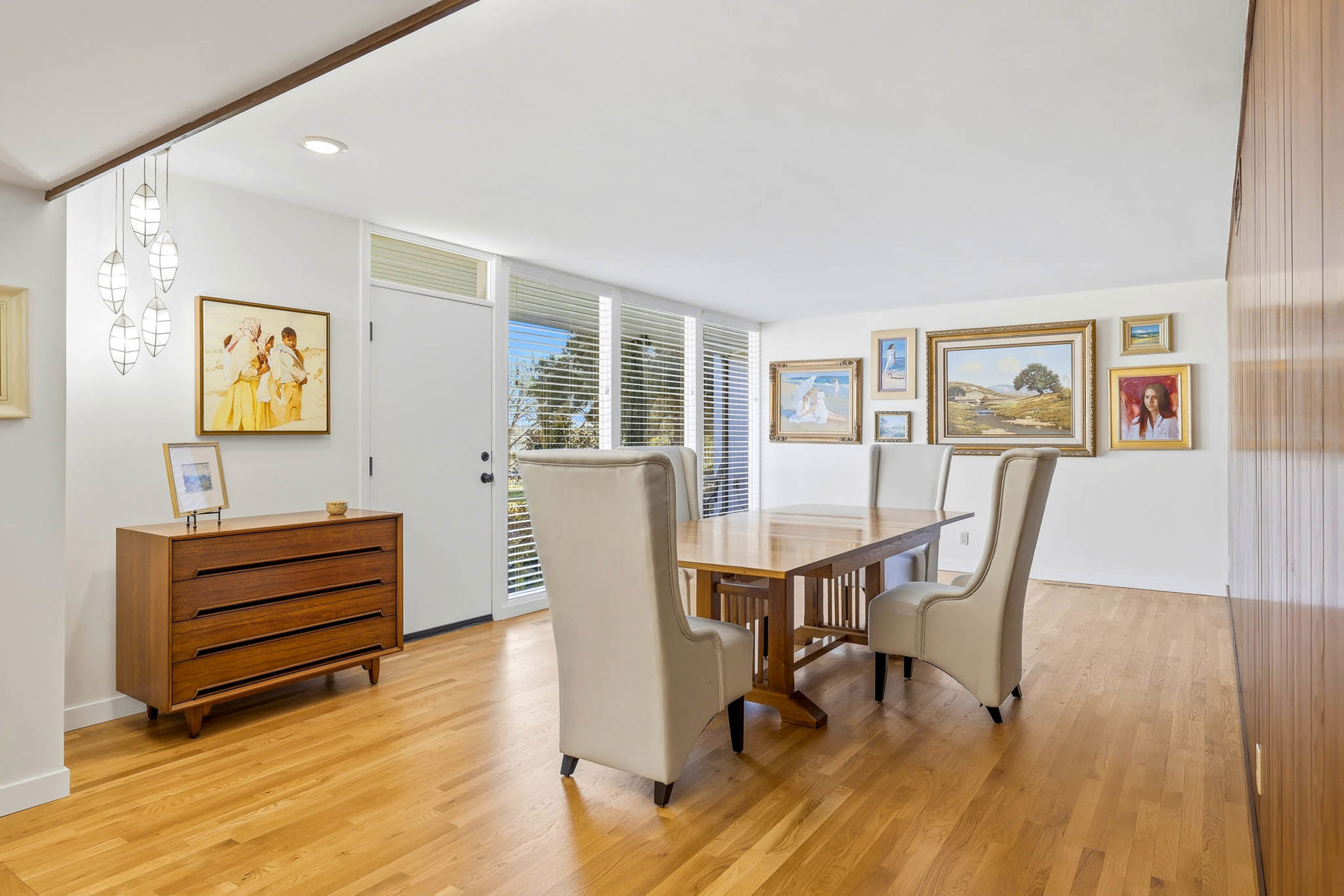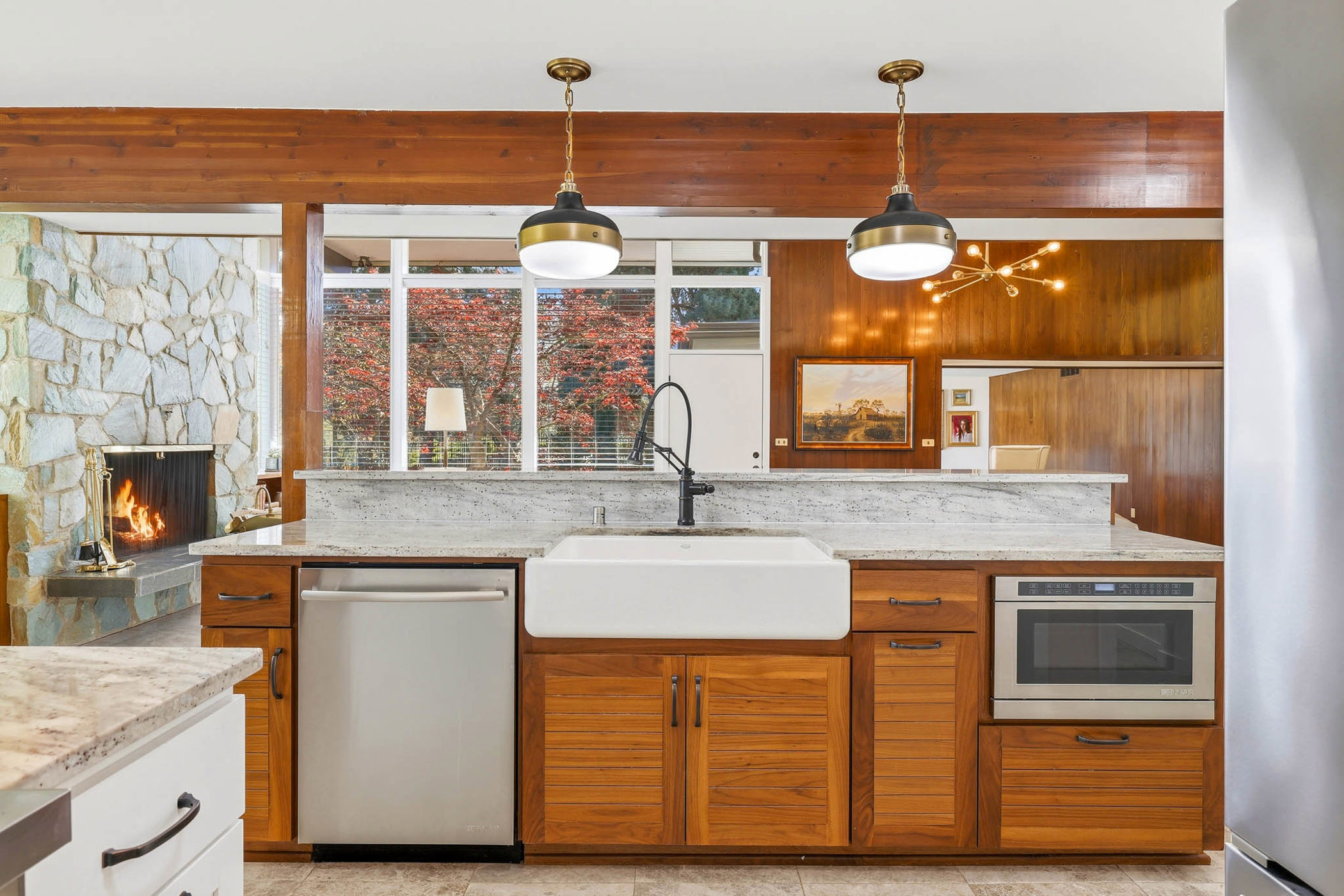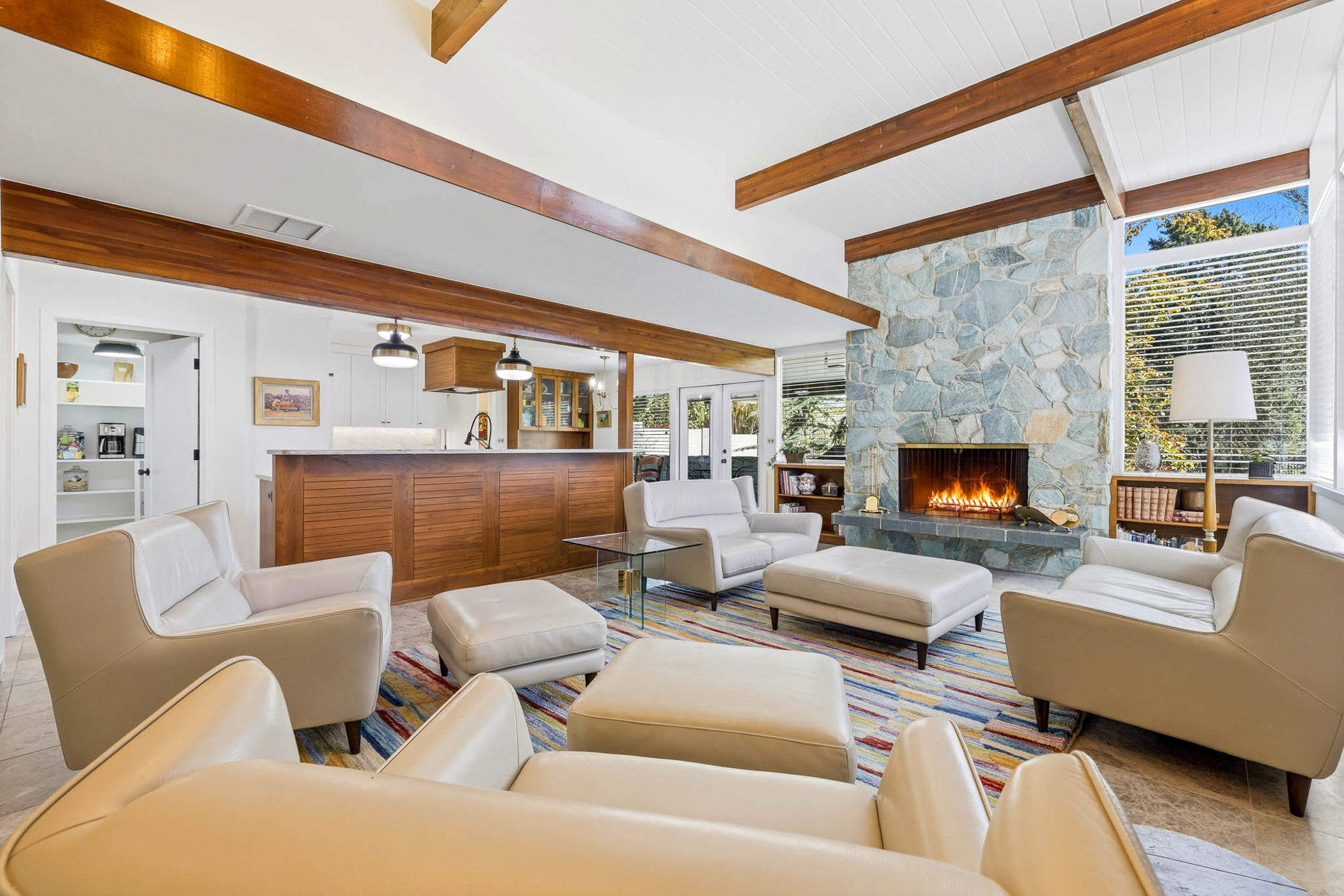 Rare opportunity to own a custom mid-century home on Richland’s coveted Golden Triangle, originally designed by Carson and Kesterson the 60’s and thoughtfully updated over time. Set on a beautiful .57-acre lot surrounded by mature trees, this 3,935 sq ft home offers 5 bedrooms, 4 bathrooms, with 2 additional shower rooms. and timeless architectural character throughout. Expansive windows capture stunning views of Leslie Groves Park and the Columbia River, filling the home with natural light. Classic mid-century details include beamed ceilings, a dramatic 15’ natural stone fireplace, and floor-to-ceiling windows in the dining room overlooking the park-like backyard. The primary suite is located on the main level, with additional bedrooms upstairs. Special spaces include a library, peaceful office with views, and a bright art studio/4-season room off the primary suite. The kitchen is perfectly positioned to enjoy the activity along the nearby walking and biking paths. Step out the back door for direct access to Leslie Groves Park and riverfront trails, with a city-maintained boat launch just one block away. The large backyard and cozy patio create ideal spaces for outdoor living and entertaining. Arare chance to own a historic North Richland riverfront-area home offering architectural charm, natural beauty, and an exceptional lifestyle.