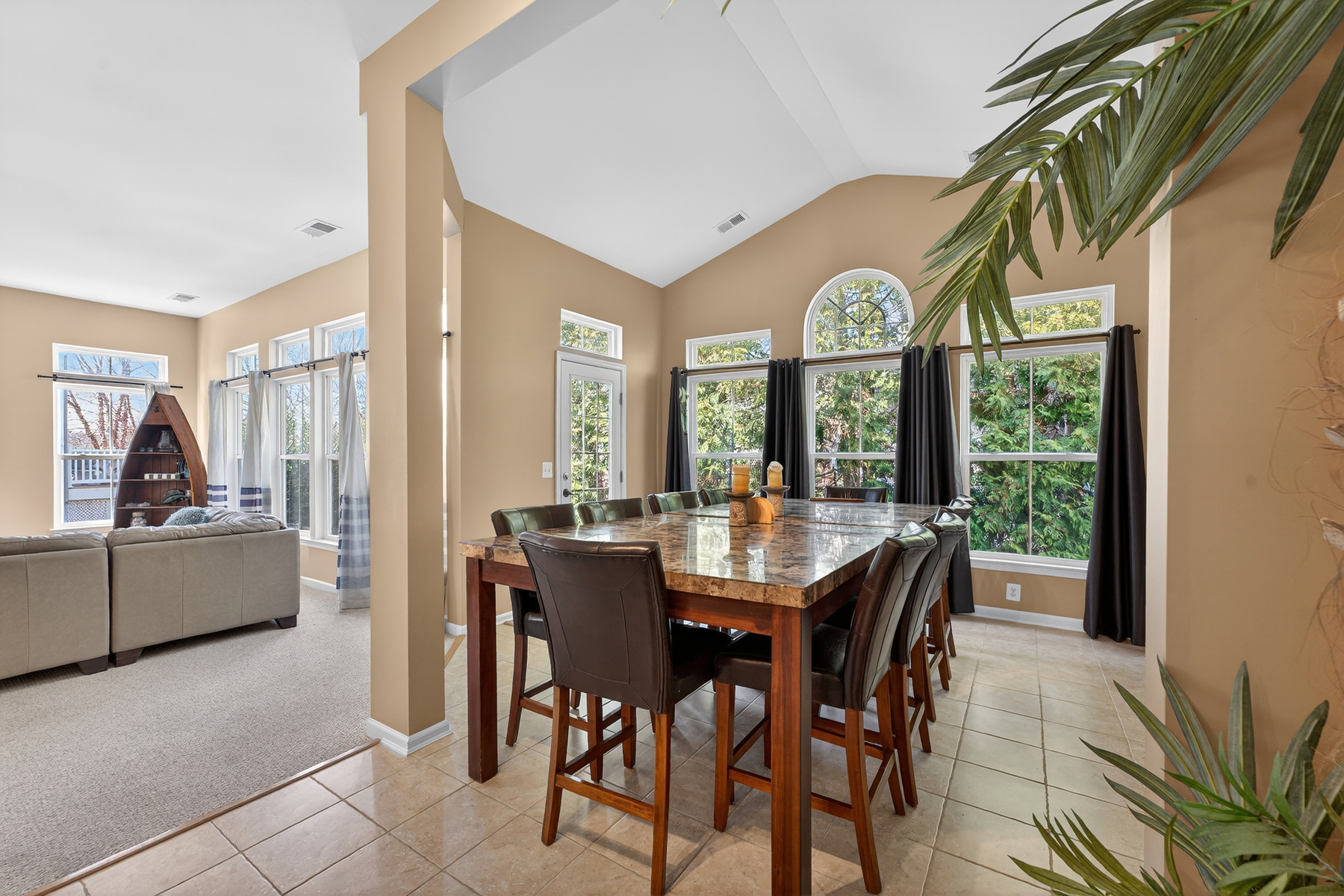 Upon entry, you're welcomed by two spacious front rooms filled with natural light from oversized windows, and a flex space that can be used for home office, guest space, or additional bedrooms. The main living area continues this bright and inviting feel, seamlessly flowing into the dining area and kitchen, creating a layout designed for both everyday living and entertaining. The kitchen features generous cabinetry, ample counter space, and a functional design perfect for gathering.