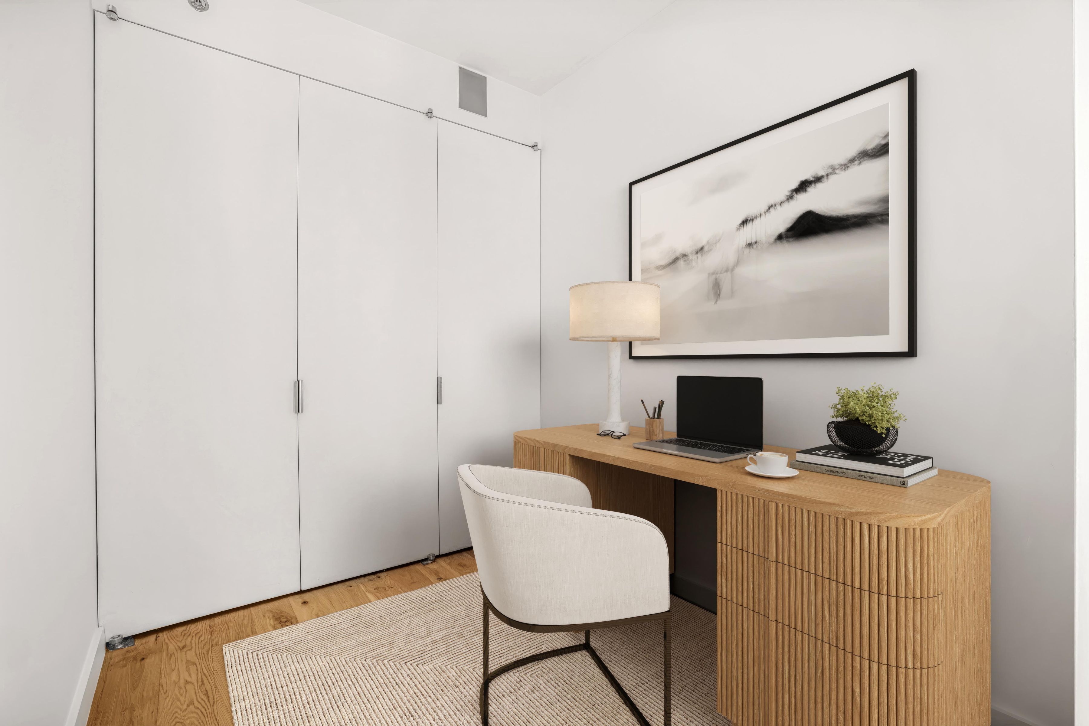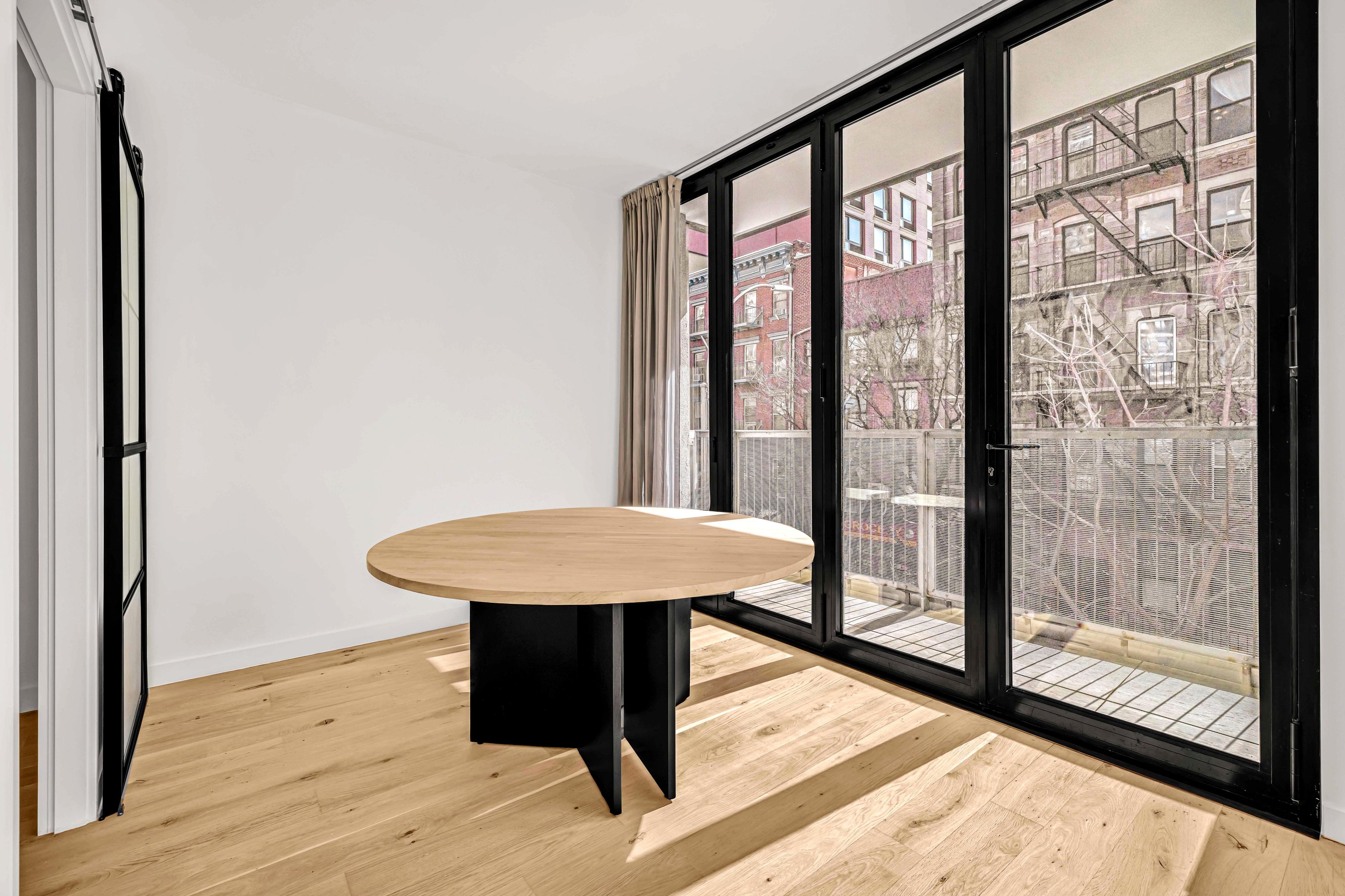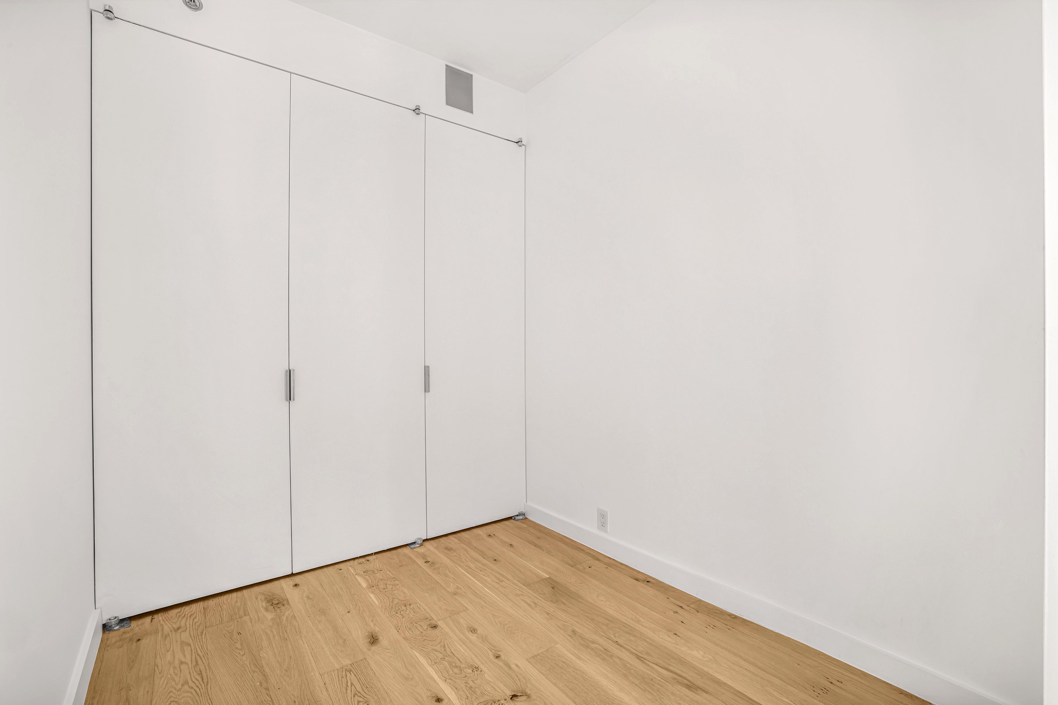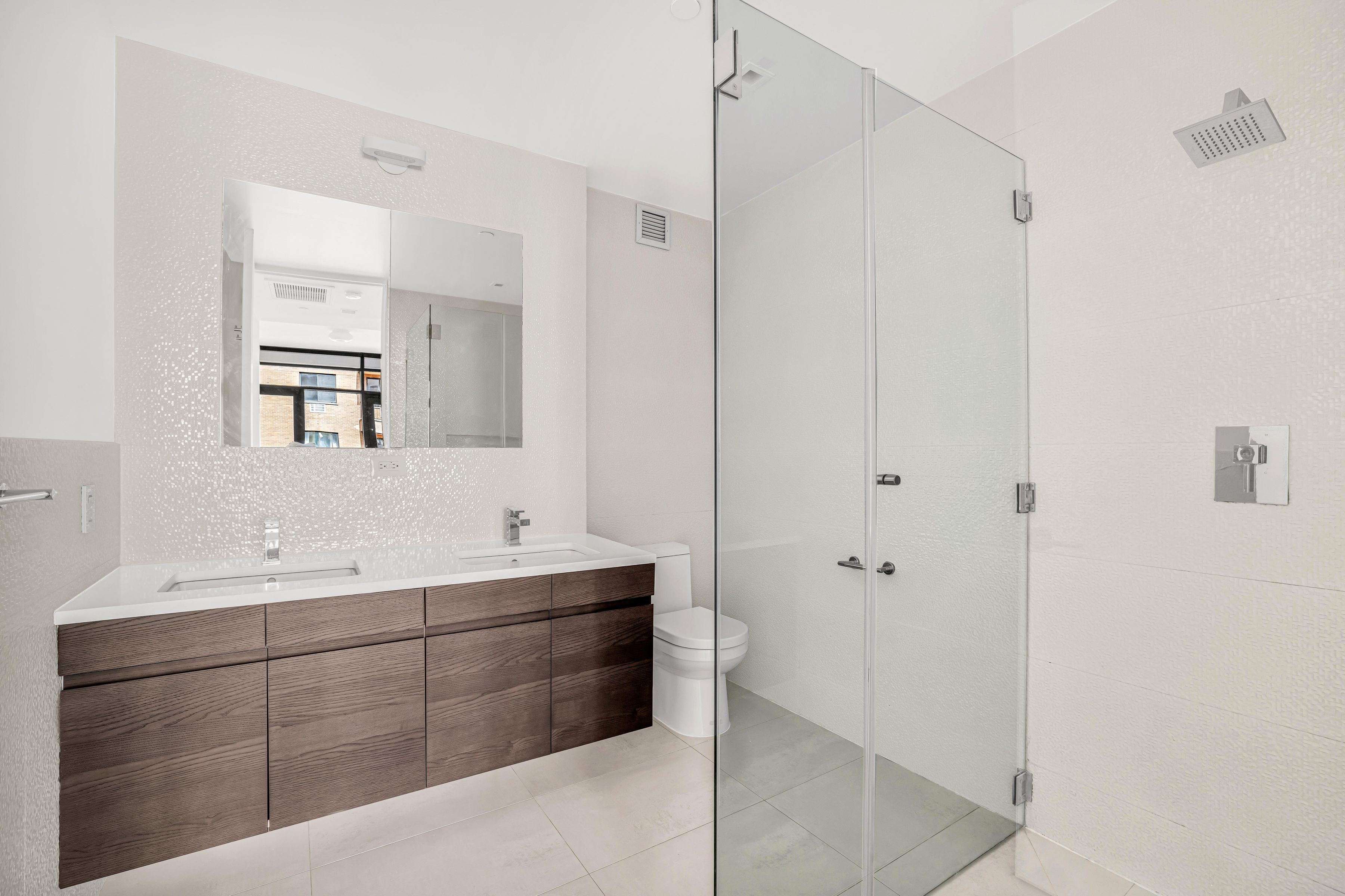 Welcome to 277 East 7th Street offering modern, elegant, relaxed living in the heart of the East Village, on one of the neighborhoods prettiest tree-lined blocks. Its striking façade incorporates ribbons of concrete and glass curtain walls, with front and rear balconies framed in architectural steel. The lobby is embellished with sculpted reclaimed hardwood wall panels punctuated with LED lighting. A virtual doorman secures the building and allows access for package delivery, while video intercoms and monitors provide peace of mind. A key-locked elevator opens directly into each of the upper floor-through units. This massive two bedroom two bathroom full-floor loft contains the possibility for potential third room/home office. The living room balconies showcase a 12-foot span of fully-collapsible, floor-to-ceiling glass panels, providing a relaxed and inviting indoor/outdoor living experience. Wide-plank, Forest Stewardship Council white oak floors provide warm tones and durability throughout. The sleek kitchens include Italian-crafted kitchen cabinetry, waterfall countertops and backsplashes in CaesarStones distinctive London Grey honed finish, Fisher & Paykel refrigerators and double-drawer dishwashers, and Bertazzoni Professional Series ranges and ducted vents, uniting function with elegance. Advanced 3-zone climate control systems deliver optimum heating and cooling. Windows feature one-inch thick, sound-attenuating thermal high performance glass, balancing light and energy efficiency. Extra-wide hallways lead past 8-foot high vanishing interior doors to spacious baths featuring radiant heated floors, with tiles and fixtures from Porcelanosa. Custom Italian vanities, frameless shower enclosures and Zuma Collection soaking tubs complete the thoroughly modern design. North-facing bedrooms (the master with en-suite bath and private balcony) are quiet havens with typical East Village vistas seen through oversized picture frame windows. With a broad range of amenities, including some of NYCs most creative restaurants, bars and boutique shops, as well as the verdant oasis of Tompkins Square Park with its acclaimed dog run and year-round Greenmarket, there is no better time to experience 277 East 7th Street and seize the opportunity for modern, elegant, relaxed living in the East Village. *Represents current apartment configuration, which may not conform to official legal documentation. Tenants should consult with their legal or architectural professionals to determine legal use parameters.