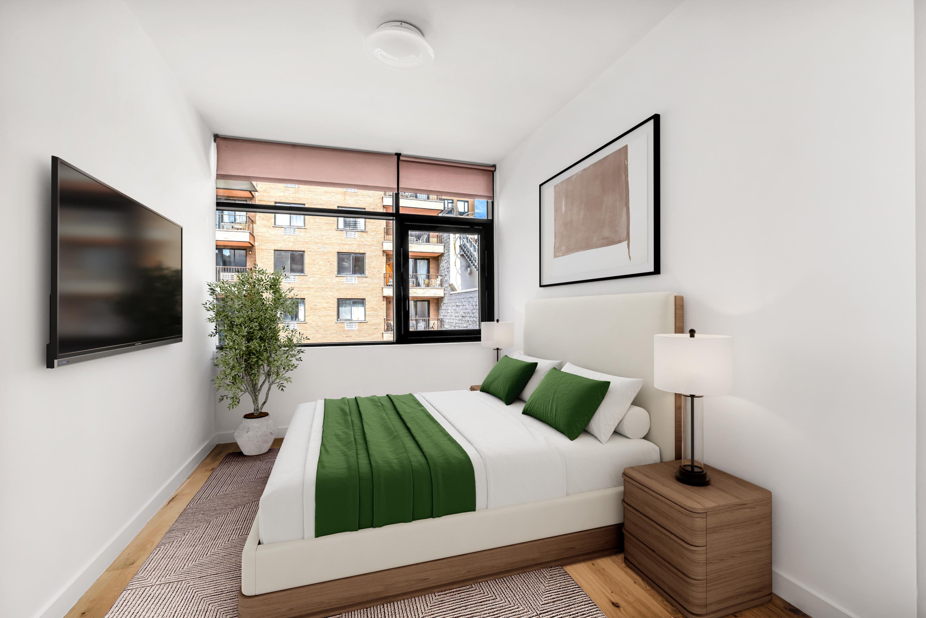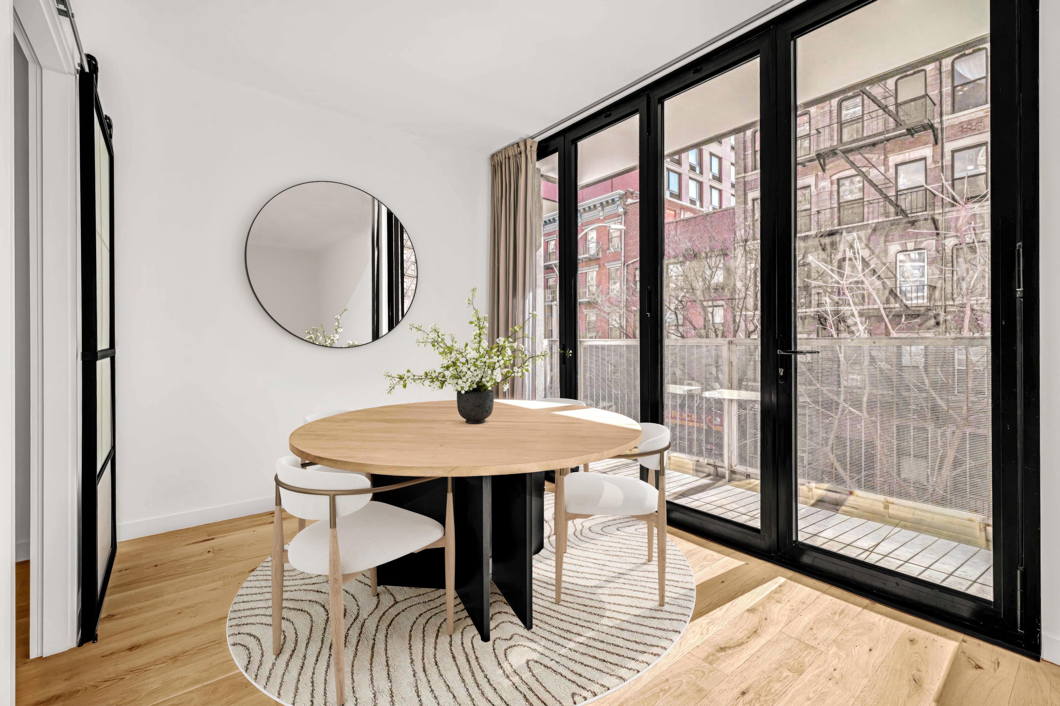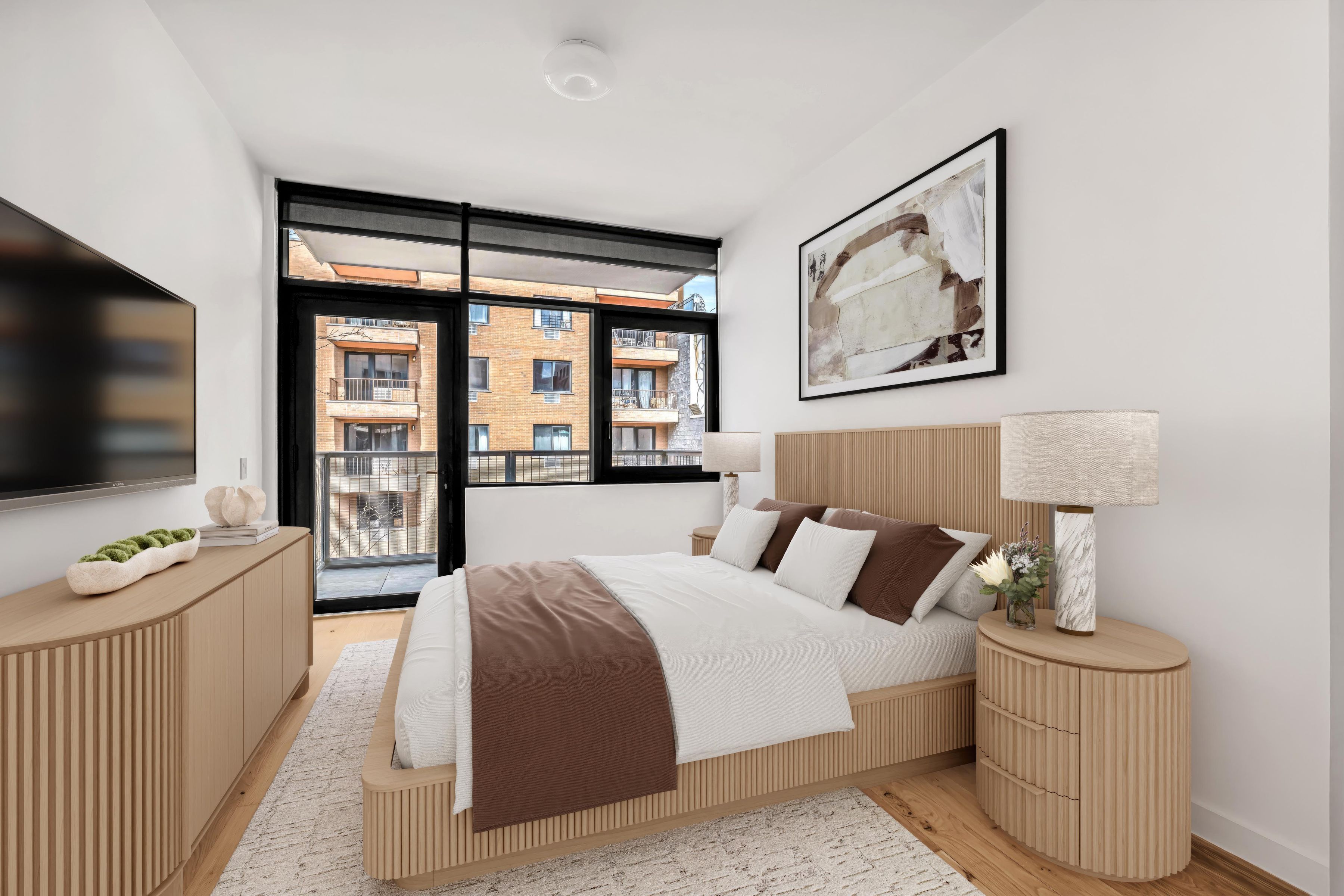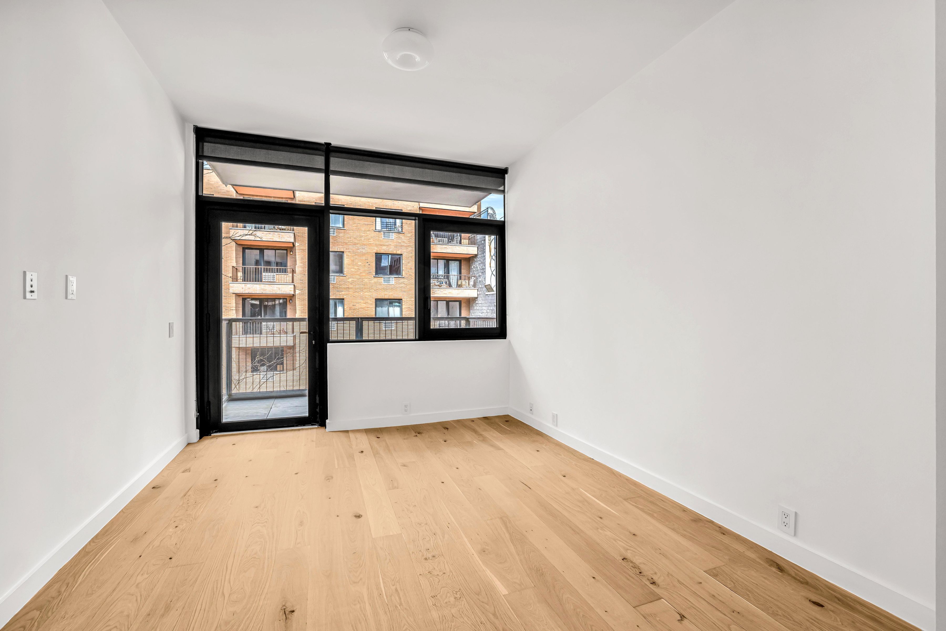 Welcome to 277 East 7th Street offering modern, elegant, relaxed living in the heart of the East Village, on one of the neighborhoods prettiest tree-lined blocks. Its striking façade incorporates ribbons of concrete and glass curtain walls, with front and rear balconies framed in architectural steel. The lobby is embellished with sculpted reclaimed hardwood wall panels punctuated with LED lighting. A virtual doorman secures the building and allows access for package delivery, while video intercoms and monitors provide peace of mind. A key-locked elevator opens directly into each of the upper floor-through units. This massive two bedroom two bathroom full-floor loft contains the possibility for potential third room/home office. The living room balconies showcase a 12-foot span of fully-collapsible, floor-to-ceiling glass panels, providing a relaxed and inviting indoor/outdoor living experience. Wide-plank, Forest Stewardship Council white oak floors provide warm tones and durability throughout. The sleek kitchens include Italian-crafted kitchen cabinetry, waterfall countertops and backsplashes in CaesarStones distinctive London Grey honed finish, Fisher & Paykel refrigerators and double-drawer dishwashers, and Bertazzoni Professional Series ranges and ducted vents, uniting function with elegance. Advanced 3-zone climate control systems deliver optimum heating and cooling. Windows feature one-inch thick, sound-attenuating thermal high performance glass, balancing light and energy efficiency. Extra-wide hallways lead past 8-foot high vanishing interior doors to spacious baths featuring radiant heated floors, with tiles and fixtures from Porcelanosa. Custom Italian vanities, frameless shower enclosures and Zuma Collection soaking tubs complete the thoroughly modern design. North-facing bedrooms (the master with en-suite bath and private balcony) are quiet havens with typical East Village vistas seen through oversized picture frame windows. With a broad range of amenities, including some of NYCs most creative restaurants, bars and boutique shops, as well as the verdant oasis of Tompkins Square Park with its acclaimed dog run and year-round Greenmarket, there is no better time to experience 277 East 7th Street and seize the opportunity for modern, elegant, relaxed living in the East Village. *Represents current apartment configuration, which may not conform to official legal documentation. Tenants should consult with their legal or architectural professionals to determine legal use parameters.