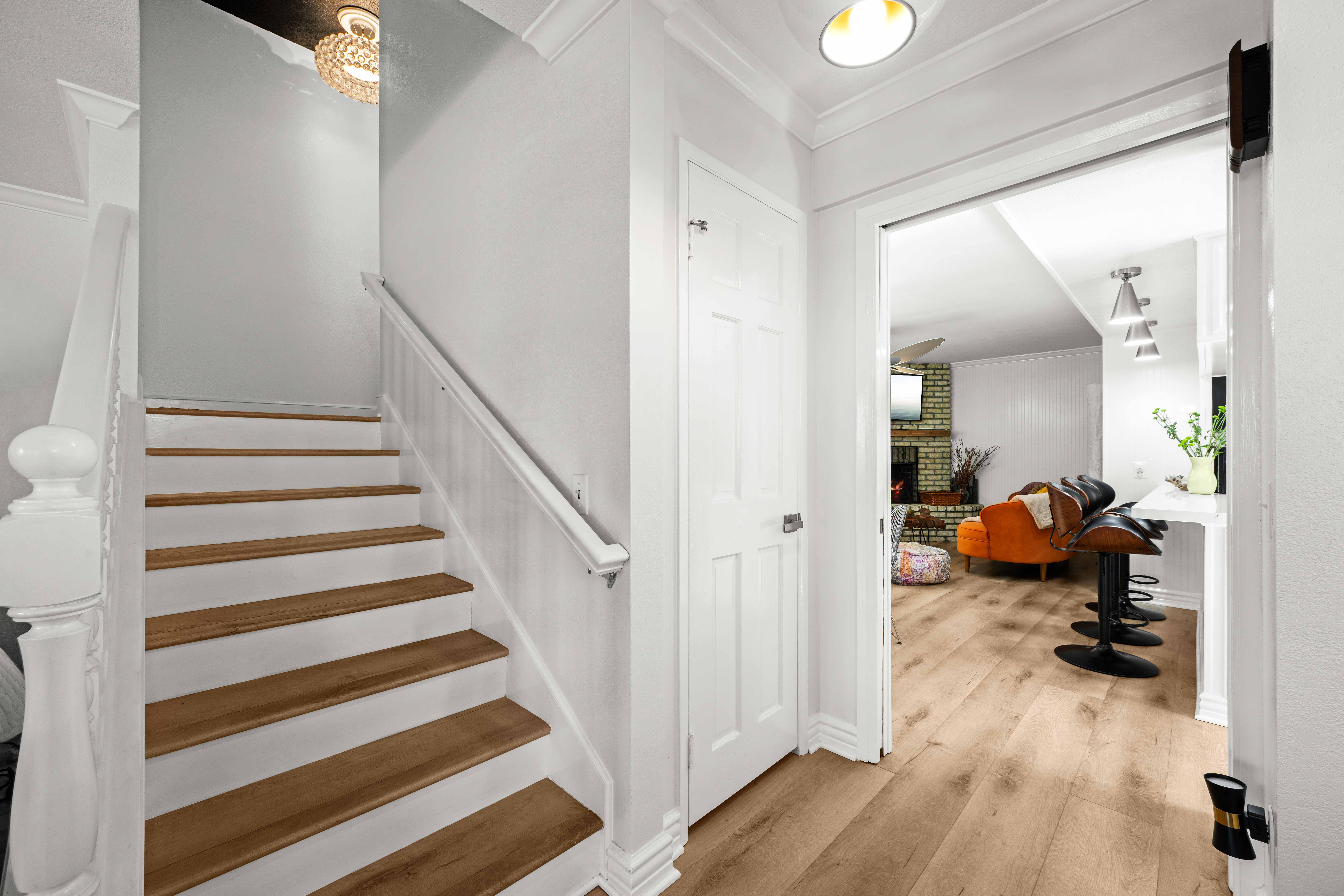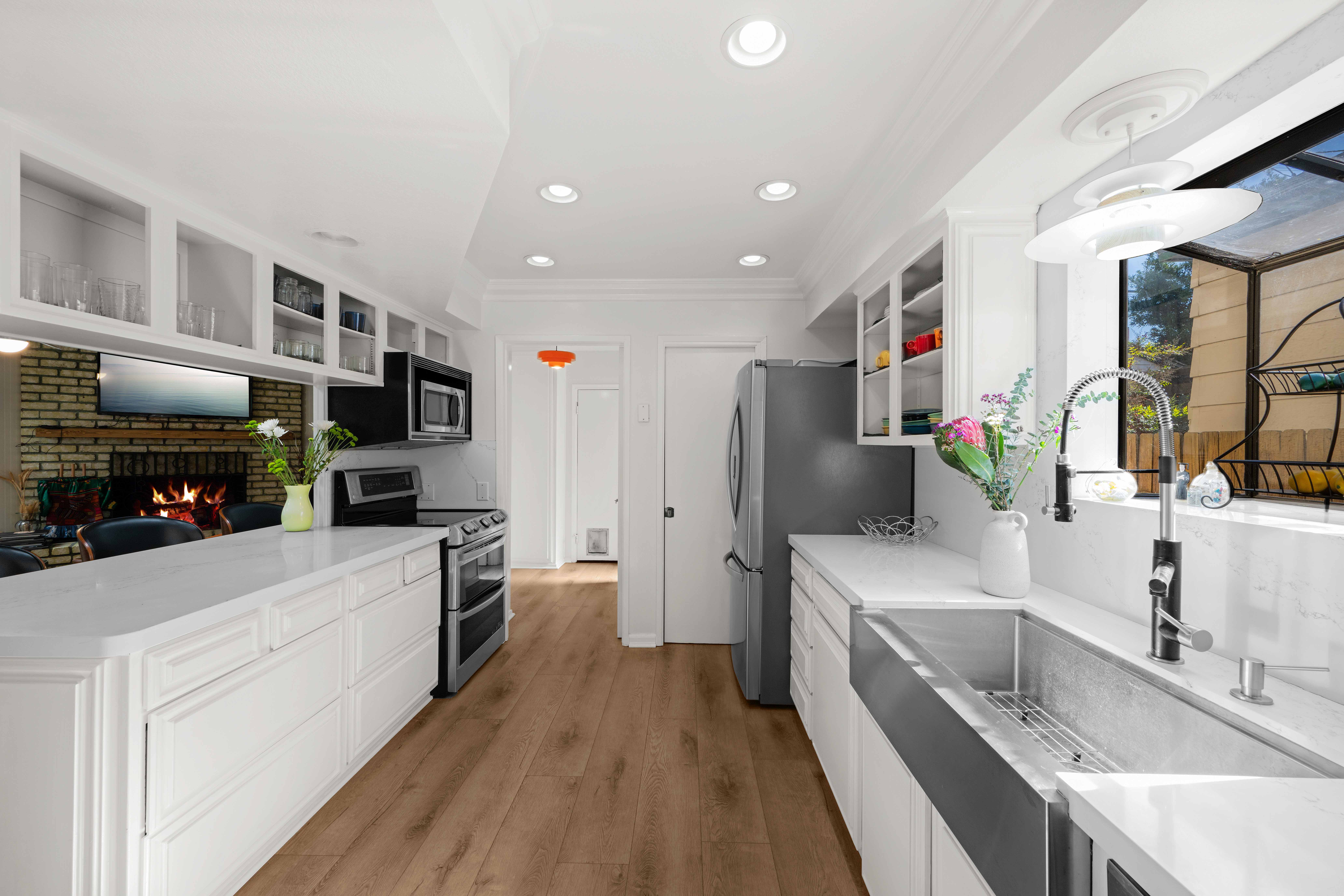 Welcome to Naples Island and a charming coastal Cape Cod home. This 1987 Sq. Ft. custom home is situated on a 2416 sq. ft. lot, and very close to the Rivo Alto Canal waterway. Enter through the front custom swing door into an inviting formal entry. Enjoy the hardwood flooring, custom plantation shutters throughout the spacious formal living room and dining room with custom lighting and accent wall, and wood built-ins. Enter the large family room which is complete with hardwood flooring, a beautiful brick fireplace, custom lighting and sliding doors for good air flow. The kitchen is nice and bright and opens to the family room. The kitchen counters are new, as are, all the stainless steel appliances and the flooring. Located off the kitchen is a spacious pantry and storage room, as well as, a guest bath. The two car garage is easy access from a straight alleyway with an entrance off of Savona Walk. Heading upstairs, enter the upper landing complete with storage and closet space. Two spacious bedrooms on the left feature custom plantation shutters. Both rear bedrooms have ceiling fans and open up to an oversized private rear deck, located over the entire garage. This area is private and open aired, which is perfect for entertaining. There is a guest bath with tub shower located between these rear bedrooms and the primary suite. Enter the primary suite into impressive vaulted cathedral ceilings with exposed wood and wood beams, and also with full plantation shutters. This special room is light and bright, complete with a skylight and ceiling fan, very spacious and inviting, and complete with a panoramic view balcony. There are dual closets, one with mirrored wardrobe doors and a secondary closet with wood panel doors located in a sitting area. The primary bath is white ceramic tiles, walls and shower and wood floors.. The interior and exterior of this wonderful home has been completely refreshed and turnkey. Enjoy the Indoor/Outdoor Lifestyle of Naples Island and all the activities that it has to offer. Boating, Sailing, Restaurants, Shops, Concerts in the Park, Holiday Boat Parade, and Gondolas on the Canals, and much more.