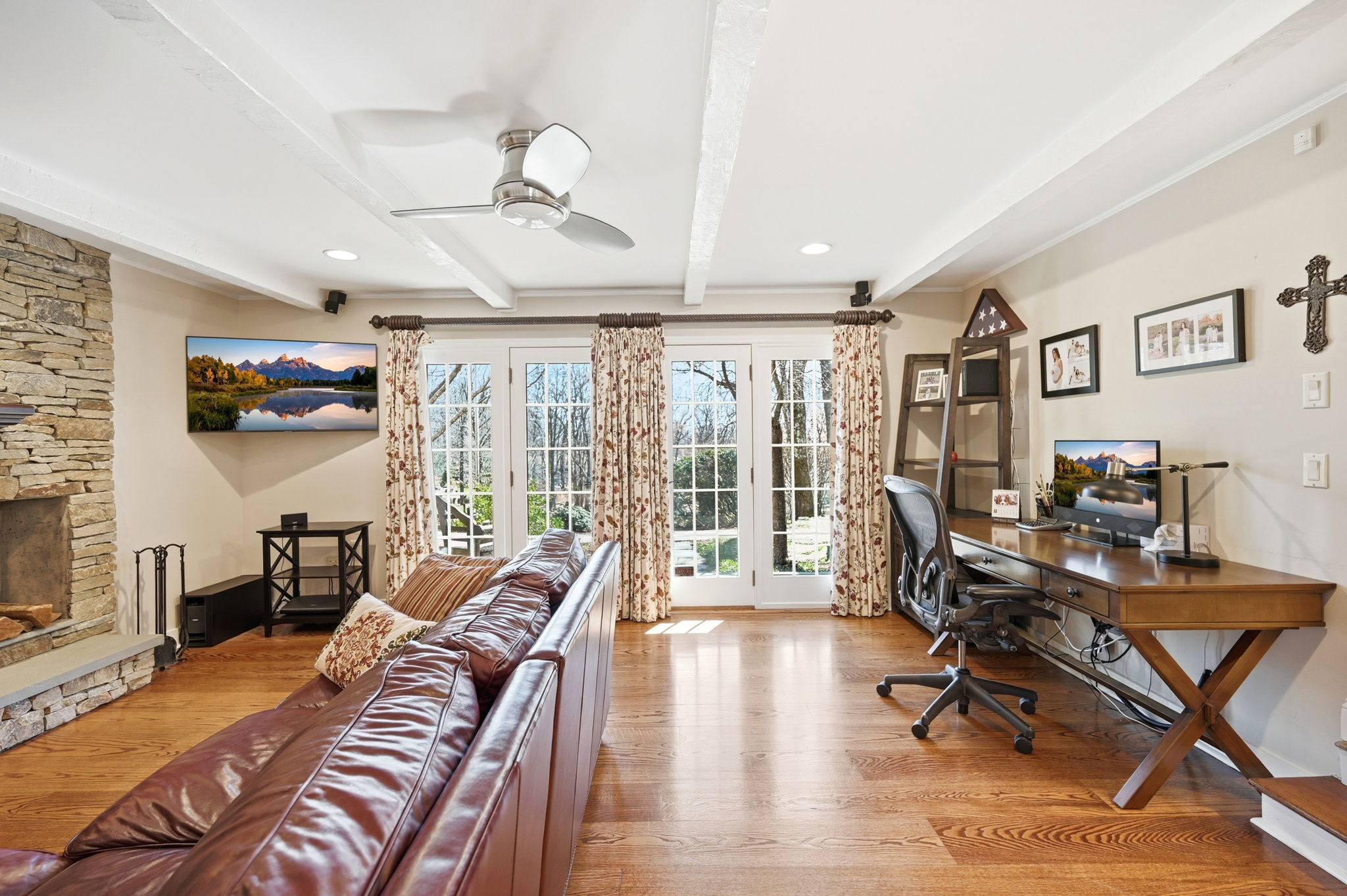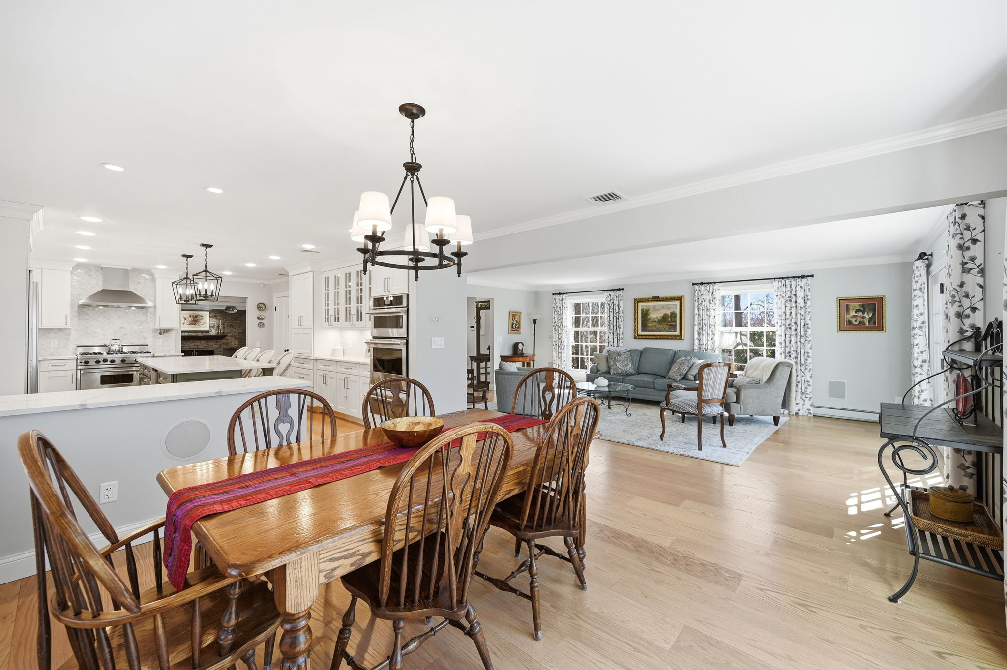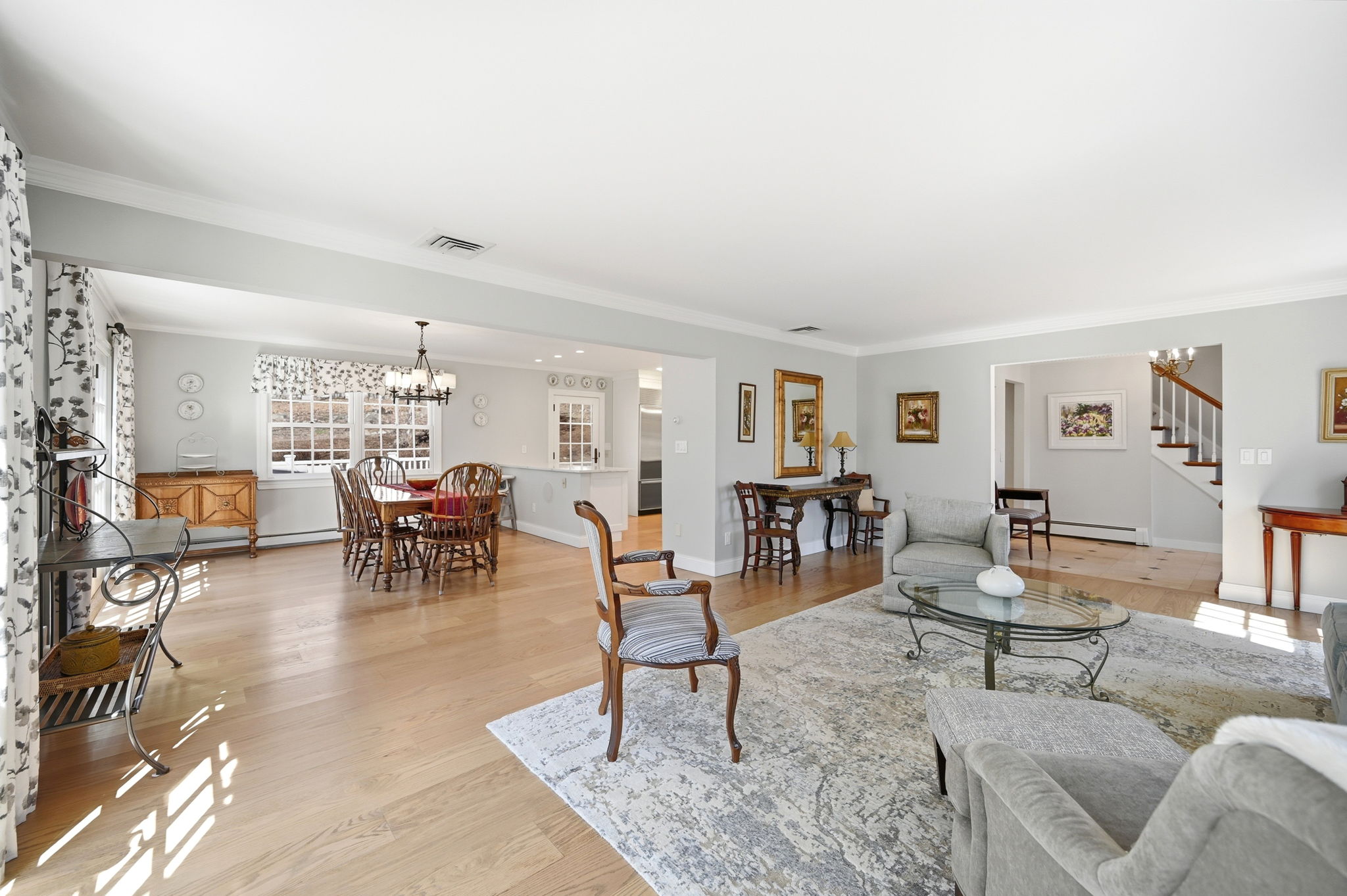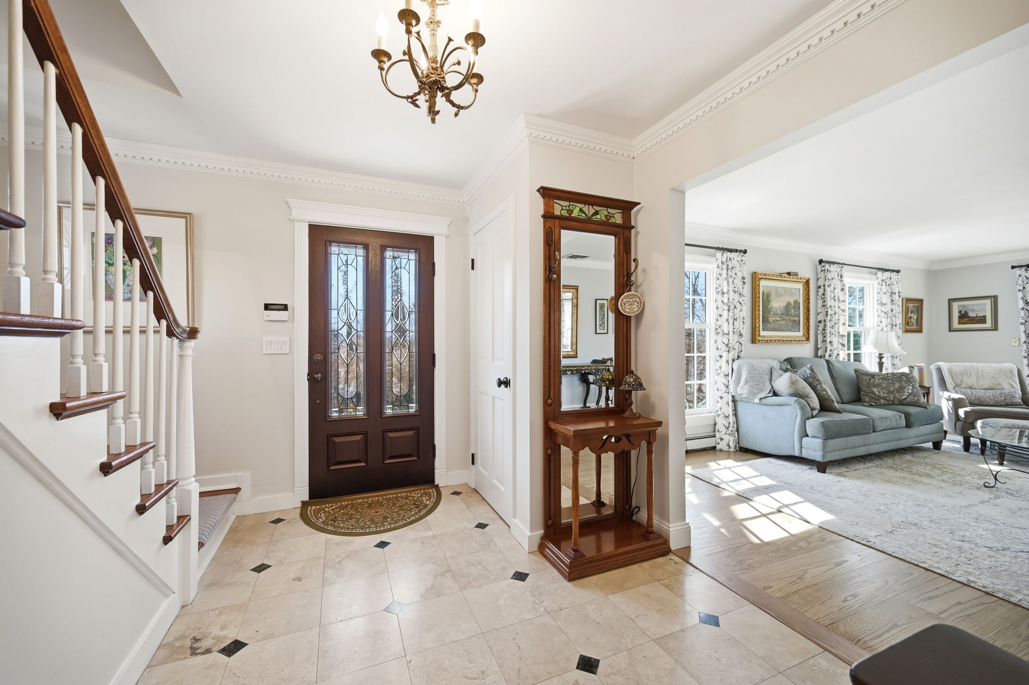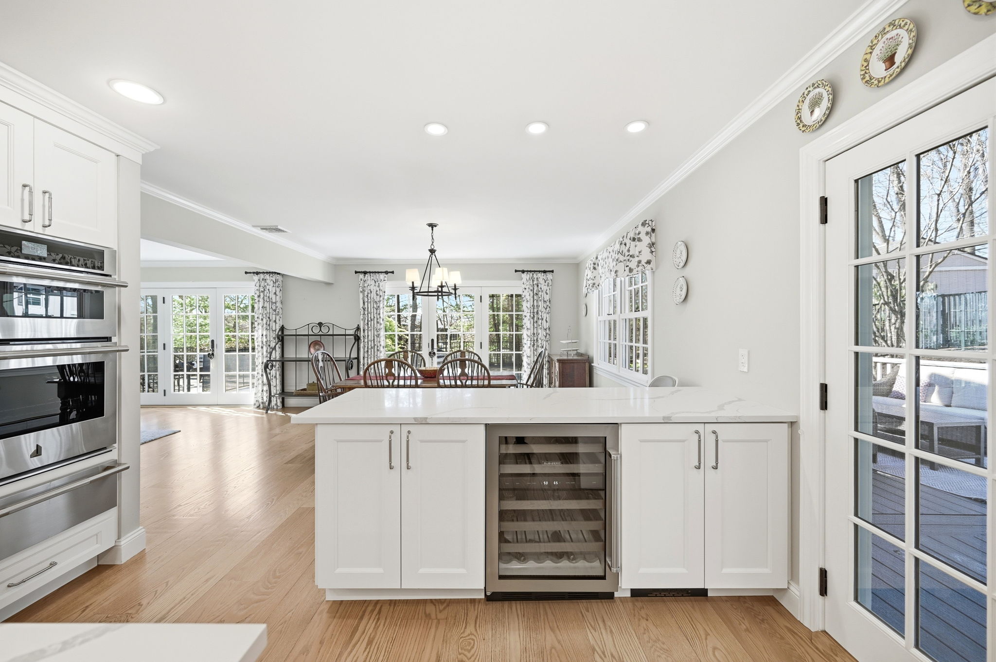 Updated Colonial with extended family suite. Open living room, dining room w/wide 8" wood floors & Sliding glass door to salt water in-ground pool. Beautifully renovated upscale kitchen w/large island, Viking Stove plus wall oven, warming tray, microwave, ice maker, wine cooler, farm sink w/door to deck & brick patio. Sunken Family Room w/stone Fireplace & HW floor, Powder Room, Laundry Room. 2nd floor features Primary Bedroom w/walk-in closet & Primary Bath. Freshly painted extended family or ensuite with full bath, kitchenette, walk-in closet and expansion possibilities. Finished basement adds to more living space with recreation room, office and great storage. Multi-zone gas heat, two zone C/A, central vac (not in extended family addition) U/G Sprinklers, Built-in Mahogany Cabinet w/speaker system. Many details and all on a cul-de-sac location!