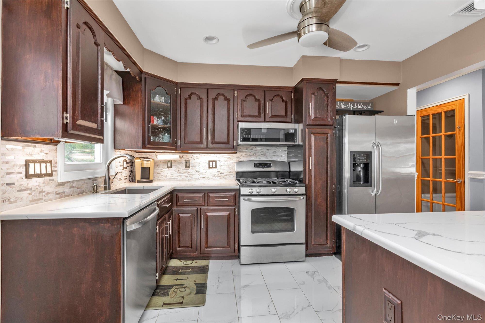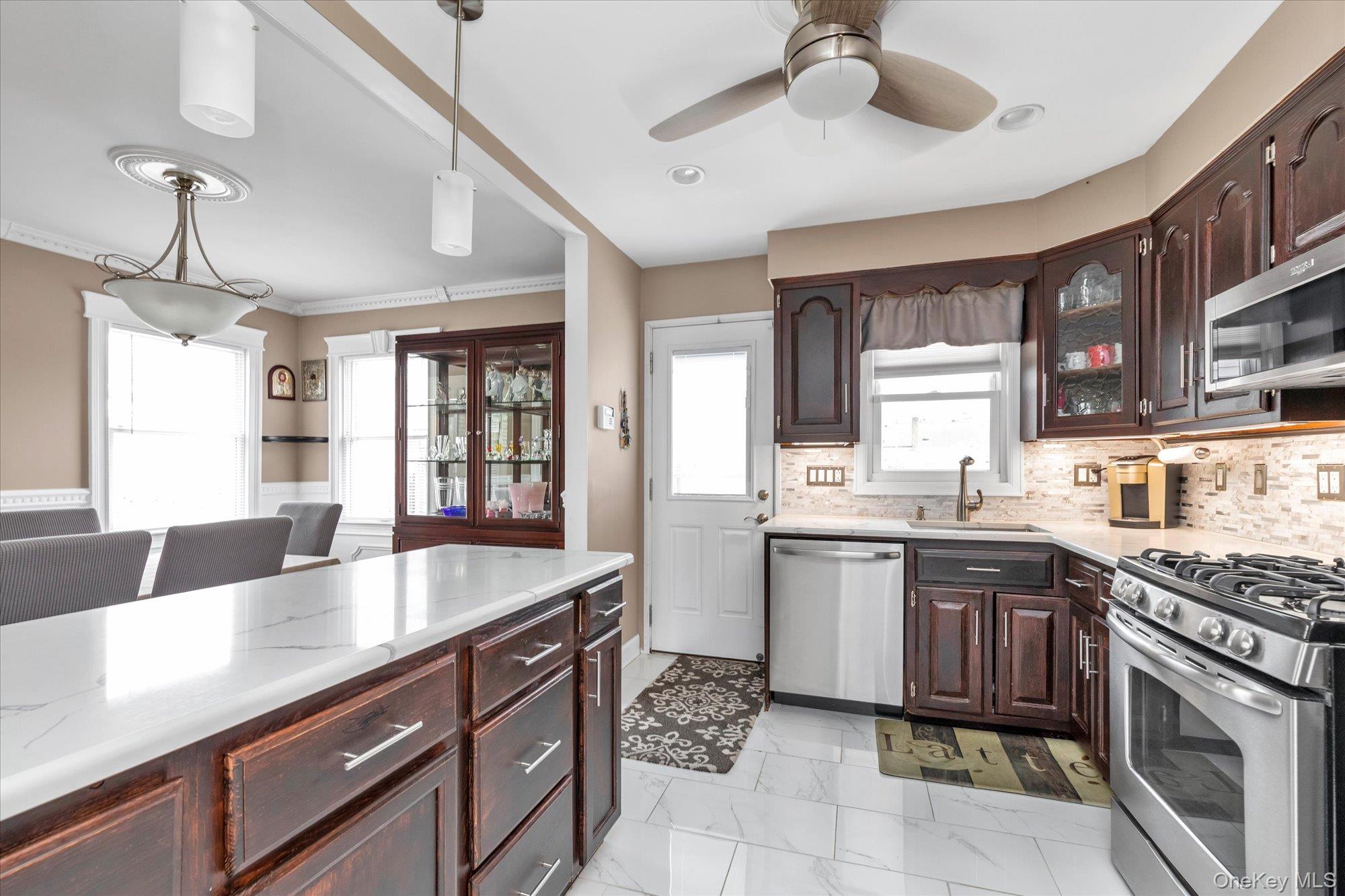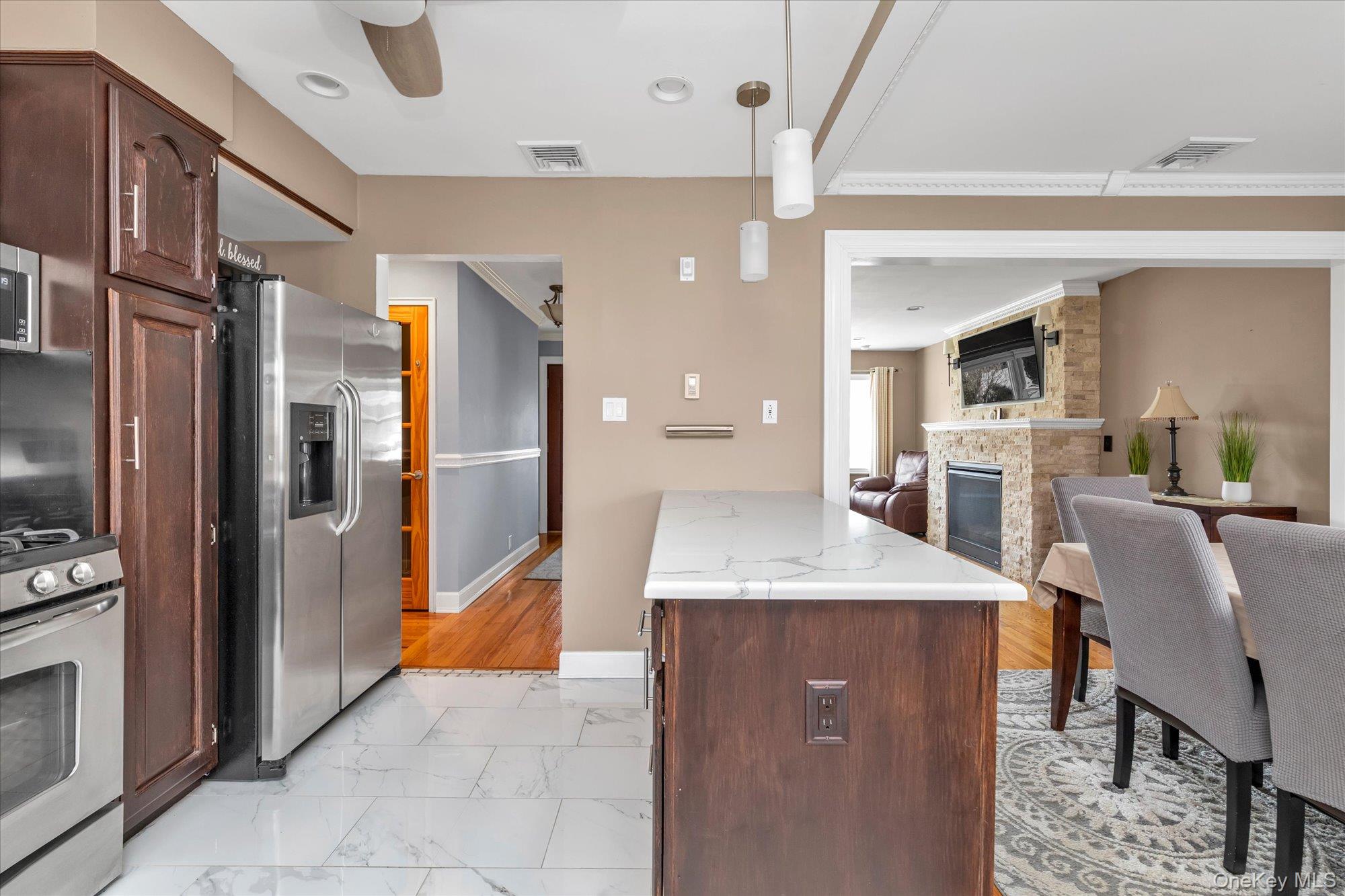 Welcome To This Beautiful Move In Ready Ranch Style Home, Located in the Heart of N Bellmore Offering 3/4 Bedrooms and Fully Renovated Bath. As You Enter in to the Front Foyer, You Are Welcomed With Radiant Heat and Beautiful Hardwood Floors That Are Both Throughout The Whole Home. The Kitchen Offers Stainless Steel Appliances, Granite Countertops, Tile Flooring, and Island Overlooking The Dining Room. The Formal Dining Room Has Beautiful Crown Molding With Lower Recessed Panels and Chair Rails. The Living Room Area, Offers a Stone Faced Fireplace, Which Is Perfect For a Cozy Atmosphere, and Large Bay Window. The House Offers 3/4 Bedrooms, Adorned With Crown Moldings and Large Closets. Renovated Full Bath. Fenced in Property With In-Ground, Heated, Salt Water Pool, Wth Pavered Patio, Beautiful Landscaping And Driveway Parking With 2.5 Car Detached Garage And Loft. Full Basement With Outside Entrance, Utilities, Laundry & Plenty of Storage. 200 AMP Electric, Hot Water Heater 5 yrs. In-Ground Sprinklers. Close to All, Including Trains & Shopping. Taxes Do Not Reflect Basic Star Savings of $995. Dining Room Chandelier Excluded. Camera/Recording Devices In The Home
