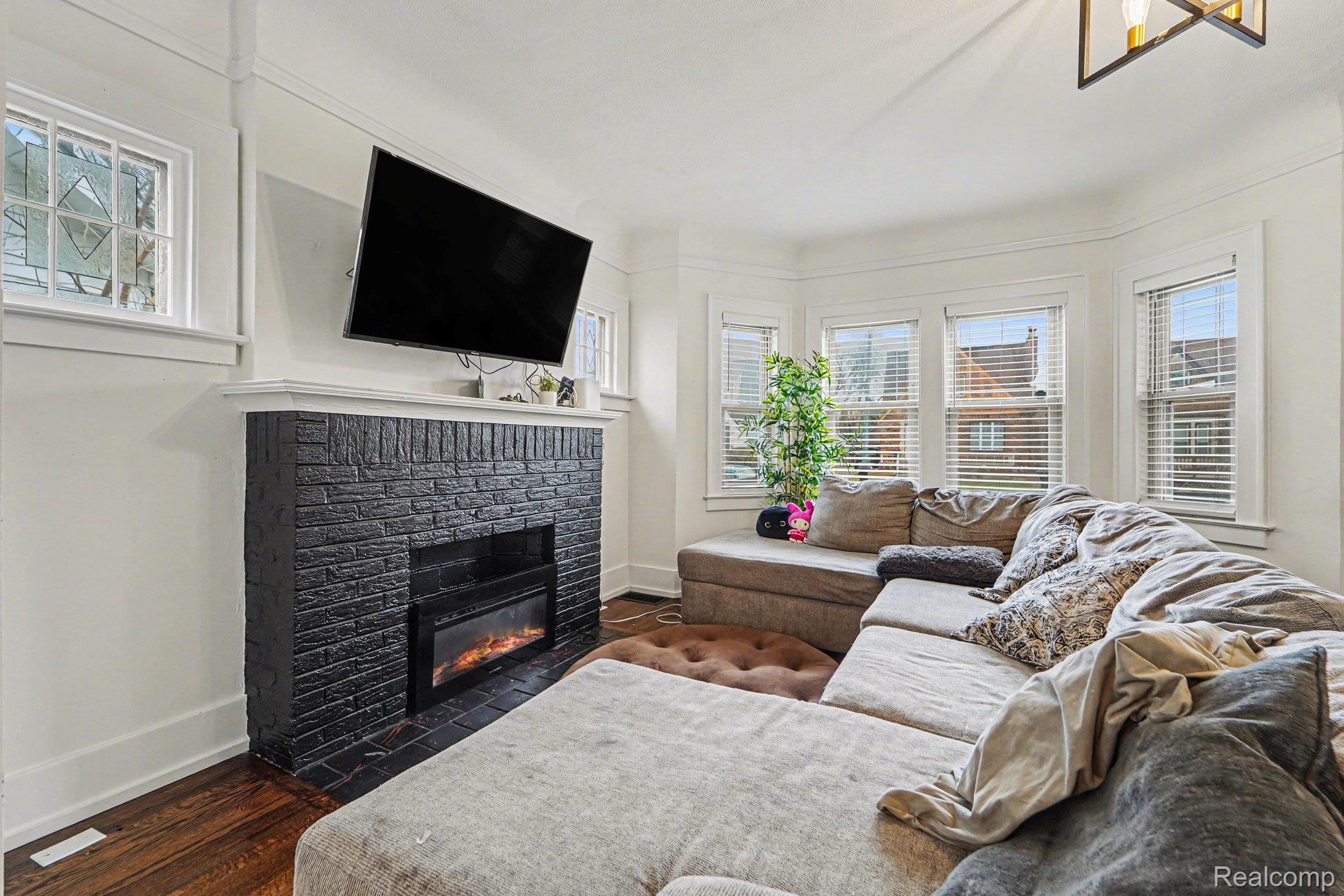 Completely transformed and beautifully renovated brick bungalow with large waterproofed basement featuring 4 bedrooms and 2 full baths updated with new recessed lighting and modern fixtures throughout. The main level offers an updated kitchen with laminate flooring, stainless steel appliances (refrigerator, dishwasher, and gas stove), granite countertops, and an island with seating - perfect for everyday living and entertaining. The natural brick fireplace in the living room serves as a warm and inviting focal point, complemented by hardwood flooring that extends through the living room, dining room, and two main-floor bedrooms. Enjoy a fully updated bathroom with stylish, trendy tile, along with wood blinds throughout the main level. Upstairs features two additional bedrooms and a second full bath with laminate flooring. This charming home was renovated in 2022. Major updates include FSM basement waterproofing (2024) and a new sewer line (2022), providing added peace of mind. A shared driveway leads to a 2-car garage with electricity and opener. This move-in-ready home offers modern updates, functional space, and timeless charm - don't miss this gem before its gone!