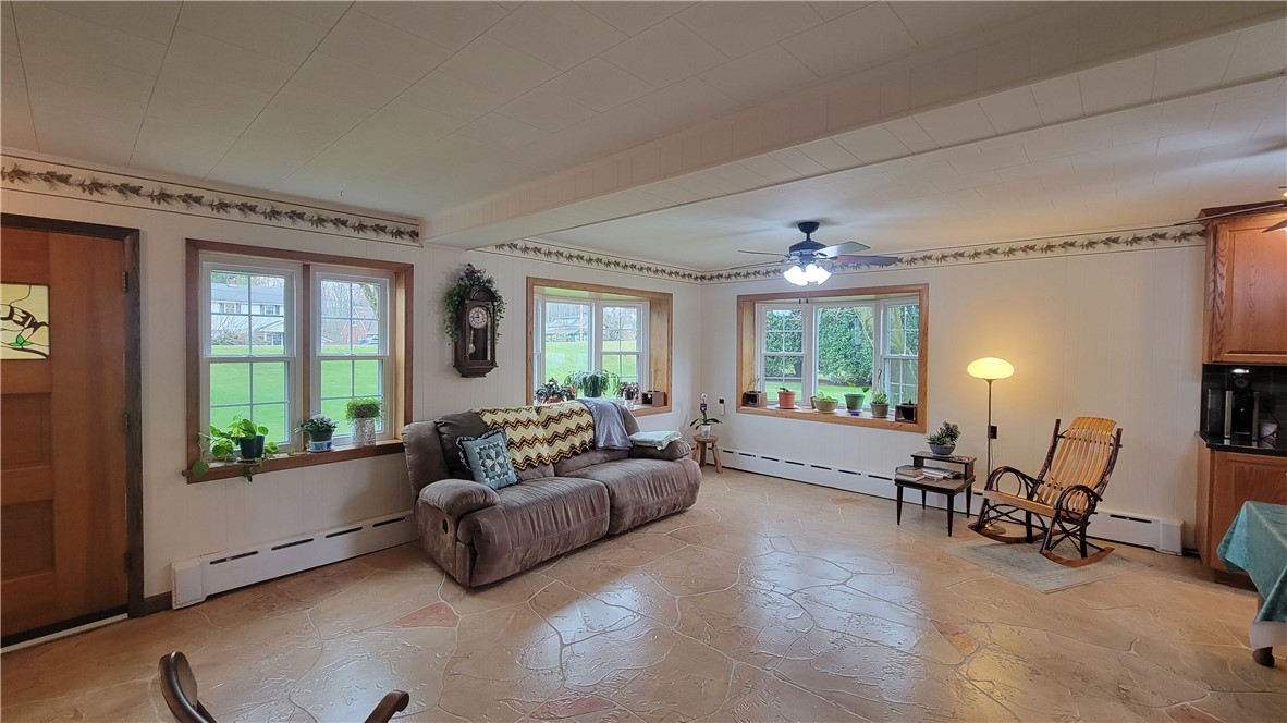 Plenty of bonus features come with this Jenner Township property. For starters, there are 3.27 acres with no zoning, so chickens are welcome. There is a main house and an apartment above the two car garage. Starting with the main house, there is a newer metal roof, vinyl siding and all new windows throughout. On the main floor there is an open living room and kitchen combination. The kitchen has a built in range, cook top and dishwasher included. The custom oak cabinets and trim throughout the home is absolutely beautiful. Nicely updated full bath. A Utility room that has the wall type Buderus efficient hot water heating system with 3 zones and a hook up for your washer and dryer. Rounding out the first floor is the 11 x 24 Family room with built in shelving and a separate entrance to unload your shoes and jackets at the entry. Upstairs you will find a delightfully bright room that could be an office, sewing room, or a great reading room. There are 3 more bedrooms (one is captive) and a second full updated bathroom. Now, off to the two car detached garage that has extra depth for more use or storage and even a shower, toilet and sink in the back corner. Upstairs is a cozy two bedroom apartment with all utilities separate from the main house. Custom oak kitchen, nice size living room and an updated full bath. The relaxing outdoors features an oversized tilled garden, burn ring, and two outside frost free water hydrants. Several outbuildings which comprise of a 14 x 36 size summer kitchen that has some kitchen cabinets, electric and a wood stove. Two more 10 x 16 storage sheds and the 20 x 22 detached garage with an additional loft area inside that has a hoist lift system installed. Easy commute to Rt 30 for Ligonier & Bedford and Rt 219 to Richland or Cumberland MD.