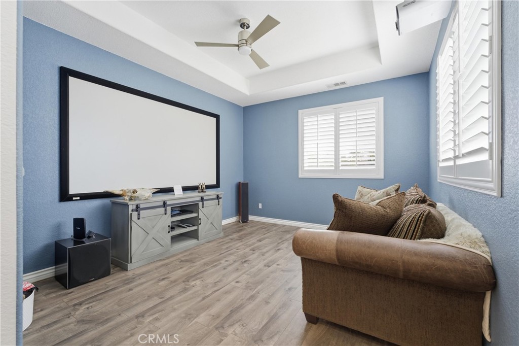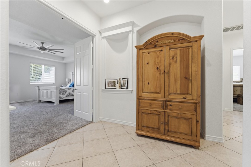 Positioned to represent one of the best values in the area, this beautifully maintained and move-in ready home sits on a rare 1/3 acre lot with RV parking and extensive upgrades throughout. Experience the polish and sophistication of a true model-like home, ideally situated on a sprawling lot with sweeping mountain views. Designed for those who appreciate quality and refinement, this meticulously maintained residence offers plush, manicured landscaping in both the front and back yards, creating a private and serene setting. Extensive upgrades elevate the home throughout, including fresh interior paint and a professionally re-stuccoed exterior finished with 25-year paint. Striking oversized double wrought iron front entry doors with operable glass panels welcome in natural light and refreshing summer breezes. Inside, you'll find poly wood shutters, high-profile baseboards, LED lighting throughout, and thoughtfully selected finishes that blend comfort with modern elegance. The kitchen is appointed for both everyday living and entertaining, featuring granite countertops, above and below-cabinet LED lighting, a breakfast bar, and updated premium appliances--including a versatile oven with 20 cooking functions (air fryer and convection included), a 5-burner cooktop, and a dishwasher. A butler's pantry seamlessly connects to a dedicated 12' x 10' movie room complete with wall projector and 9' screen, offering a true in-home theater experience. The expansive primary suite is accessed through double doors and serves as a private retreat, complete with a custom Closet World walk-in closet, garden tub, and oversized shower. Additional highlights include waterproof-backed carpet, updated hall bath with new tub and toilets, a large linen closet, laundry room with sink, and multiple architectural niches perfect for displaying art. Outdoor living is equally impressive, featuring a built-in gas firepit, dog run with drainage, mature evergreen landscaping, olive trees, and blooming wisteria--all maintained on efficient drip systems The property is also equipped with two tankless water heaters, RV waste dump, abundant parking, and an oversized two-car garage. Additionally, the home is pre-plumbed for a future ADU or casita, offering flexibility for extended living or guest accommodations. Set within a highly desirable, quiet westside neighborhood with no Mello-Roos and no HOA, this exceptional property offers a rare blend of luxury, functionality, and long-term value.