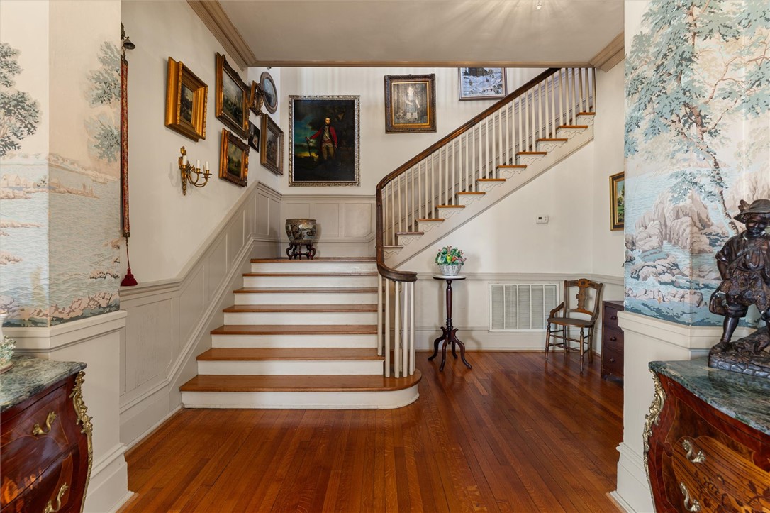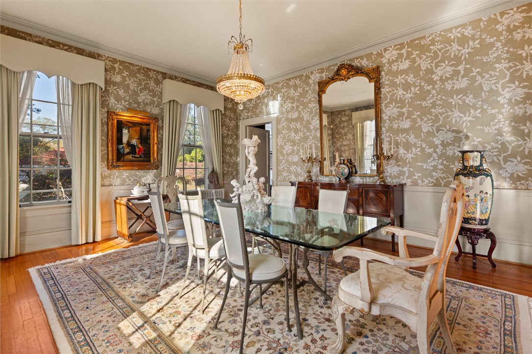 "MAJESTIC" perfectly encapsulates this historic mansion nestled in the heart of Laurens, SC's historic district. This truly unique residence is situated on one of the city's most distinguished and renowned streets. Known as the Wright-Easterby home, constructed in 1925, this breathtaking Spanish Colonial Revival masterpiece was crafted by the esteemed architect Robert Hemphill from Greenwood, SC. Renowned for its striking red terracotta roof, stucco walls adorned with wide eaves and medallions, and its flat-roof porch and stucco pillars, this home stands as a singular gem, potentially unmatched throughout the entire state of South Carolina, representing a rare architectural design in this region of the country. The residence boasts 5 bedrooms and 3.5 baths, set on over an acre of flat, lush terrain, providing ample space for the addition of a pool, hot tub, outdoor kitchen, and firepit - options that are certainly within reach. The rear of the property is enclosed by a charming brick fence, with additional land extending beyond. The centerpiece is a beautifully designed Spanish pergola, an idyllic spot for reading, sipping wine, and basking in the warmth of sunny days. The backyard also includes parking and a recently reroofed two-car detached garage. Now, let us embark on the grand tour. As you approach the home, you are greeted by two towering palmetto palms that enhance the landscape magnificently. The newly poured sidewalk sparkles invitingly. The expansive porch exudes a stately charm, beckoning you to unwind and gather with friends for an evening cocktail. Upon entering the home, you are immediately struck by its exquisite beauty, enveloped in a rich history spanning a century. The foyer is spacious and airy, showcasing a magnificent grand staircase. To your right, a stunning keeping room features built-in bookcases and a cozy gas log fireplace. To the left lies the living room, also adorned with a gas log fireplace. Throughout most of the home, beautiful hardwood floors create a stunning aesthetic. The dining room is impressively large, embodying the grandeur one would anticipate, complete with a magnificent crystal chandelier. The kitchen has been elegantly updated with a stunning granite countertop and a sophisticated gas cooktop. There exists a remarkable sunroom adorned with wooden shutters - a delightful sanctuary for relaxation and leisure. Ascending to the upper level, you will find yourself thoroughly impressed, featuring four spacious bedrooms and two full bathrooms for shared use, alongside the primary suite, which boasts its own luxurious en-suite. The expansive upstairs foyer is graced with rich red carpeting, while original hardwood floors lie beneath. On the lower level, an unfinished basement awaits, perfect for ample storage. Recently, a brand-new roof was installed over the summer; the process spanned eight weeks and incurred a cost of nearly $90,000. The home underwent a professional inspection two years ago, with necessary repairs completed and documented. You will appreciate the convenience of being in close proximity to historic downtown Laurens, with only a 30-minute drive to Simpsonville. The home is in the epicenter of the historic district in Laurens, surrounded by gorgeous historical homes, each with its own architectural design. This residence is a genuine piece of history, and the current owners have cherished their 40 years here, filled with countless wonderful memories. They are now prepared to pass the torch to the next generation, allowing them to forge their memories. You are welcome to contact me with any inquiries or to arrange a private showing. This is indeed a rare opportunity!