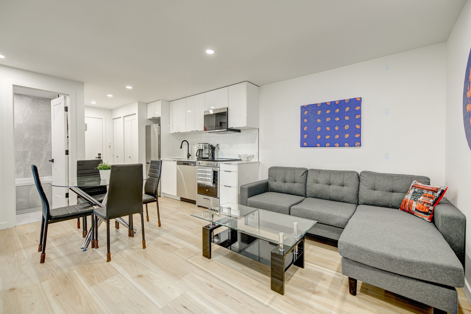 Please text Damian for visits and inquiries at 438-937-3443. Beautiful 3-bedroom unit on the ground floor of a quiet building in the center of the village. Just steps away from metro Beaudry or Papineau, from stores, restaurants, bars and all services. Open-concept kitchen, dining and living area, quartz countertops, microwave range-hood, AC. Beautiful quiet unit steps from all services. Can be rented furnished for extra, parking available.