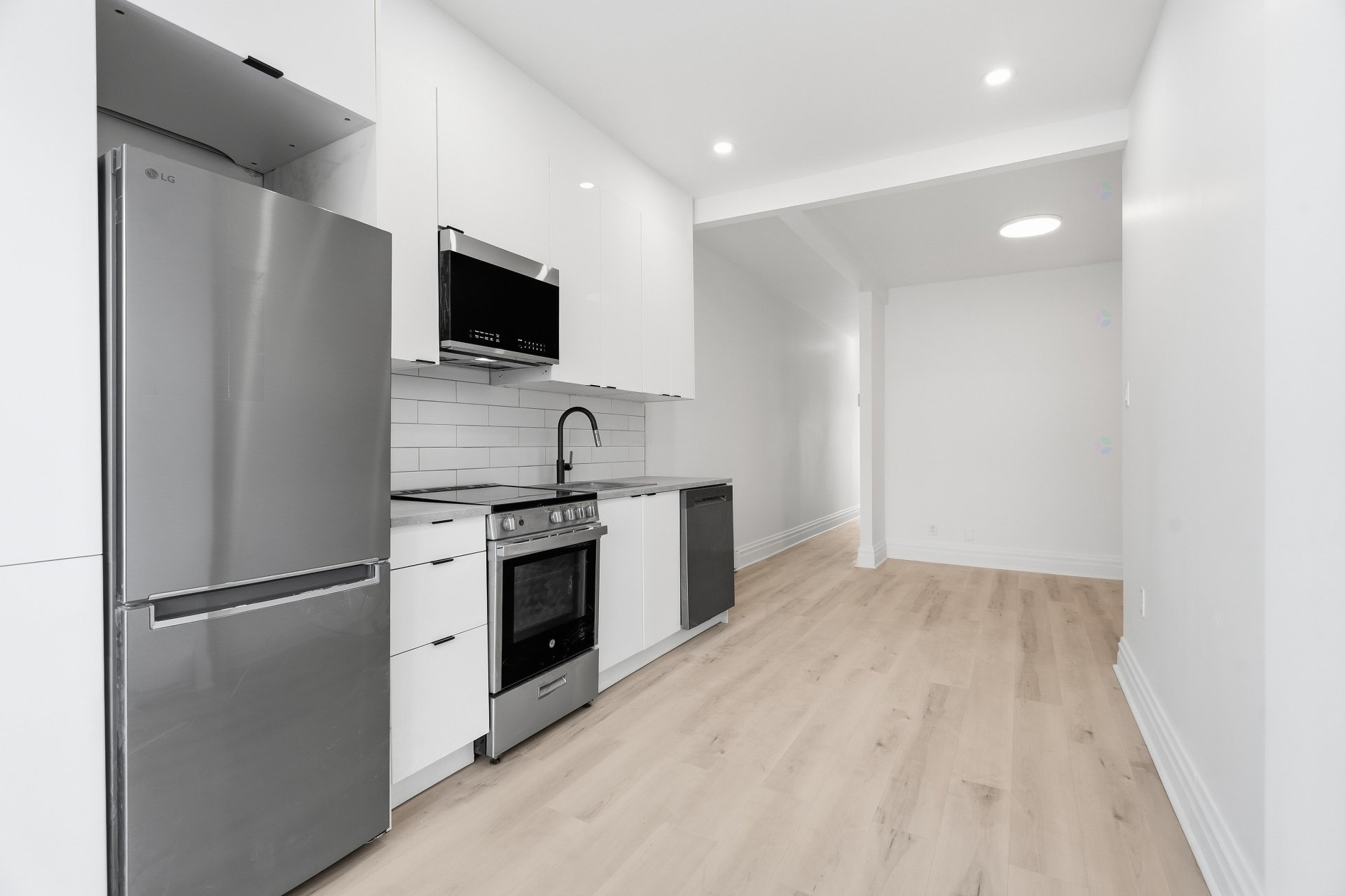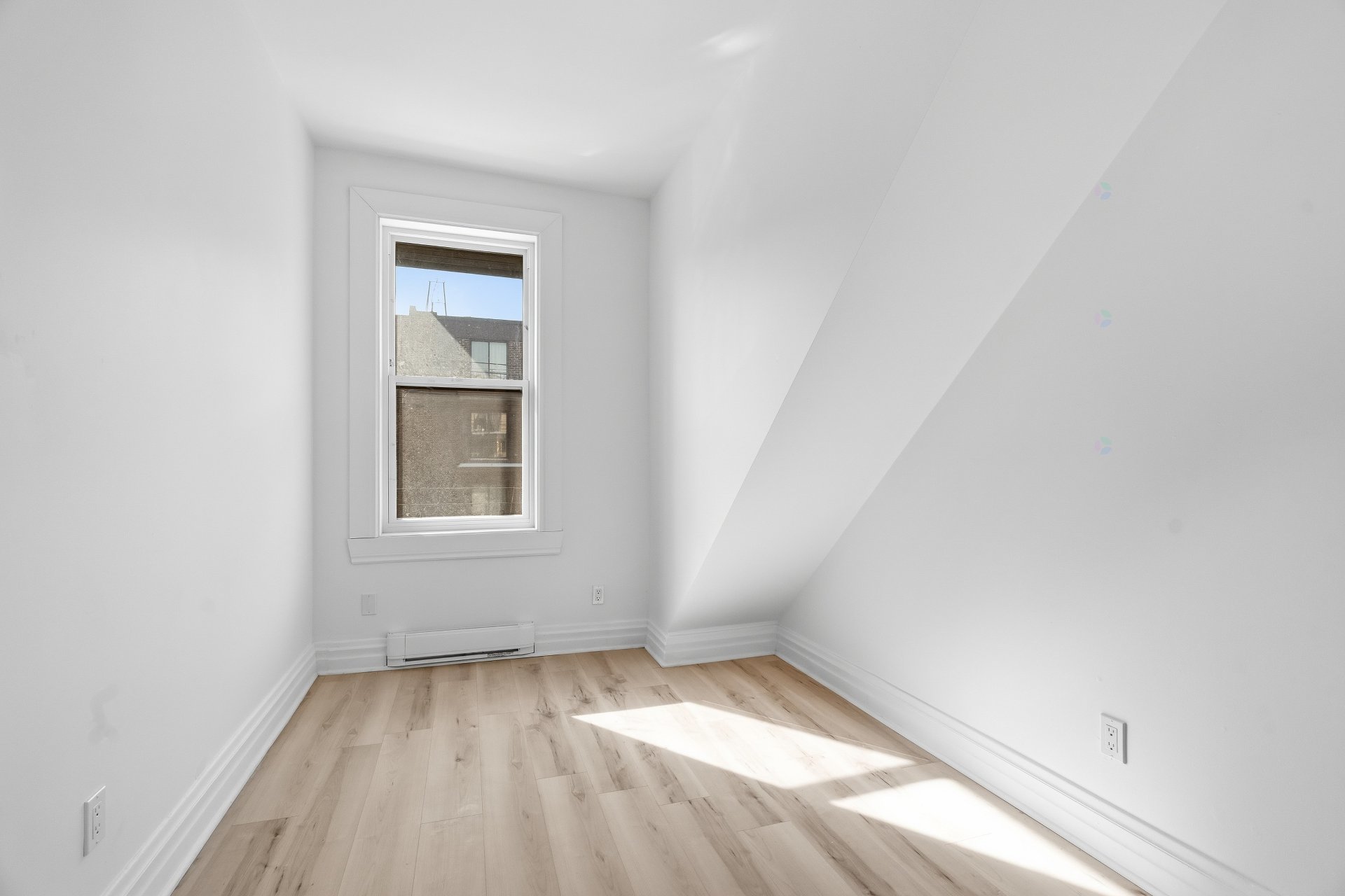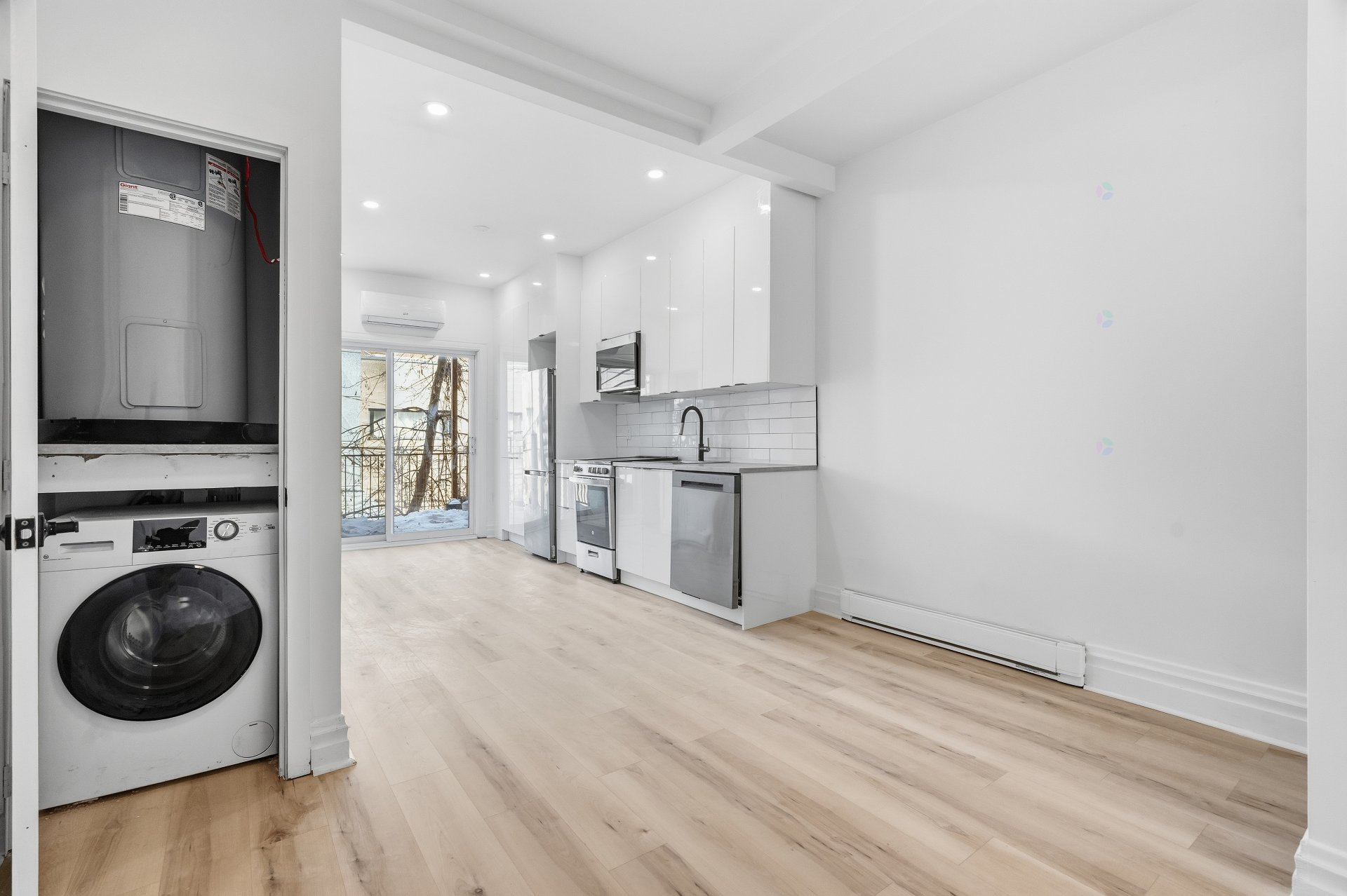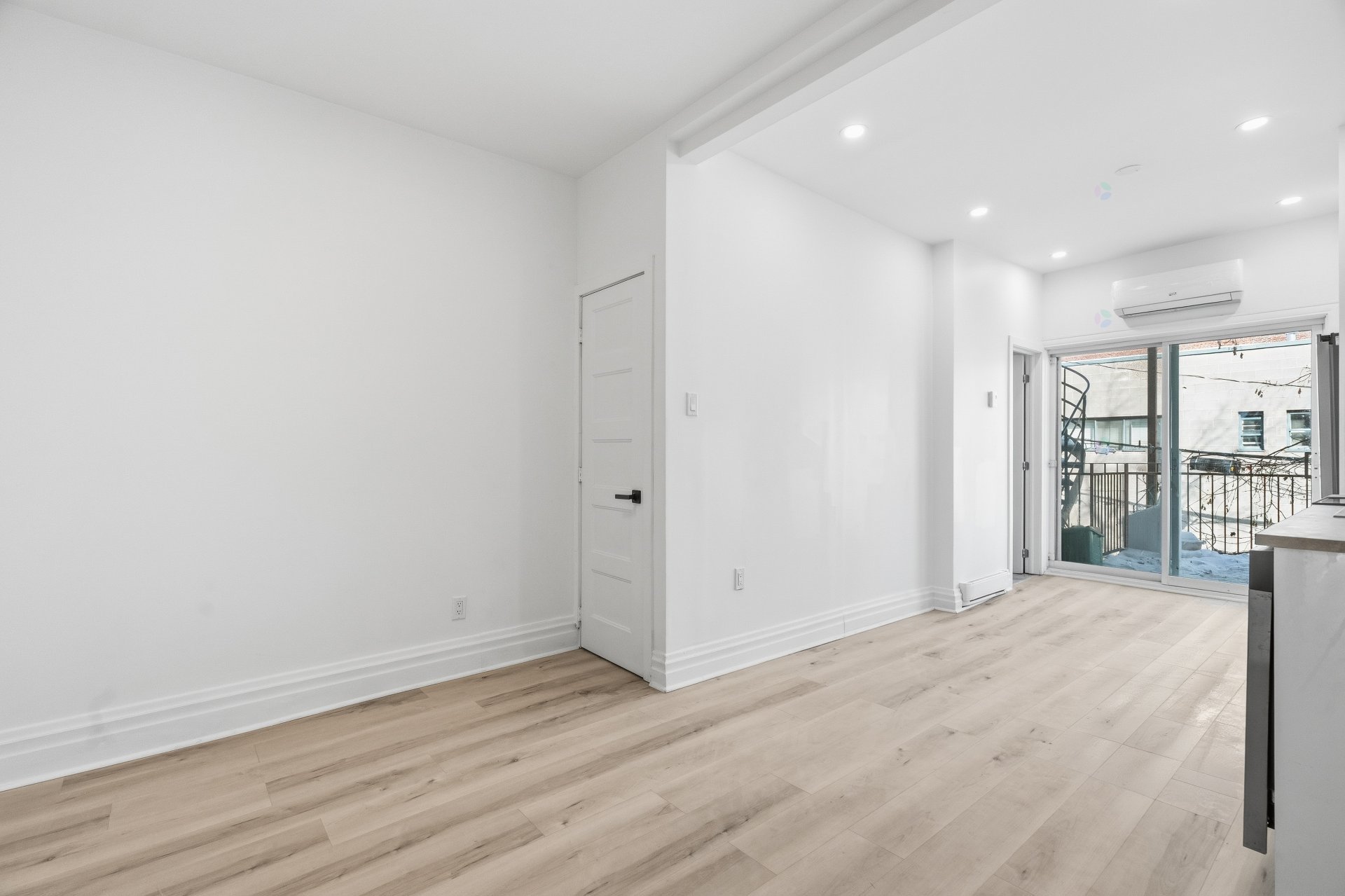 Please text Ignacio for visits and inquiries at 514-638-8503. Two-bedroom unit very well located in the Plateau, steps from Laurier park, metro and all amenities. On the third and last floor, and on a quiet cul-de-sac street. Renovated unit with two bedrooms, bathroom, and open area kitchen, living and dining room. Heat pump (heating and AC) included. Two balconies: one off the bedroom in front, and a large one off the back. Available immediately. Electricity, heating and internet not included. New applicances included. The bedrooms are divided by french doors (one normal sized bedroom, the other smaller for office or other).