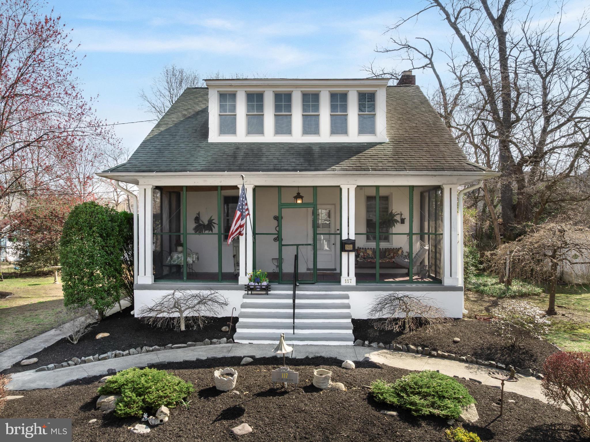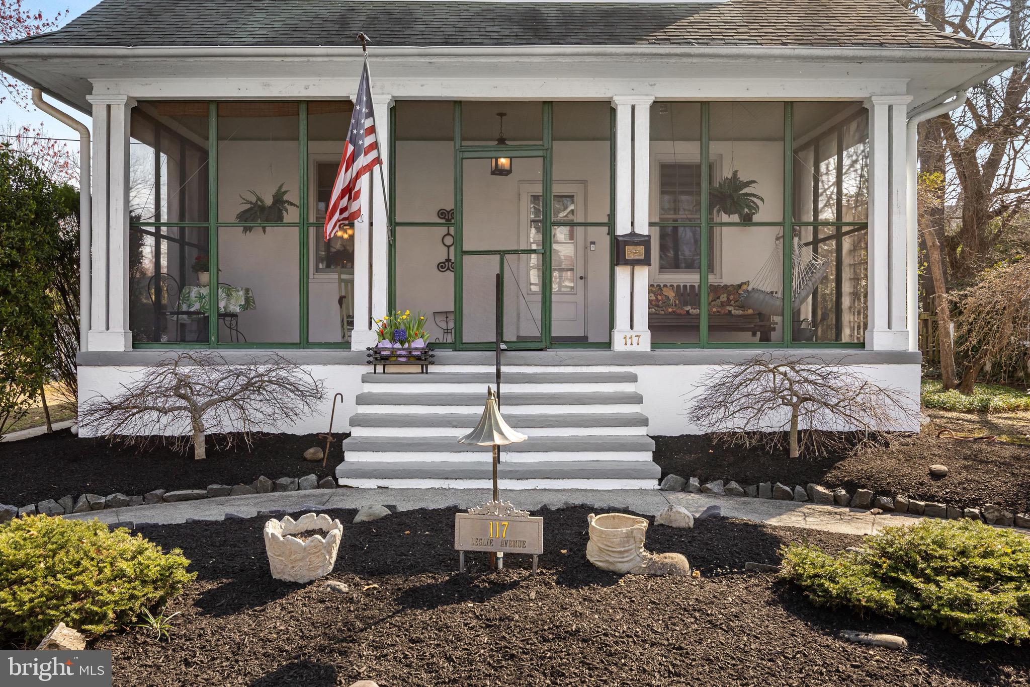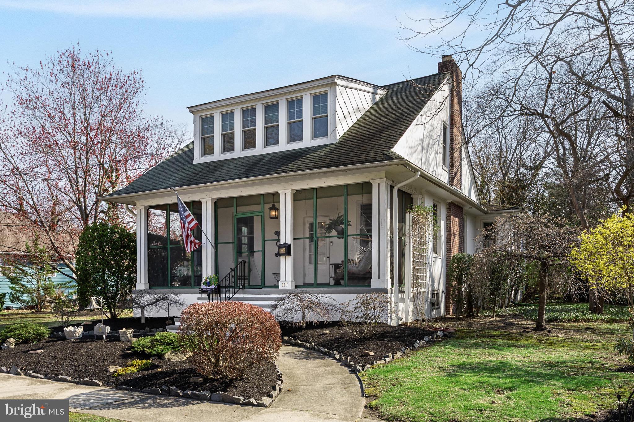 Deceptively spacious and Perfectly positioned in the heart of the Cattell Tract - better known to many as Merchantville's beloved Monsterville neighborhood. This Leslie Avenue home places you right in the center of one of the town's most magical traditions, when Halloween takes over and the entire area comes alive. Set along a charming street lined with both California & Arts and Crafts style bungalows, this distinctive property blends timeless Character, generous space, and thoughtful updates on a SPRAWLING one-third acre lot. Built in 1920, this 5-6 BEDROOM home is filled with the original details buyers dream about, paired with meaningful modern improvements including brand new QUARTZ kitchen counters, FRESHLY PAINTED walls, brand NEW CARPETING and the major energy-efficient bonus of NEW ANDERSON WINDOWS throughout. A large screened-in front Porch offers the perfect welcome and a wonderful place to enjoy relaxing breezes. Inside, the bright and inviting Living Room is anchored by a brick-surround wood-burning Fireplace and beautiful Wood Flooring that continues throughout much of the home. High ceilings, rich woodwork, and French doors lead into the formal Dining Room, creating a warm and classic feel ideal for everyday living or entertaining. The Kitchen maintains its vintage soul with original wainscot ceiling detail, while also offering updated quartz counters and new backsplash, Wood-Mode cabinetry, a gas range, garbage disposal, new dishwasher and convenient access to the main floor stackable washer and dryer tucked near the side entrance. The main level offers incredible flexibility with 3 Bedrooms, all featuring ceiling fans and ample closet space, along with a TIMELESS VINTAGE Full Bath. Whether you need entry-level living, guest rooms, home offices, a playroom, or den space, this layout can easily adapt to your needs. Upstairs, you'll find 3 additional oversized Bedrooms and a 2nd Full Bath that has been recently Refreshed! Antique light fixtures sprinkled throughout the home add even more warmth and historic appeal. The expansive walk-out Basement offers exciting potential for the rec room, game room, or creative space you've always wanted, while still leaving plenty of room for storage. Outside, mature landscaping enhances the setting, while a detached oversized Garage and shed add even more functionality. For added peace of mind, a 1-year HSA home warranty is included. This special estate home is being passed along with love to its next owner and is offered in its present condition - a rare opportunity to own a character-filled home in one of Merchantville's most iconic neighborhoods.