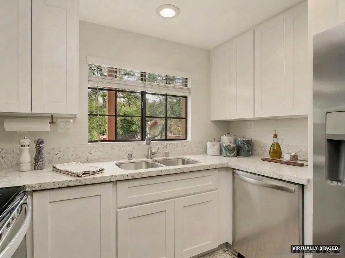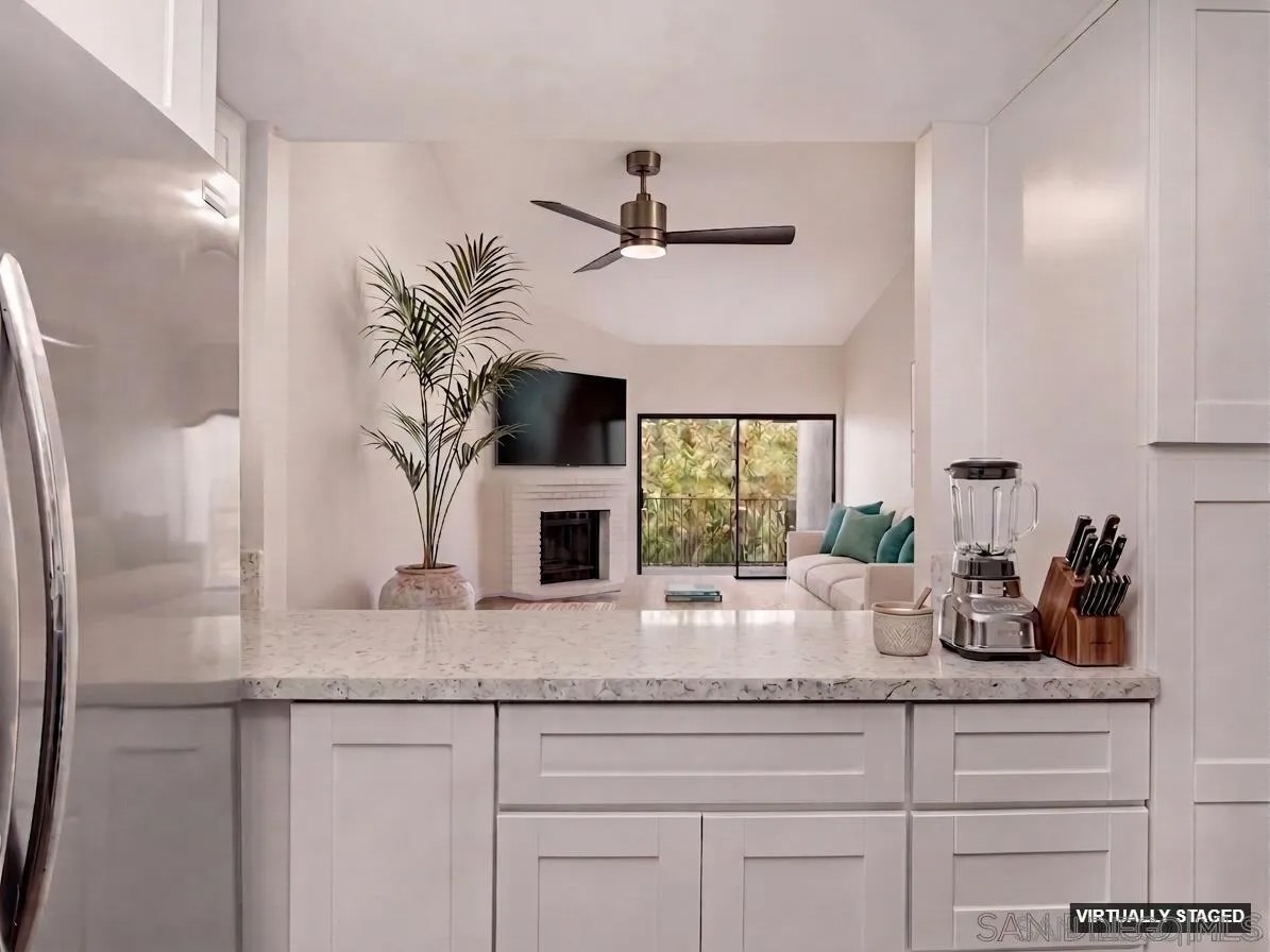 Incredible opportunity to own a RARELY AVAILABLE, SPACIOUS TOP-FLOOR, END UNIT in the highly desirable The Villas Calavera Hills. AMAZING CANYON VIEWS OF NATURAL OPEN SPACE from the primary bedroom, living room and private patio. Your new home features an open layout with abundant natural light, vaulted ceiling, fireplace and in-unit, full-sized W&D. One-car garage (#165) with 5'x10' storage, plus a dedicated, reserved parking space (also #165). Visitor parking spaces (11 of them!) on Winthrop in front of garages #171-#176. SUPPLEMENTAL REMARKS Read "About 2822 Winthrop & Calavera Hills" and "Lake Calavera Open Space Preserve & Trail Guide" under Documents tab on MLS. The Villas is an established, well maintained development with mature landscaping, swimming pool and spa. Dedicated garage with storage and dedicated non-garage parking space is #165. Ample visitor parking spaces (11 of them!) on Winthrop in front of garages #171-#176. HOA fees cover trash pickup, sewer, water and pest control. Upgrades (2020), remodeled kitchen including new cabinets, counters and appliances. Upgrades (2022), fully-remodeled primary and second bathrooms. Drive to the beach and Carlsbad village is approx. 3-miles and 10-minutes away. Walking distance to Hope Elementary (one-half mile, 2-minute drive) and a short drive to Calavera Middle School (1.5 miles, 5-minute drive) in the Carlsbad Unified School District. OPEN SPACE: Nearly 80% of the existing preserved open space in Carlsbad is natural open space, large undeveloped areas with nature trails and areas for sensitive plants and animals. Carlsbad is the only North County city with an approved Habitat Management Plan, which is a 50-year, comprehensive biological approach to preserving natural land for plant and animal species.