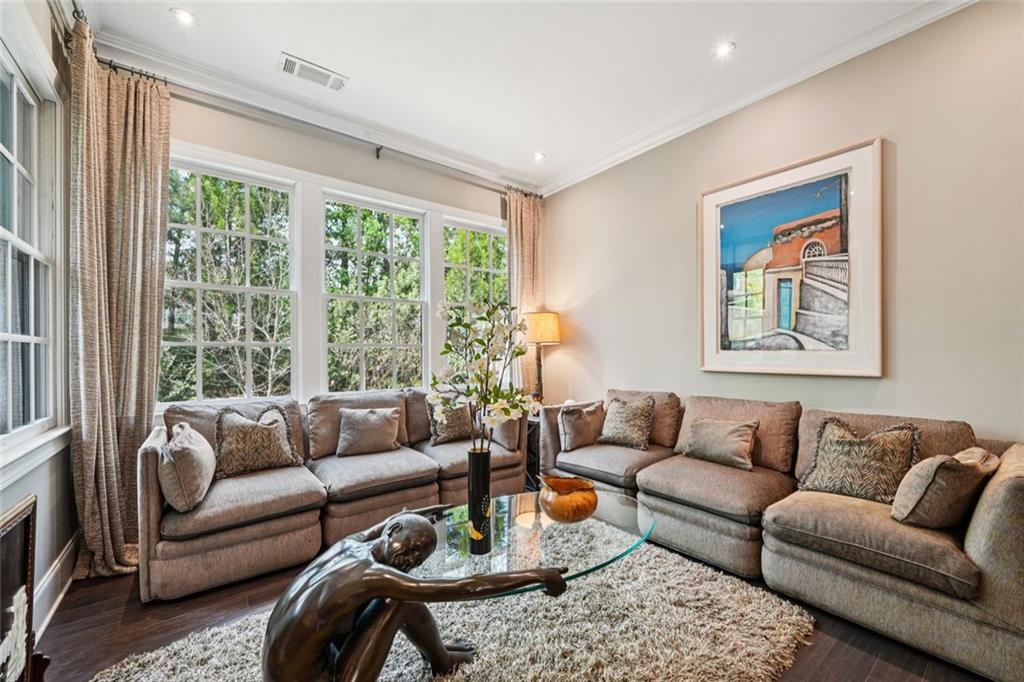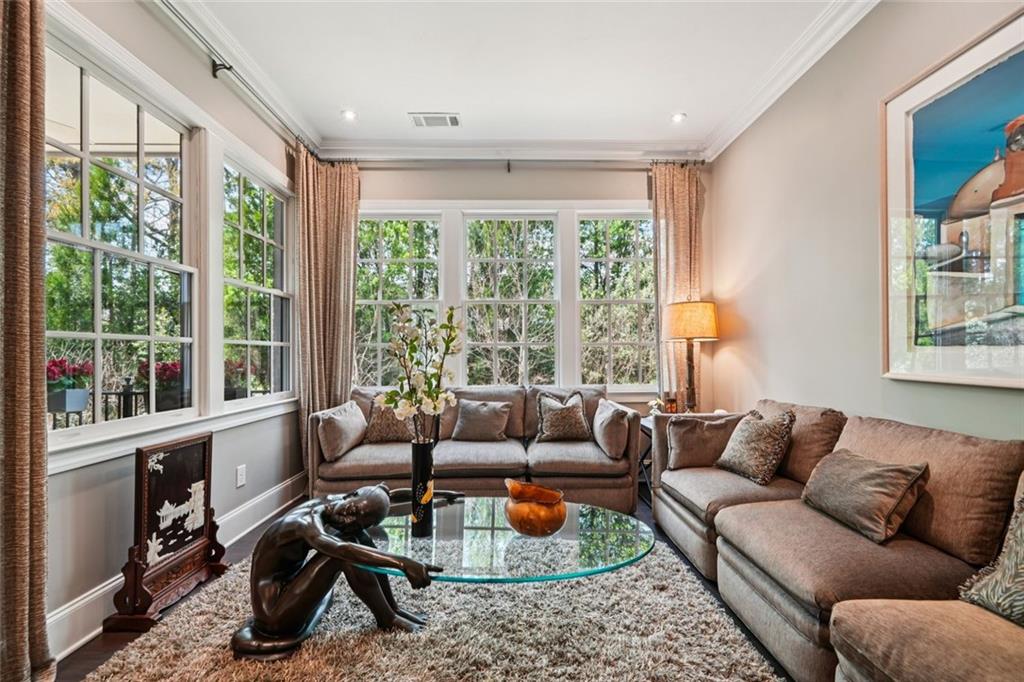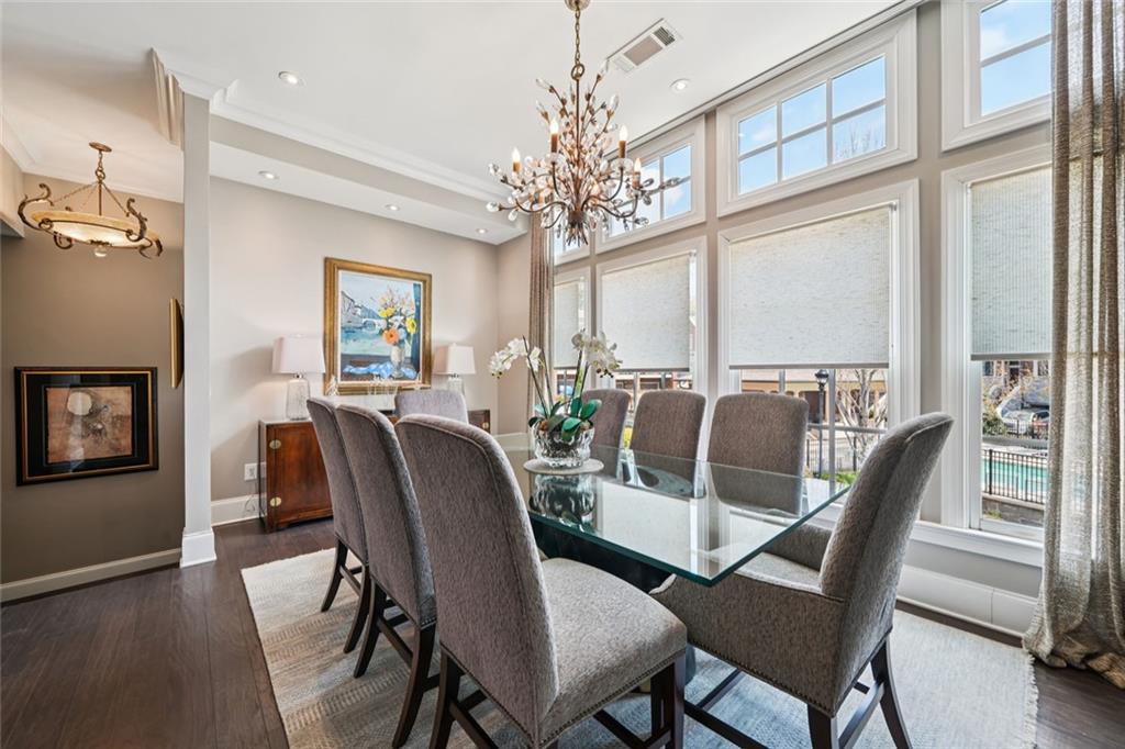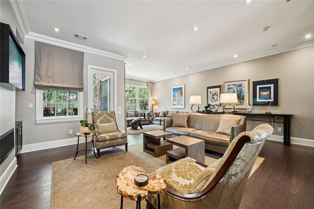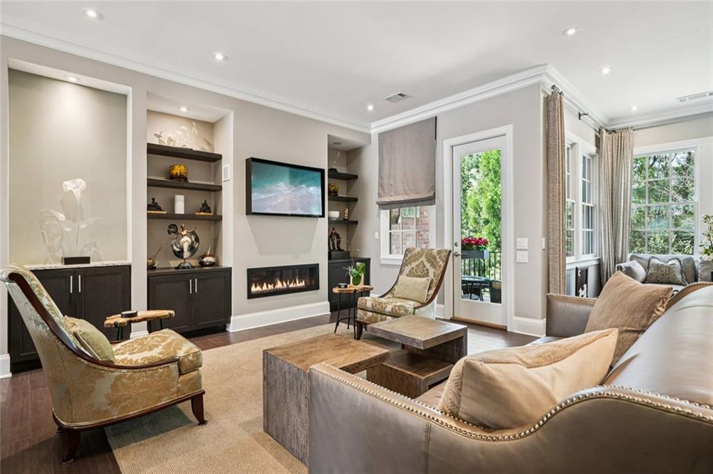 Private wooded views, an elevator, and pride of ownership from a single owner set the tone for this exceptionally upgraded townhome. Welcome to an exquisite and timeless residence in The Savoy at Town Brookhaven. This is one of Brookhaven's most desirable gated communities, where thoughtful design, quality construction, and everyday convenience come together seamlessly. This extra-wide townhome lives like a single-family home, offering three beautifully finished levels, a private elevator, and a layout designed for both comfortable living and effortless entertaining. The main level is open and inviting, anchored by a spacious living area with a fireplace, a refined dining space, and a well-appointed kitchen featuring JennAir stainless steel appliances and an oversized breakfast bar ideal for gathering. Custom millwork, built-ins, and a wet bar stub create a level of finish that feels both tailored and elevated. Throughout the home, you will find hardwood floors, LED lighting, a central vacuum system, an integrated intercom system, and thoughtfully designed spaces, including a built-in desk and custom storage solutions. The laundry room is generously sized and beautifully finished with custom cabinetry and a sink, proving that even functional spaces can be well designed. Upstairs, the primary suite is a true retreat, overlooking a peaceful wooded setting and featuring a spa-inspired bath with a dramatic floor-to-ceiling glass shower with body sprays and a luxurious six-foot soaking tub. A large custom walk-in closet completes the space. Additional bedrooms are well proportioned, offering flexibility for guests, office space, or everyday living. The terrace level provides a private, light-filled living area ideal for guests, in-laws, or a dedicated work-from-home setup. This level also offers exceptional flexibility, currently featuring a separate room set up as a home gym, while still allowing space for a media room or additional lounge area, making it perfect for both wellness and entertainment. This home is also equipped with modern conveniences, including a full security system with cameras and a video doorbell, remote garage access, and a high-powered EV charger. Recent updates include a new HVAC system and water heater, offering true turnkey peace of mind. Outdoor living is equally inviting and very private, with both a covered balcony and patio for relaxing or entertaining. Residents of The Savoy enjoy gated security and a saltwater pool, all just minutes from Town Brookhaven, offering premier dining, shopping, and everyday conveniences, along with easy access to MARTA and major corridors. This is a rare opportunity to own a meticulously upgraded, thoughtfully designed home in a prime Brookhaven location where the details truly set it apart.