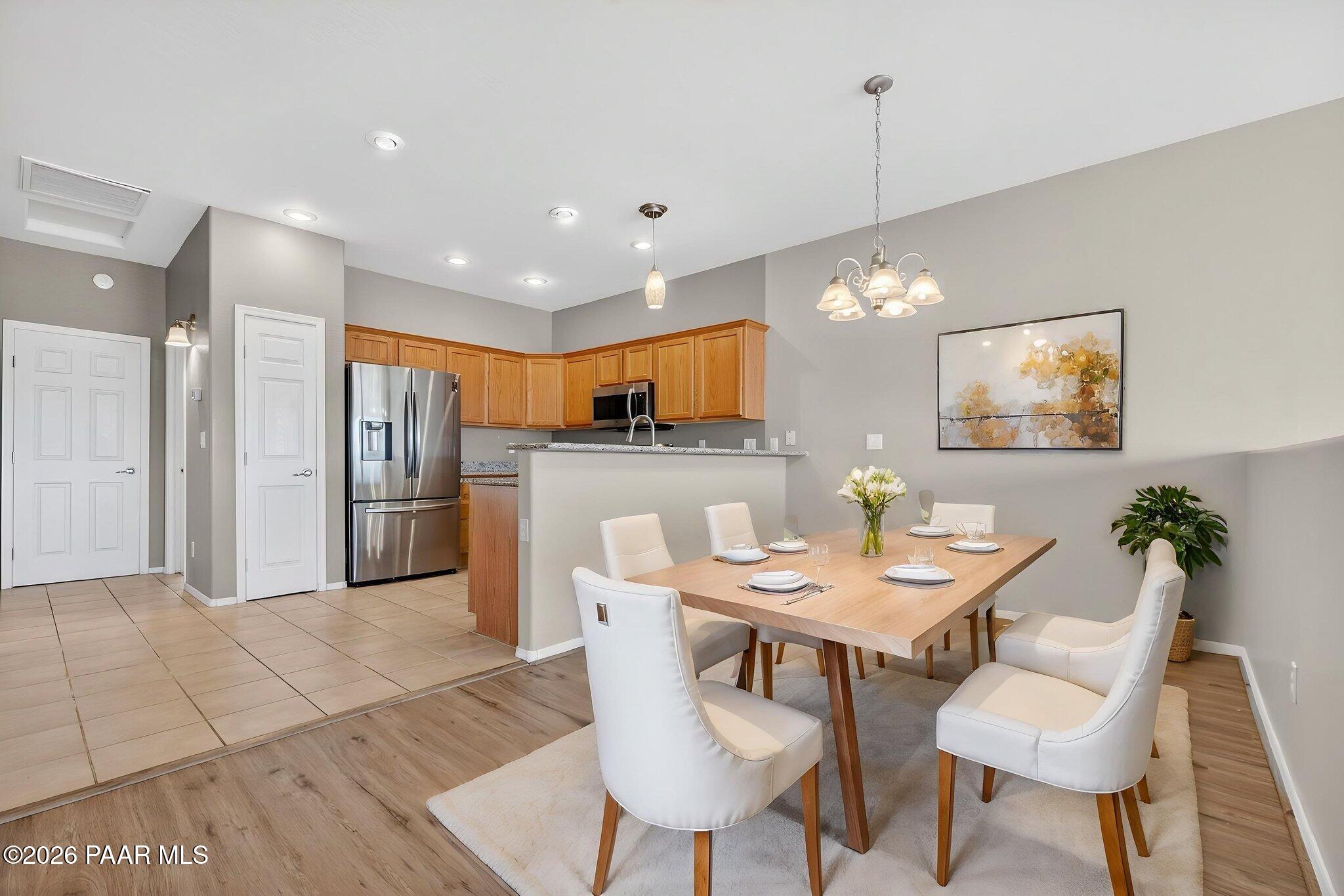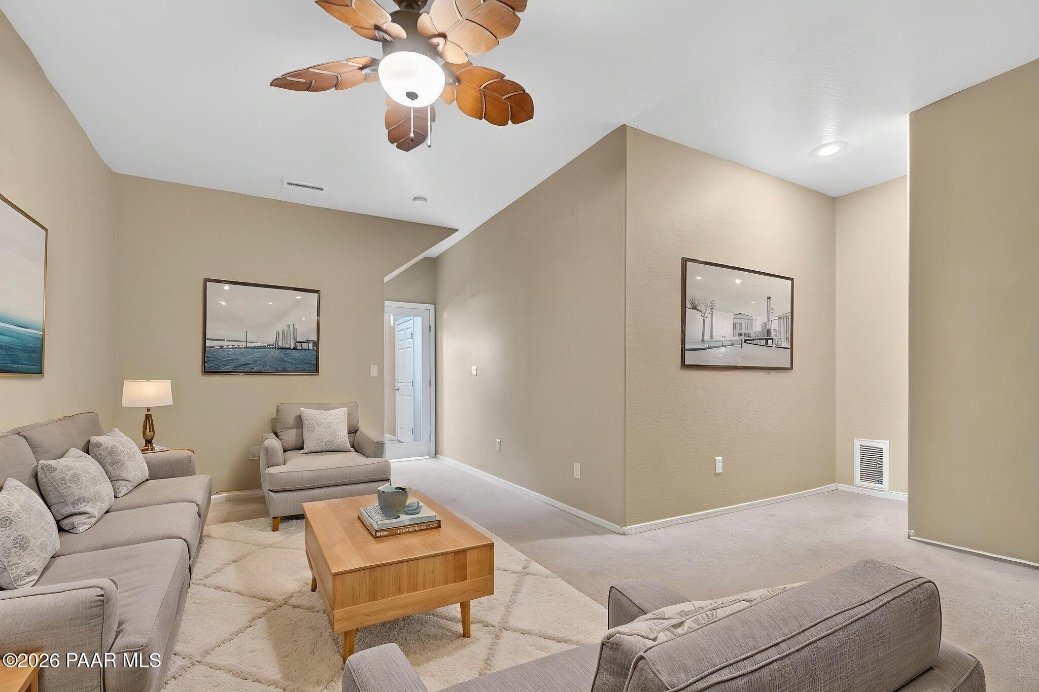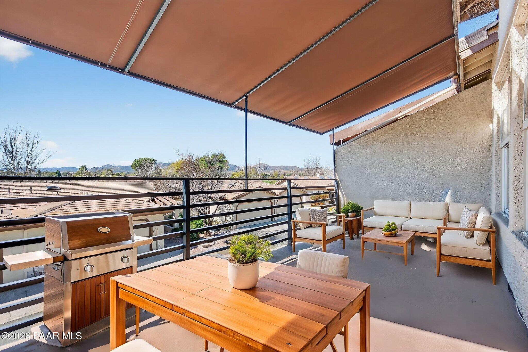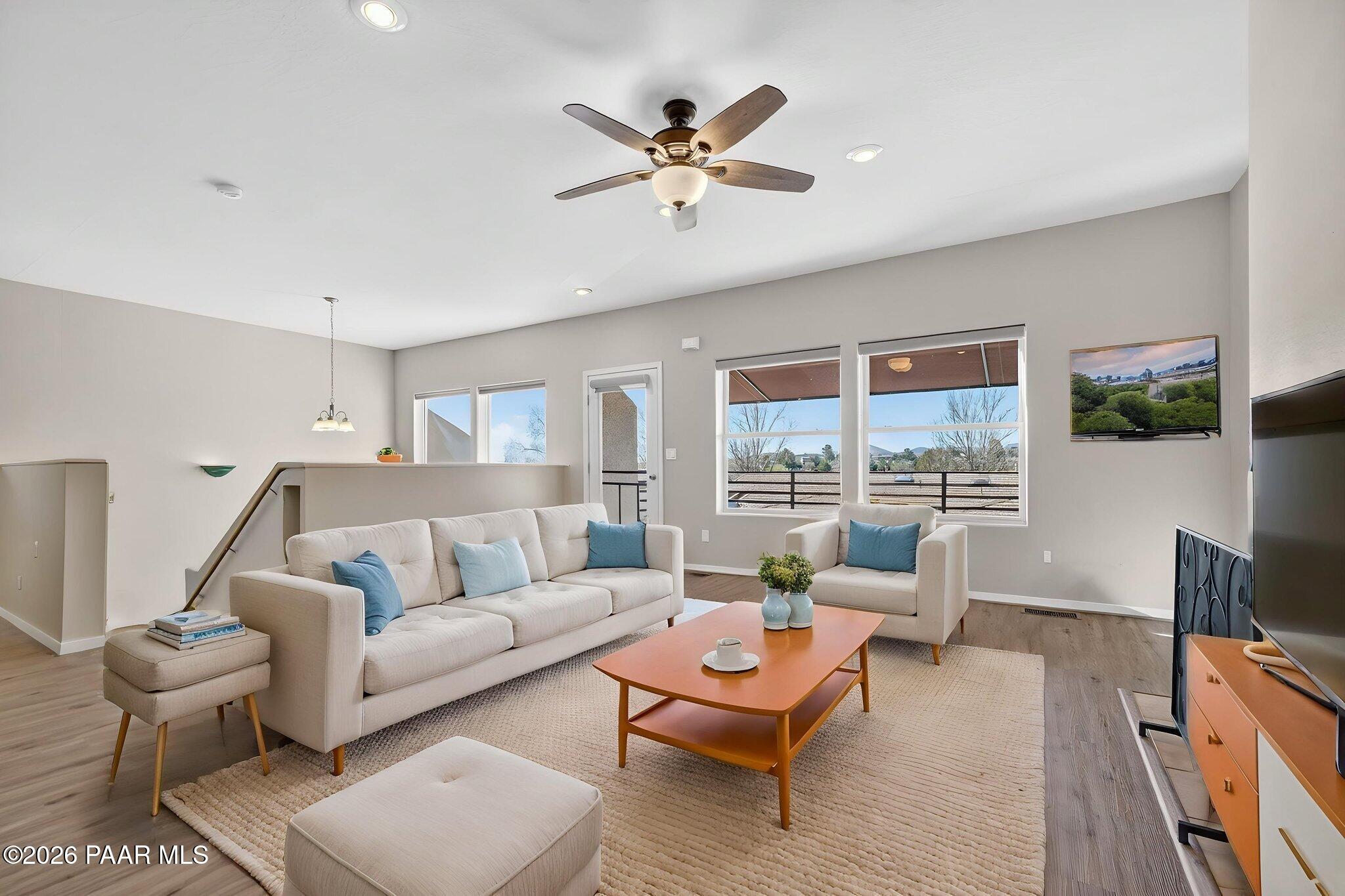 Views, golf, and low-maintenance living--this townhouse within the Prescott Country Club community gives more time for enjoying Arizona and less time maintaining it.This charming 2-bedroom townhome with beautiful views of the Bradshaw Mountains and golf course, is just moments from Prescott Golf Club. Whether you're enjoying a quiet morning coffee or unwinding at sunset, the upper deck offers a front-row seat to Arizona's natural beauty and golf course setting.Inside, the home is thoughtfully designed to balance comfort and functionality. The main living area features a cozy fireplace, creating a warm and inviting space to relax or entertain. The open layout flows seamlessly into a spacious kitchen with granite countertops, stainless steel appliances, and ample storage--ideal for both everyday living and hosting.Both bedrooms provide direct access to a private back patio through sliding glass doors, enhancing the indoor/outdoor lifestyle that makes this area so desirable. Two full bathrooms are conveniently located on the main level, while a half bath off the lower-level bonus room adds flexibility and additional living space for guests. The bonus room is well-suited for a media room, game room, home office, or hobby/craft space--offering options to fit your lifestyle.A 2-car attached garage adds convenience and storage, completing the practical features of the home.What truly sets this property apart is the low-maintenance lifestyle supported by the homeowners association. The HOA provides care for the exterior of the home, including the roof, exterior walls, and building paint, along with maintenance of landscaping in visible front yard areas and common community features such as streets, walkways, parking areas, and shared spaces. This level of coverage significantly reduces the day-to-day responsibilities typically associated with homeownership.For those seeking a lock-and-leave option, a second home, or simply a more simplified way of living, this setup allows you to spend less time managing maintenance and more time enjoying the surrounding area and nearby golf. The consistent upkeep of the community also helps support long-term neighborhood appeal and overall property value.This is an opportunity to enjoy comfort, views, and convenience in a setting designed for easy living.