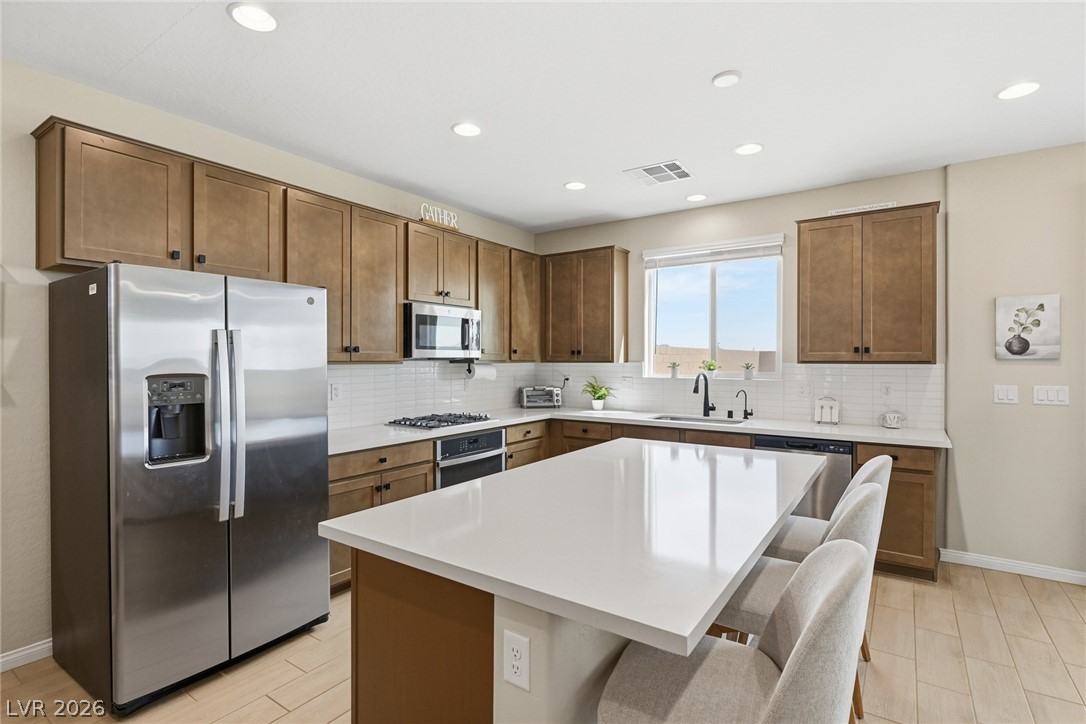 HUGE-RARE Oversized Backyard -- Featuring 4 Bedrooms 3 Bath PLUS Spacious Loft This immaculate 2024-Built offers Modern Comfort, Thoughtful Design and Exceptional Indoor-Outdoor Living. Including a highly desirable Downstairs Bedroom+3/4 bath, this layouts Flexible for Guests, Work, or Multi-generational Living. Open-Concept Kitchen Showcases Quartz Countertops, Modern Cabinetry, Stainless Appliances, Pantry and flows seamlessly into the Living area with a Dramatic 12-ft Sliding Glass Door. Step outside w/Pavers, Turf, and a Covered Patio - perfect for Entertaining or Relaxing. Private Primary Suite with a Large Walk-in Closet, Separate Tub and Shower, Plus Generously sized Secondary Bedrooms. Additional highlights include Tile Flooring, 8-ft doors, Ceiling Fans throughout, window coverings, and a Laundry Room plumbed for a sink. Located in a Gated Community with a Park, this home offers space, style, and move-in-ready ease. Close to Freeways and Shopping. Pool size Lot Priced to Sell !