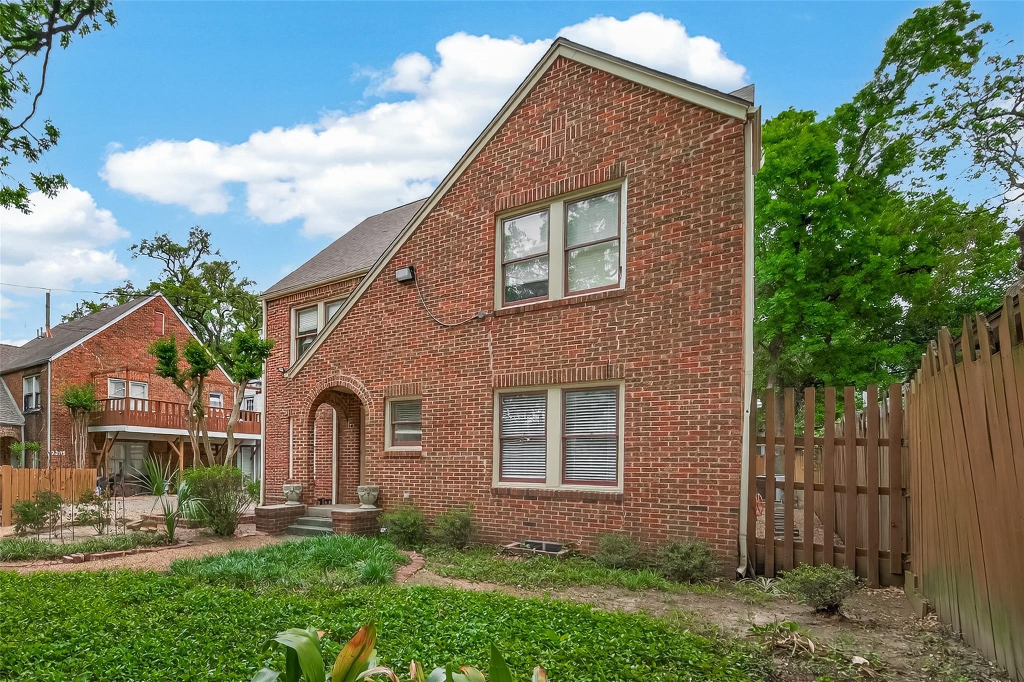 Spacious(!) Montrose Duplex in Gated Community, includes one other duplex, for a total of just 4 units. Tucked away in a quiet location. Three bedrooms, two full baths. Wood floors throughout, with large living area -- lots of windows! Kitchen is big too, with a dining area and excellent storage space. Primary bedroom suite features multiple closets and big shower. Two additional bedrooms share a hall bath, which offers a tub and separate shower. Indoor laundry with washer and dryer -- even a mudroom area! Blinds on all windows. Interior walls just painted. Bricked patio just outside the back door; charming front yard landscaped with pathways & plants. Two assigned parking spaces. Quiet community with long-term tenants. You'll want to stay a long time too!