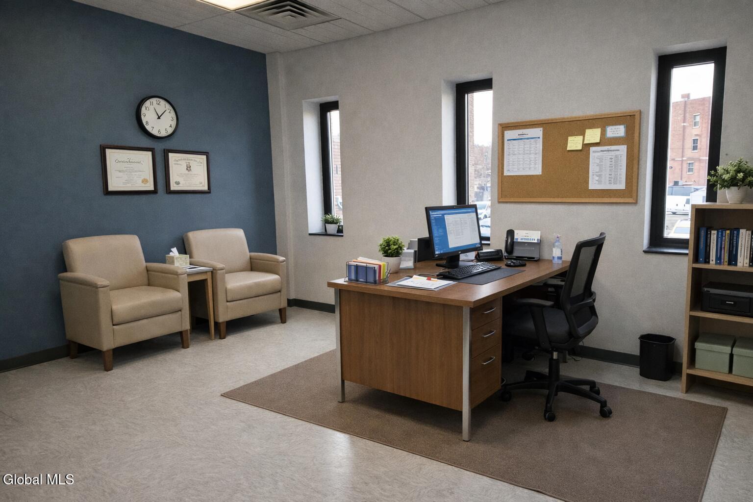 Located in the heart of downtown Schenectady, 214 State Street offers a unique opportunity to lease well-positioned clinical office space in the former ARC facility. The building is well suited for medical, behavioral health, therapy, or professional service users seeking a central, accessible location. The space features a functional layout with multiple private offices, treatment or exam rooms, open administrative areas, and support space that can be configured to meet a variety of clinical needs. The property offers excellent visibility along State Street and convenient access to public transportation, major roadways, and nearby hospitals and healthcare providers. Ample nearby parking, proximity to downtown amenities, restaurants, and services, and a strong neighborhood presence make this an ideal location for a healthcare provider looking to establish or expand a downtown footprint. The existing buildout allows for efficient occupancy while still offering flexibility for customization.