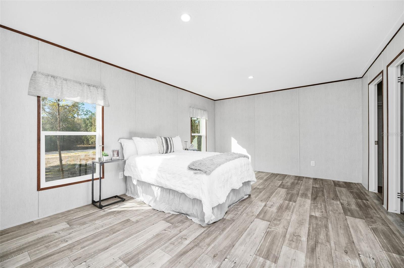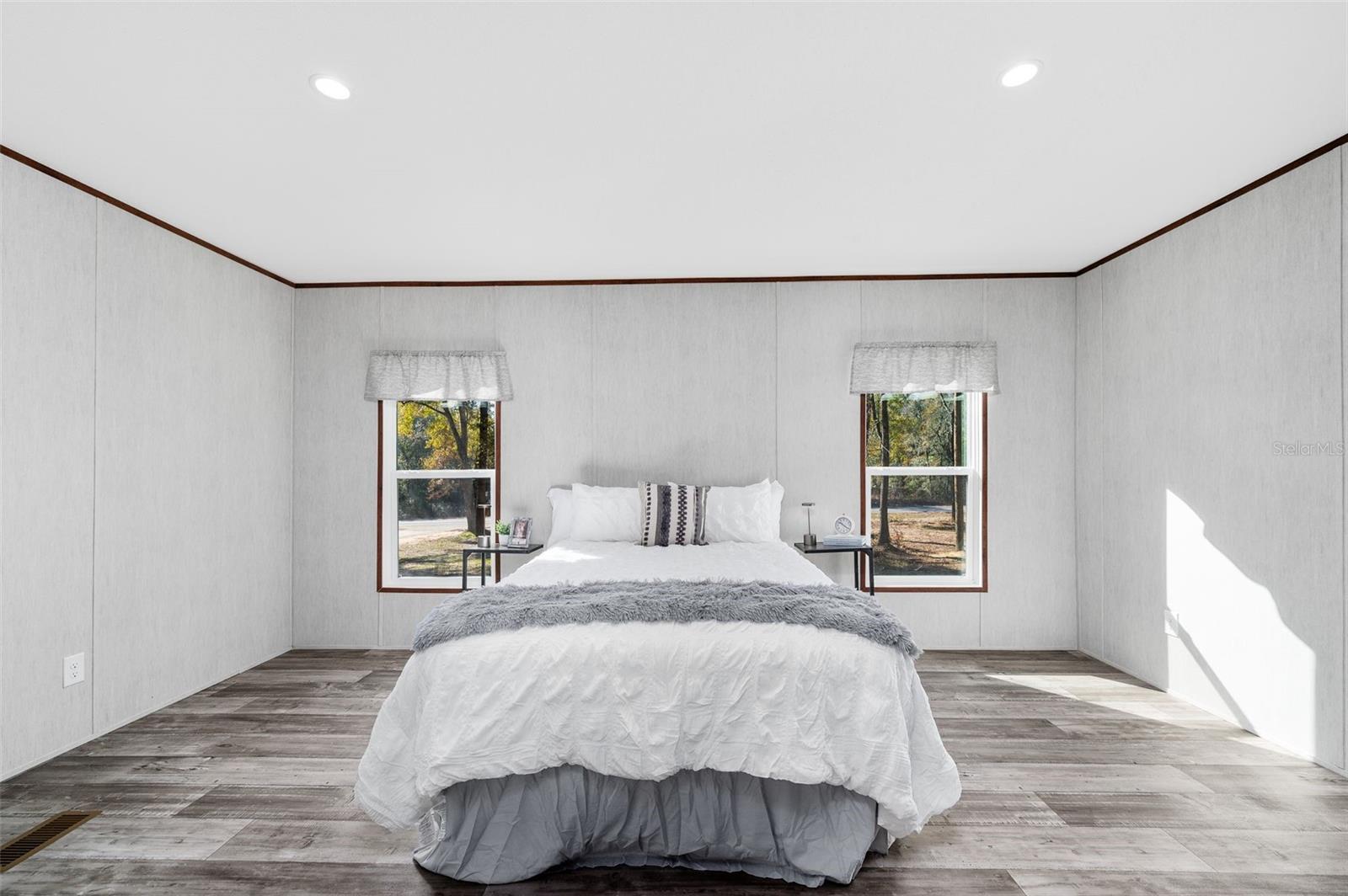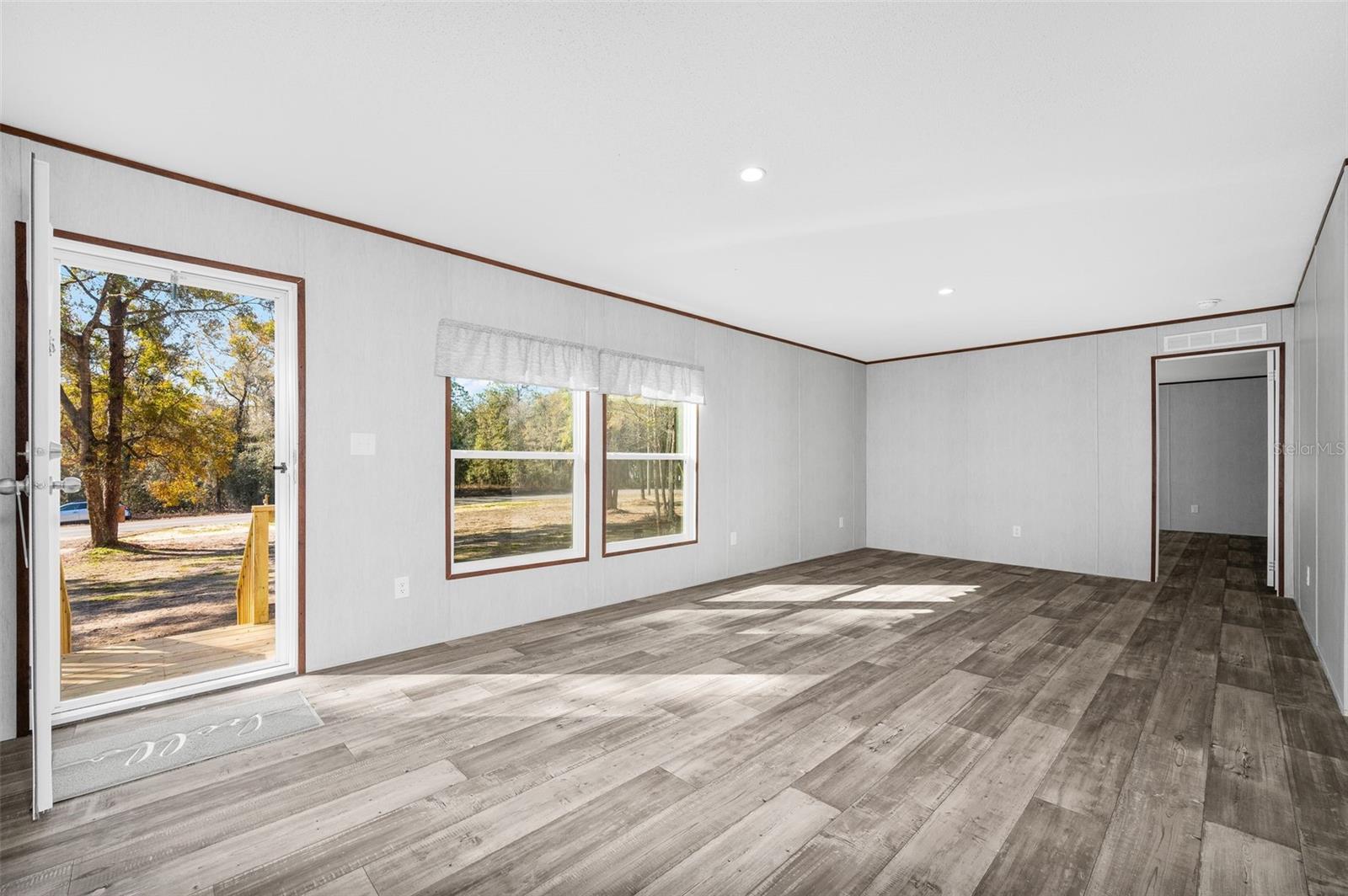 Welcome home to this brand-new 2025 Live Oak Sprinter manufactured home, offering modern comfort and peaceful country living on large wooded lot in beautiful Bronson, Florida. This spacious home offers approximately 1,500 square feet of living space, featuring 3 bedrooms and 2 full bathrooms with an open, functional layout perfect for everyday living. The kitchen is equipped with brand-new appliances, including a refrigerator with icemaker, new stove and range, and a new dishwasher. A washer and dryer, NEWER, are included for added convenience. Inside, you'll find durable laminate vinyl plank flooring throughout, creating a clean, contemporary feel while being easy to maintain. The open living and dining areas flow seamlessly into the kitchen, providing plenty of space for entertaining or relaxing with family. The primary suite includes a private bath. Step outside to an 8' x 16' wooden deck, overlooking the backyard - an ideal space for morning coffee, grilling, or enjoying Florida evenings. The property features fresh sodding around the perimeter, creating a clean, finished outdoor appearance. Photos are from Previously sold home. Same Floorplan.