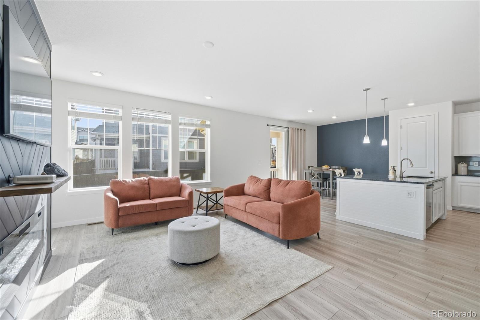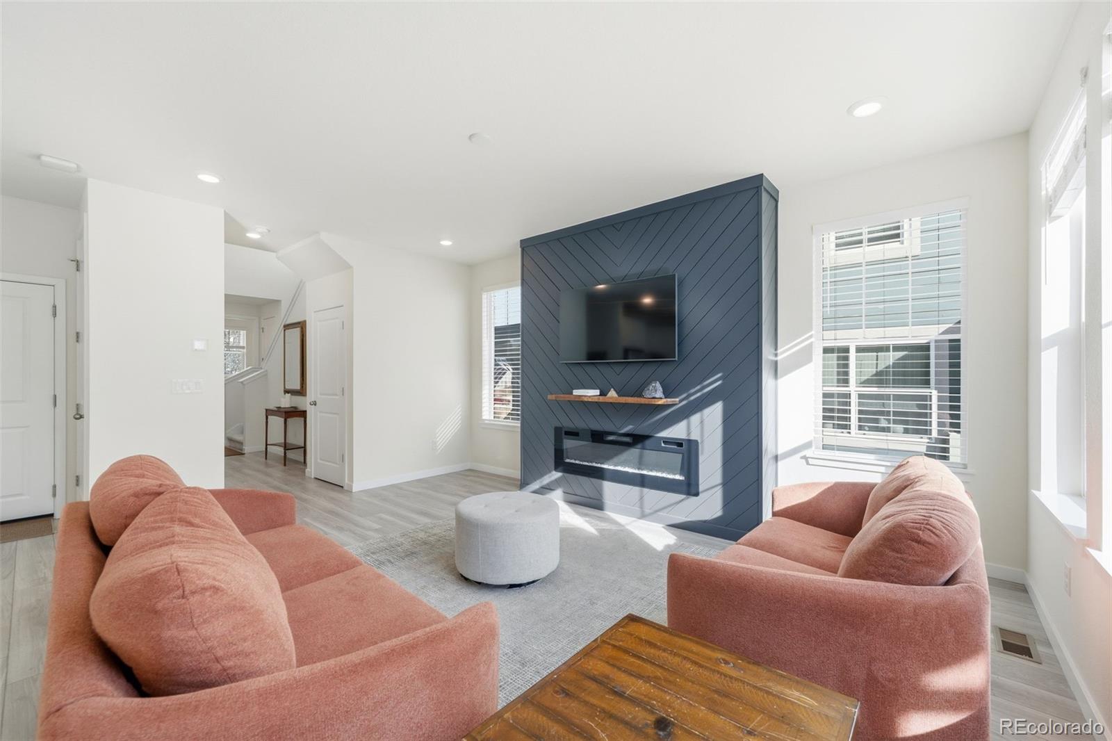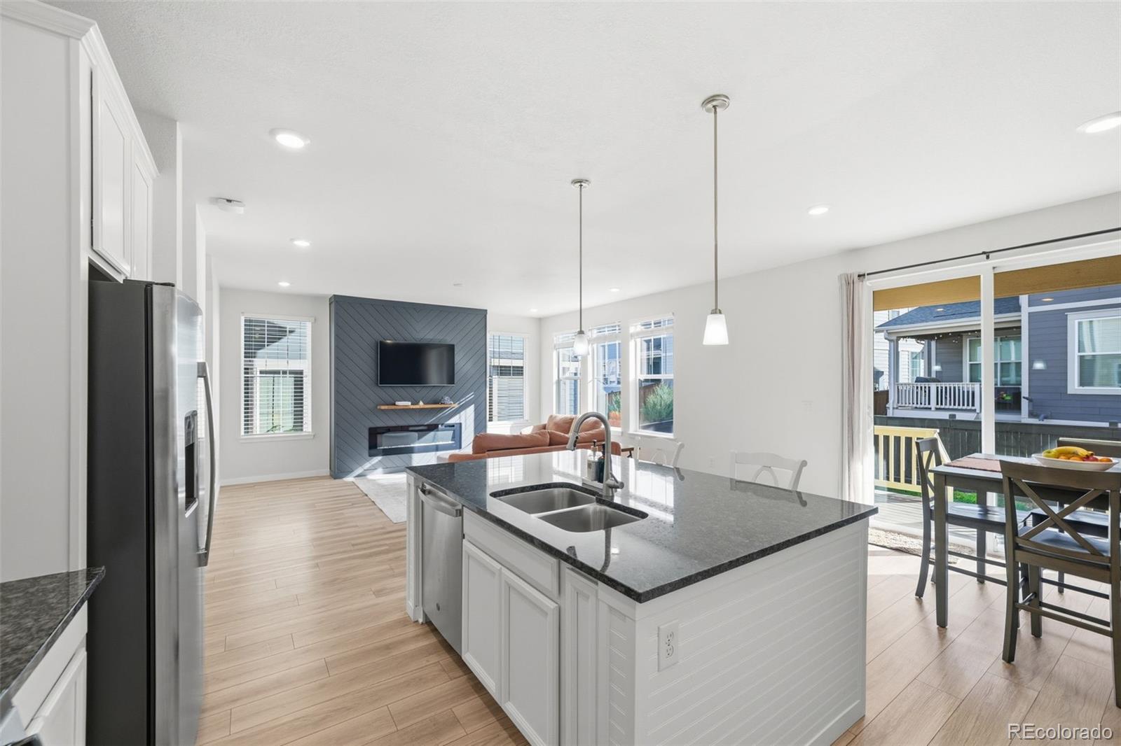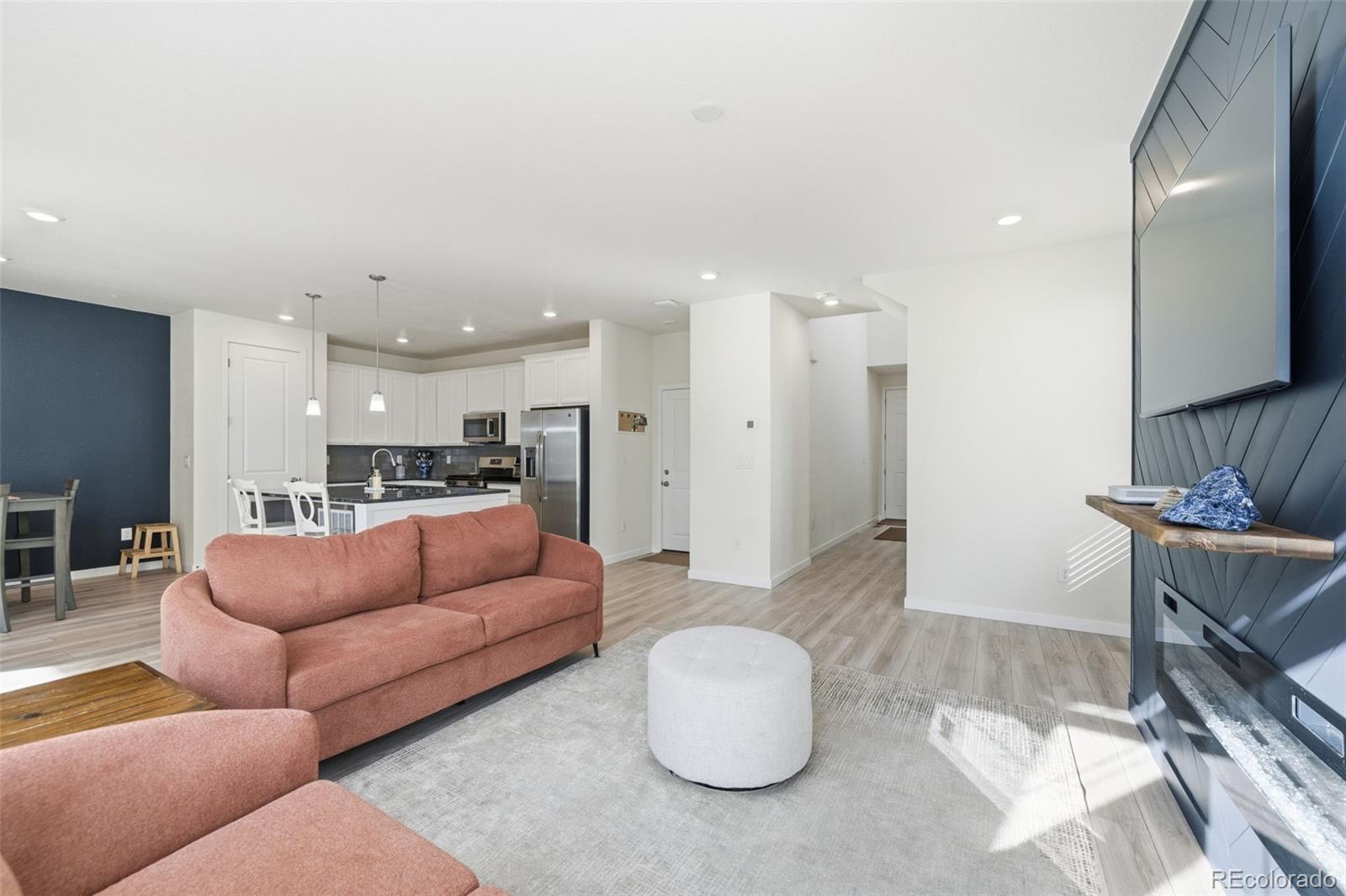 Welcome to this beautifully maintained paired home that perfectly blends modern style with comfortable, easy living. Nestled in the charming Buffalo Highlands neighborhood, this home offers the best of both worlds; convenience and cozy community living. Enjoy Colorado's outdoor lifestyle with nearby pocket parks, playgrounds, scenic trails, Dick's Sporting Goods Park, Rocky Mountain Arsenal National Wildlife Refuge, Buffalo Run Golf Course, and more. Commuting is a breeze with quick access to Downtown Denver, Denver International Airport, and Buckley Space Force Base. Built in 2020, this home feels practically brand new. The inviting front porch is the perfect spot for your morning coffee. Step inside to find bright, open spaces featuring luxury vinyl plank flooring, a welcoming entryway, and a convenient powder bath. The open-concept main level is filled with natural light and boasts a spacious kitchen with an island, pantry, abundant cabinetry, sleek finishes, and a comfortable living area with a cozy electric fireplace. From there, step outside to a peaceful backyard retreat featuring a covered deck and patio, ideal for relaxing or entertaining. Upstairs, the primary suite offers a generous layout with a walk-in closet and a private en-suite bath. Two additional bedrooms, a spacious guest bath with tub and a large, conveniently located laundry room complete the upper floor. The unfinished basement provides flexible space ready for your personal touch, and the attached two-car garage offers great storage and easy access. Located close to parks, schools, shopping, and major commuter routes, this exceptional home delivers low-maintenance living with the spacious feel of a single-family home.